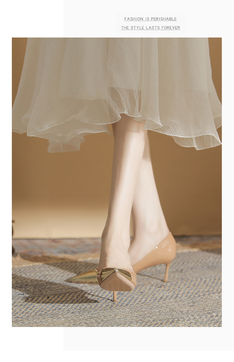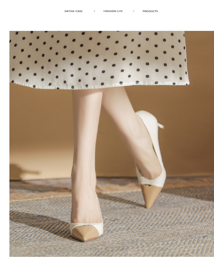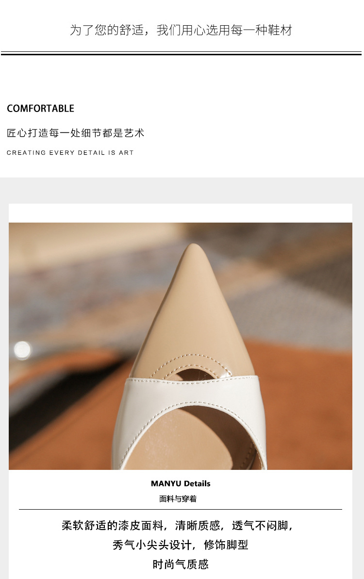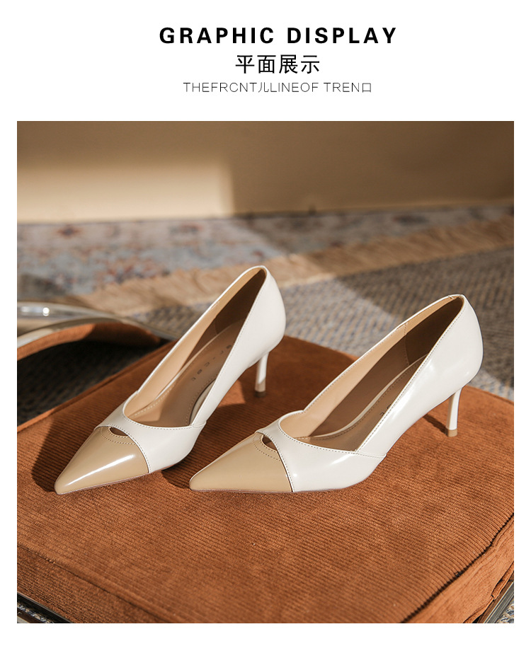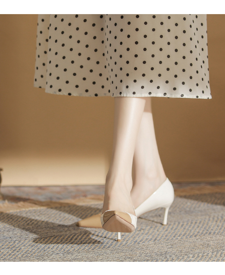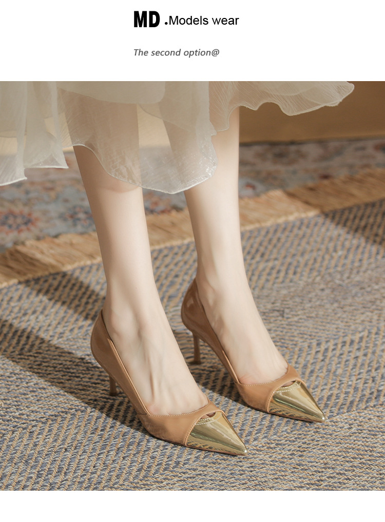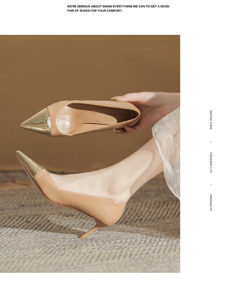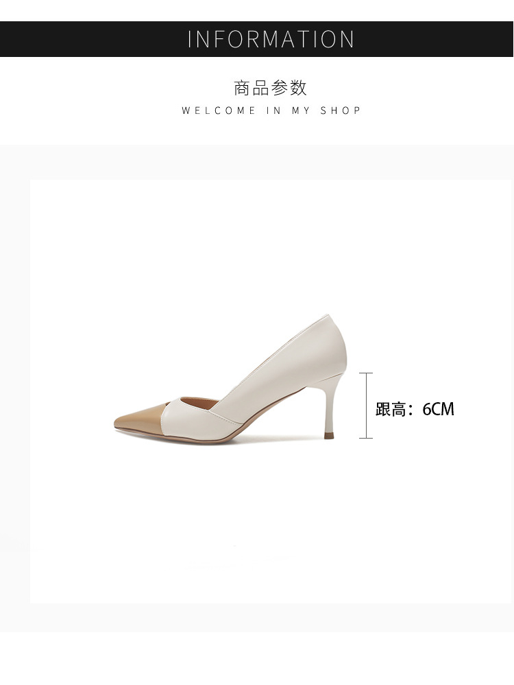 Giày cao gót nữ với thiết kế mũi nhọn và gót thanh mảnh, tạo điểm nhấn bằng sự kết hợp hai tông màu bóng đẹp. Kiểu dáng cổ thấp ôm chân theo phong cách châu Âu hiện đại, chất liệu bề mặt láng bóng dễ lau chùi. Sản phẩm phù hợp để phối cùng nhiều loại trang phục khác nhau. Khi sử dụng, nên chọn size vừa vặn và đi những bước ngắn để làm quen với gót giày trước. | Tên sản phẩm: Giày Cao Gót Nữ Mũi Nhọn Gót Nhọn Phong Cách Âu Mỹ - Giày Dép Nữ | Mã sản phẩm: A1083 - Giá: 830.000đ | Mã nhà sản xuất: HUDS-G03Hình ảnh sản phẩm