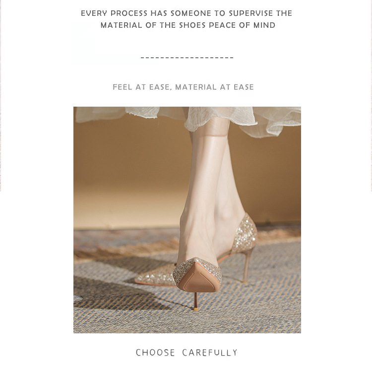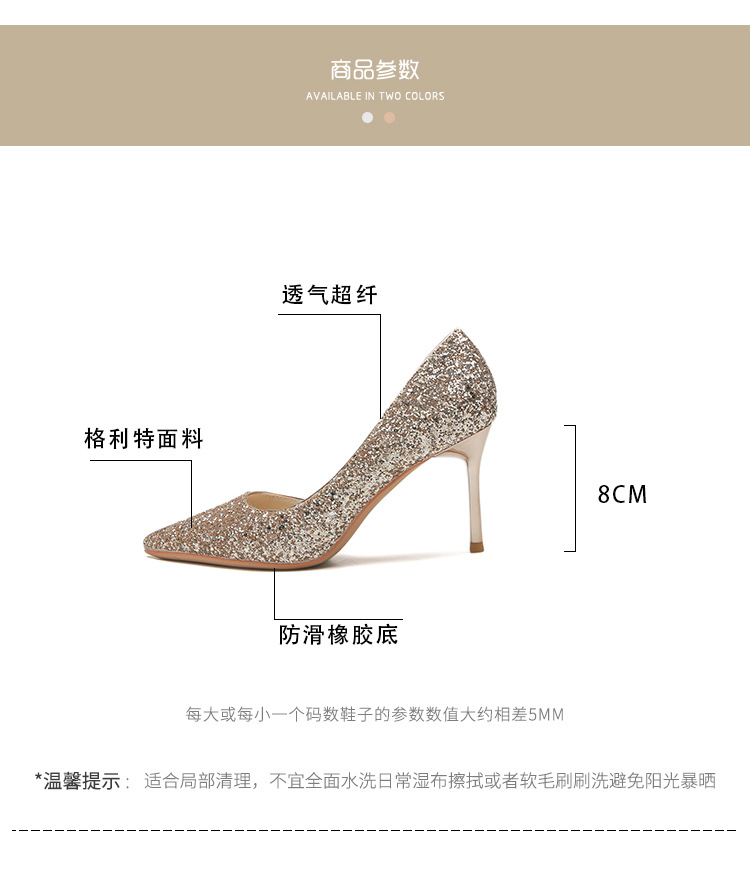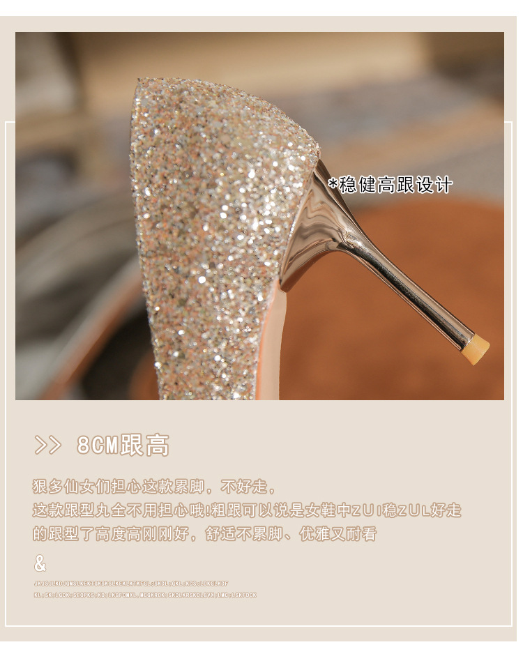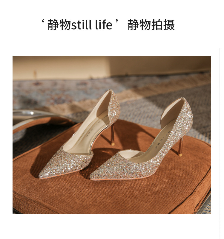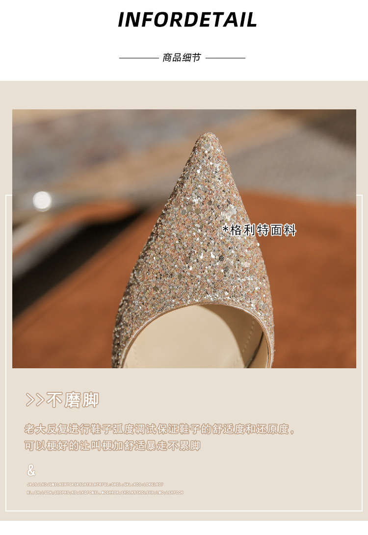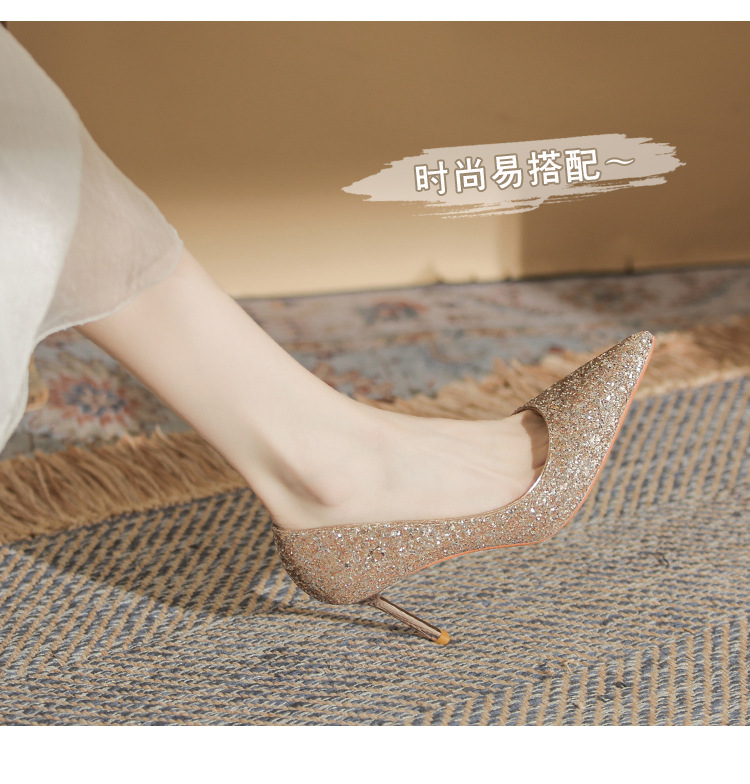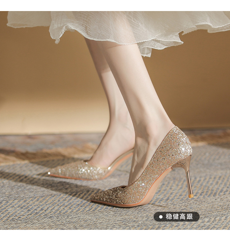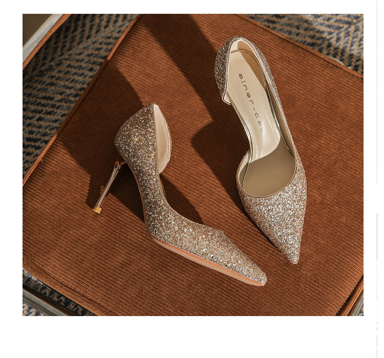 Đôi giày này có phần gót thon và mũi nhọn, tạo dáng thanh thoát. Chất liệu phủ ánh bạc lấp lánh như pha lê, phù hợp cho các dịp đặc biệt. Kiểu dáng được thiết kế mở nhẹ ở phần bên hông, giúp đôi chân thoải mái hơn. Bạn có thể dùng làm giày cho cô dâu hoặc bạn phụ dâu trong các buổi tiệc. Sử dụng bằng cách kết hợp cùng váy dài hoặc trang phục dự tiệc để tạo điểm nhấn. | Tên sản phẩm: Giày Cao Gót Nữ Mũi Nhọn Gót Nhọn Dùng Trong Lễ Cưới - Giày Dép Nữ | Mã sản phẩm: A1089 - Giá: 800.000đ | Mã nhà sản xuất: HUDS-G02Hình ảnh sản phẩm