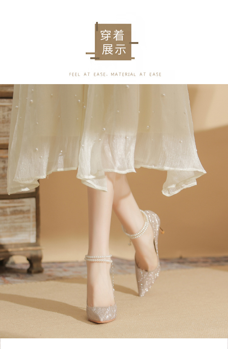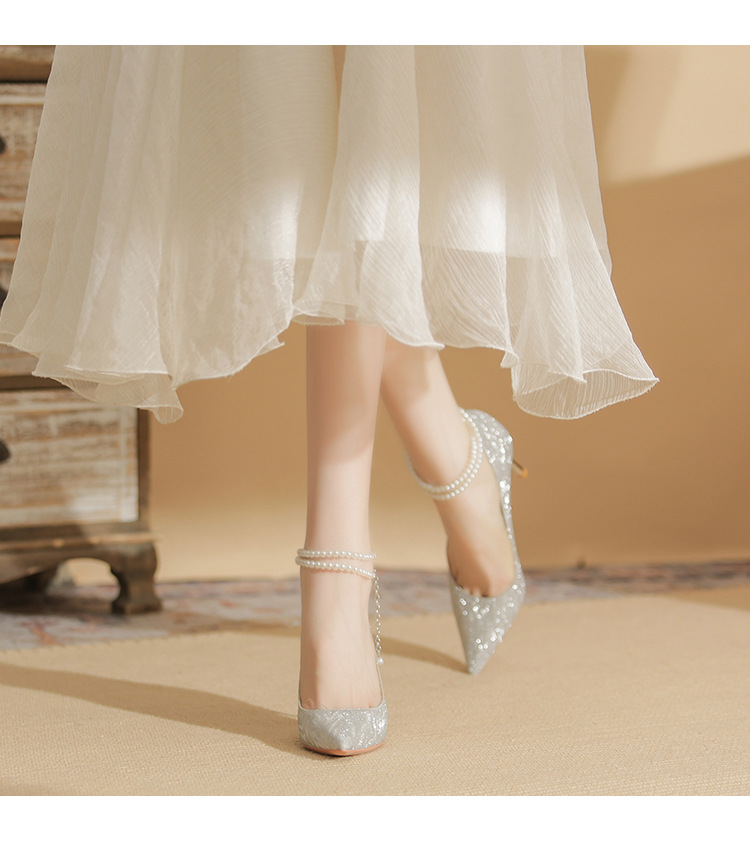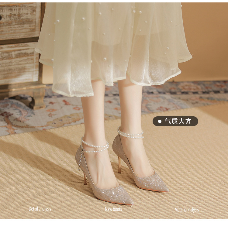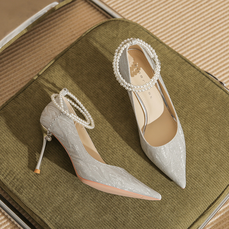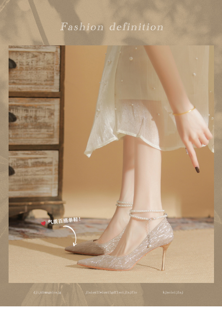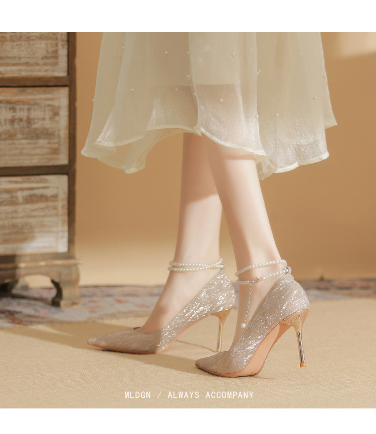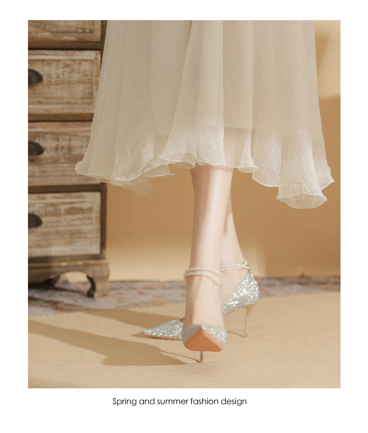 Đôi giày cao gót này có phần mũi nhọn thanh lịch, đi kèm gót nhọn vừa phải giúp tôn dáng. Chất liệu bóng nhẹ tạo điểm nhấn cùng những viên ngọc tr nhỏ xinh được đính tinh tế trên dây đeo có thể điều chỉnh. Sản phẩm thích hợp để mang trong các buổi tiệc hoặc sự kiện. Bạn chỉ cần quấn dây đeo quanh cổ chân và cố định lại là đã có một phong cách hoàn chỉnh. | Tên sản phẩm: Giày Cao Gót Nữ Mũi Nhọn Gót Nhọn Hàng Mùa Xuân Thu Đông Dùng Trong Lễ Cưới - Giày Dép Nữ | Mã sản phẩm: A1094 - Giá: 870.000đ | Mã nhà sản xuất: HUDS-G03Hình ảnh sản phẩm