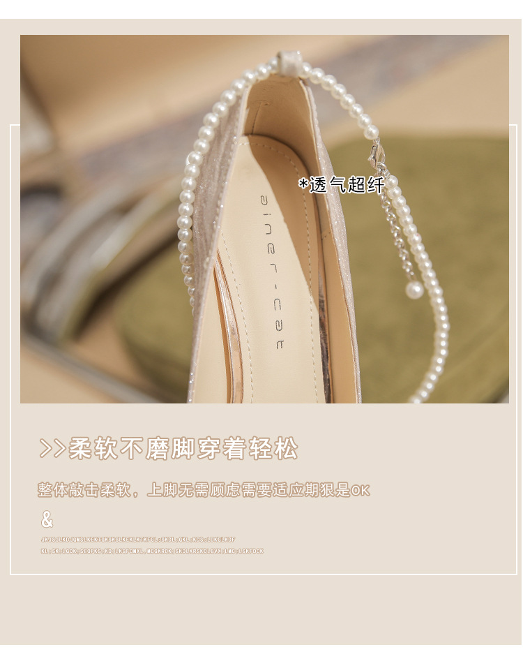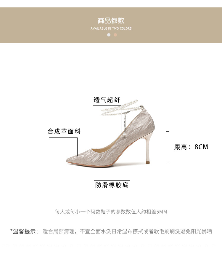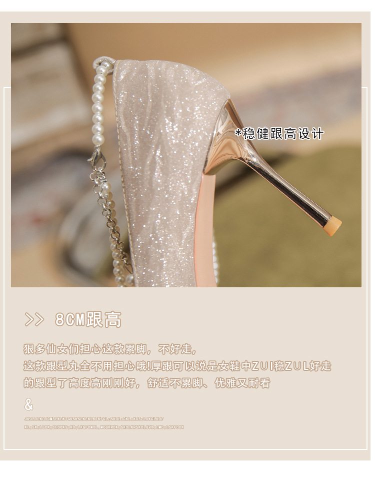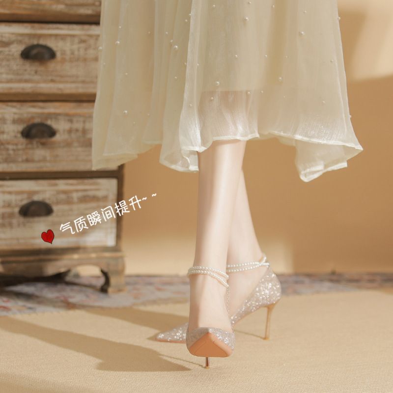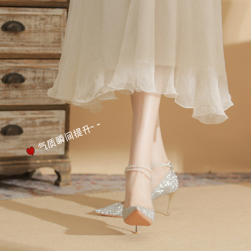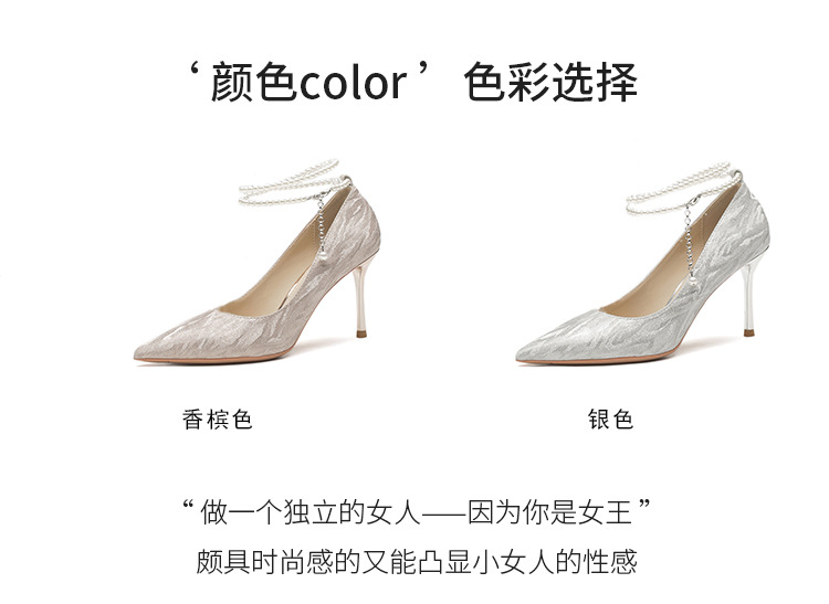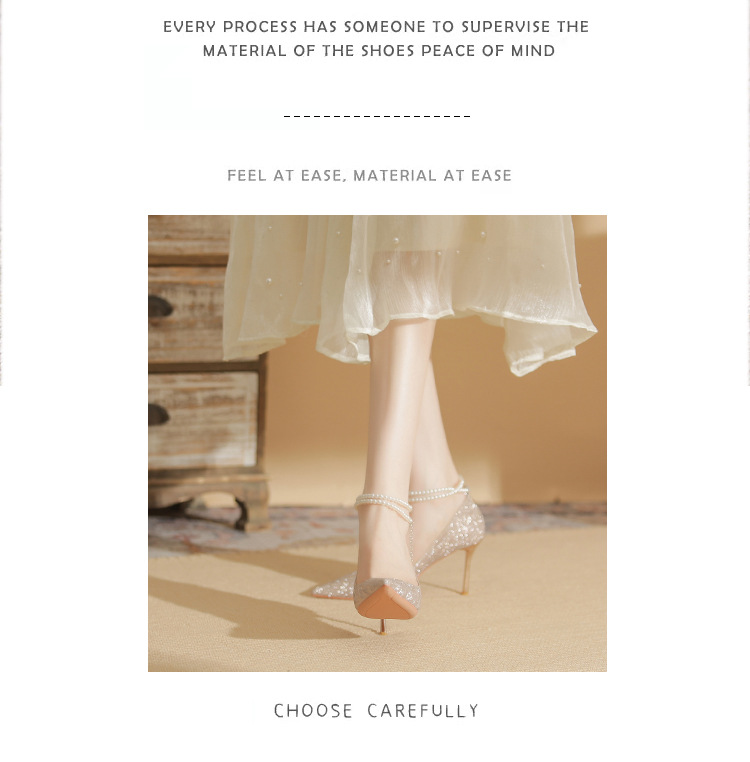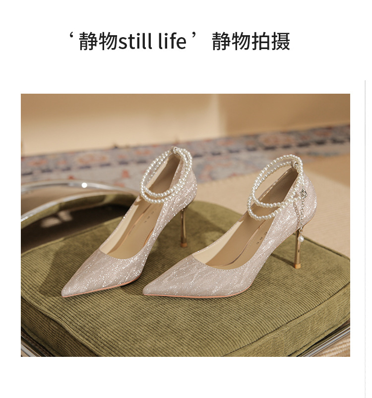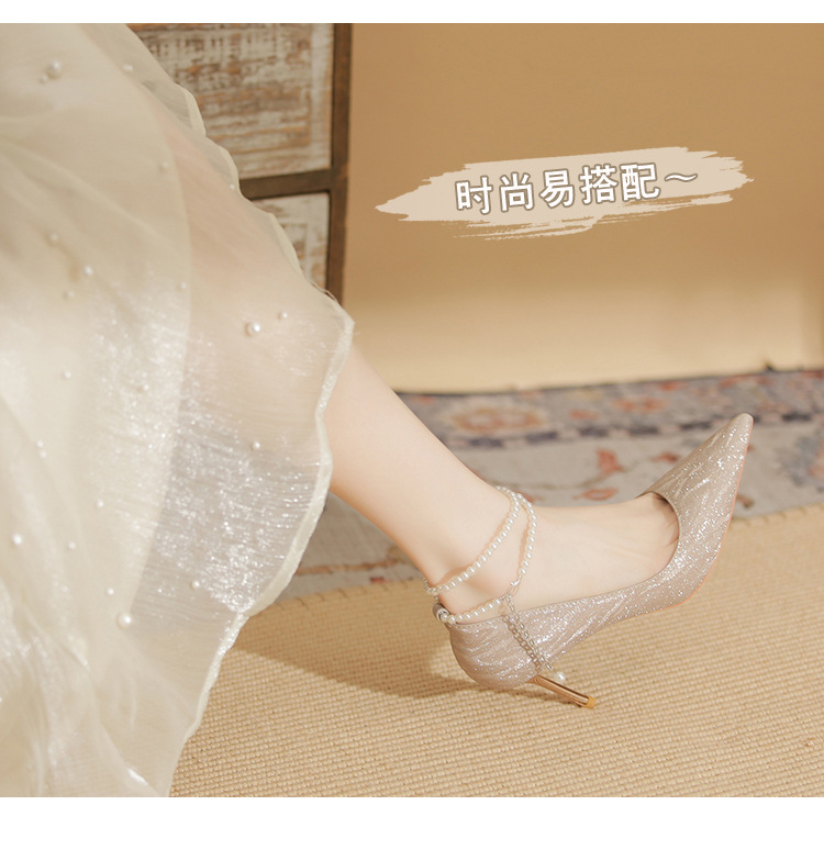 Đôi giày cao gót này có phần mũi nhọn thanh lịch, đi kèm gót nhọn vừa phải giúp tôn dáng. Chất liệu bóng nhẹ tạo điểm nhấn cùng những viên ngọc tr nhỏ xinh được đính tinh tế trên dây đeo có thể điều chỉnh. Sản phẩm thích hợp để mang trong các buổi tiệc hoặc sự kiện. Bạn chỉ cần quấn dây đeo quanh cổ chân và cố định lại là đã có một phong cách hoàn chỉnh. | Tên sản phẩm: Giày Cao Gót Nữ Mũi Nhọn Gót Nhọn Hàng Mùa Xuân Thu Đông Dùng Trong Lễ Cưới - Giày Dép Nữ | Mã sản phẩm: A1094 - Giá: 870.000đ | Mã nhà sản xuất: HUDS-G03Hình ảnh sản phẩm