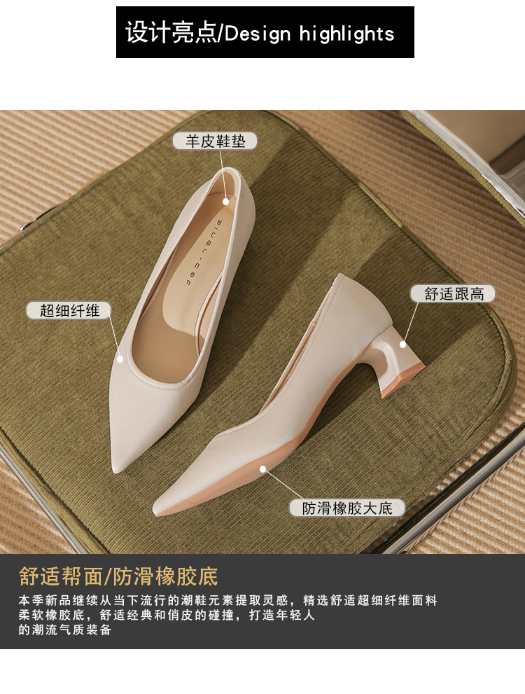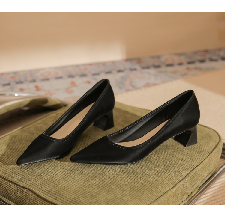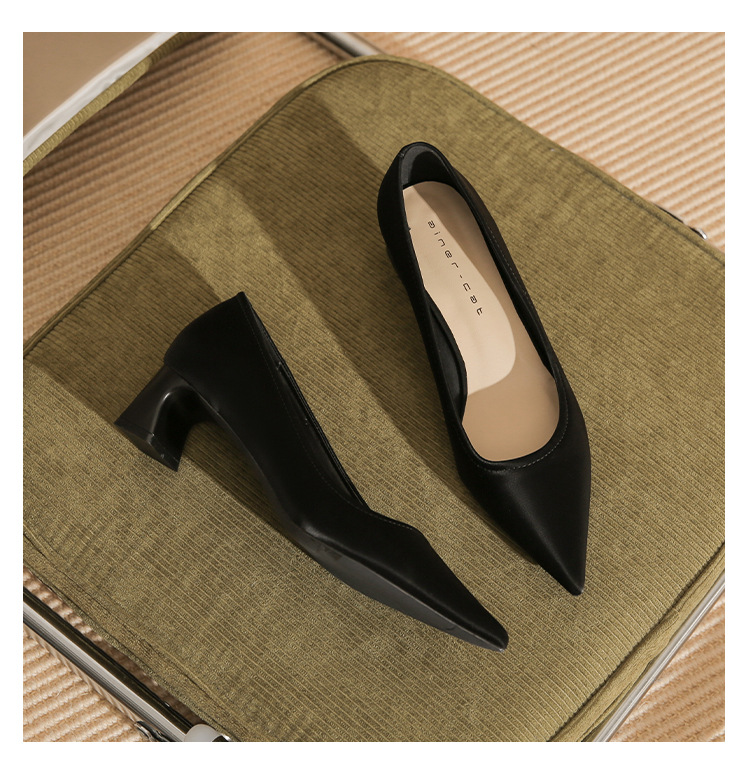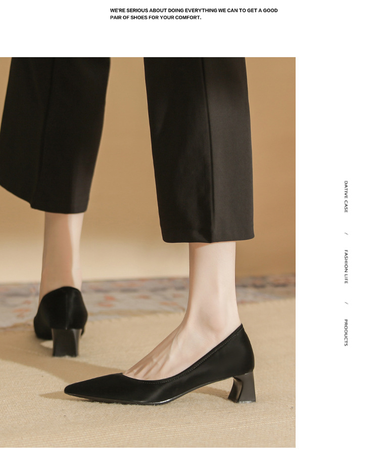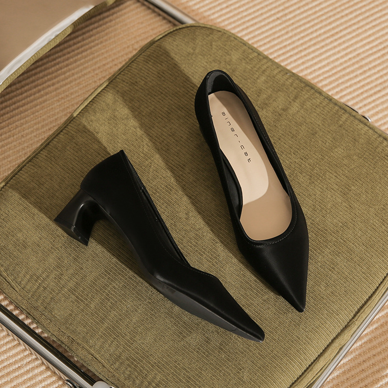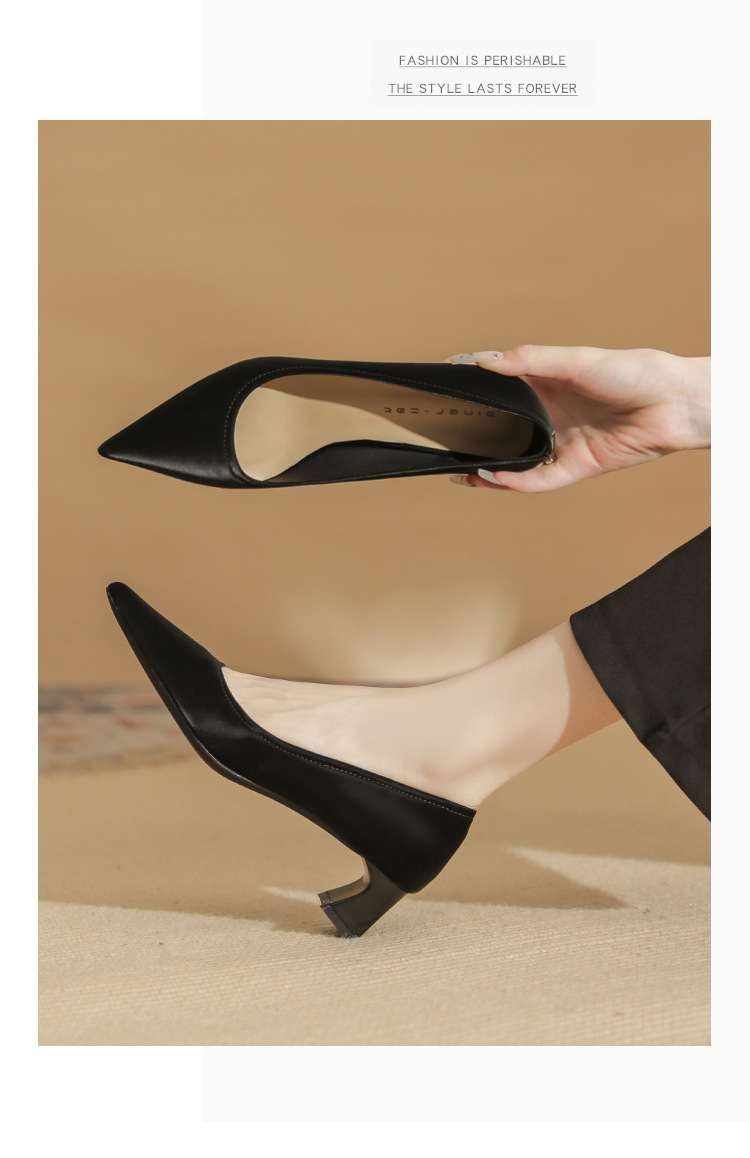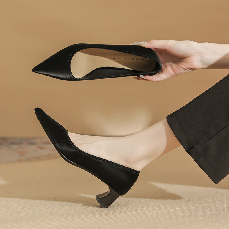 Giày cao gót nữ với phần mũi nhọn thanh lịch, thiết kế dễ mang cho công sở hàng ngày. Sản phẩm được làm từ chất liệu da mềm mại, tạo cảm giác dễ chịu. Kiểu gót thấp vững chắc giúp bạn thoải mái di chuyển cả ngày. Cách phối đồ rất đơn giản, phù hợp với nhiều loại trang phục như quần tây hay váy liền. Bạn có thể dùng khăn mềm để lau bề mặt, giữ giày luôn sạch sẽ. | Tên sản phẩm: Giày Cao Gót Nữ Mũi Nhọn Gót Vuông Hàng Mùa Xuân Thu Đông - Giày Dép Nữ | Mã sản phẩm: A1103 - Giá: 800.000đ | Mã nhà sản xuất: HUDS-G02Hình ảnh sản phẩm