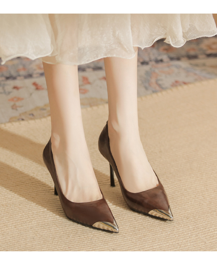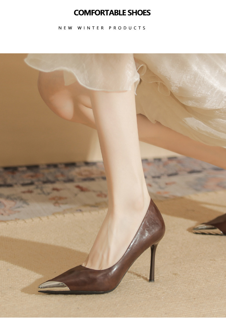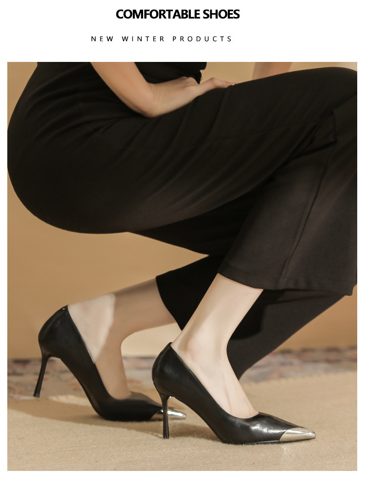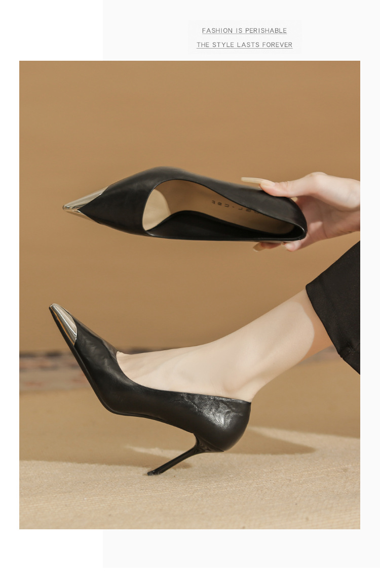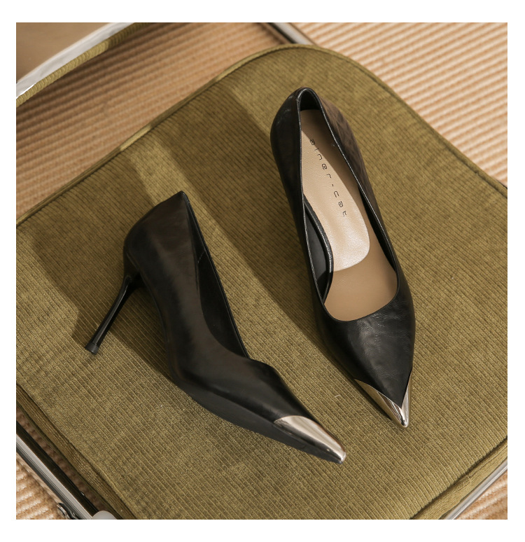Giày cao gót nữ với phần mũi nhọn thanh lịch, điểm nhấn là chi tiết kim loại sáng tạo ở đầu mũi, mang đến vẻ đẹp cổ điển. Sản phẩm được làm từ chất liệu da mềm mại, ôm chân nhẹ nhàng. Kiểu dáng cổ thấp và gót nhọn giúp tôn dáng tối đa. Bạn có thể phối hợp giày cùng nhiều trang phục như quần âu, váy liền để tạo điểm nhấn nổi bật cho tổng thể. | Tên sản phẩm: Giày Cao Gót Nữ Mũi Nhọn Gót Nhọn Hàng Mùa Xuân Thu Đông Phục Cổ Cổ Điển - Giày Dép Nữ | Mã sản phẩm: A1106 - Giá: 890.000đ | Mã nhà sản xuất: HUDS-G03Hình ảnh sản phẩm