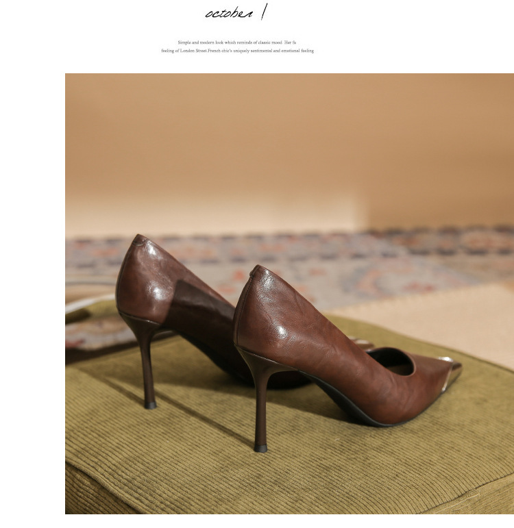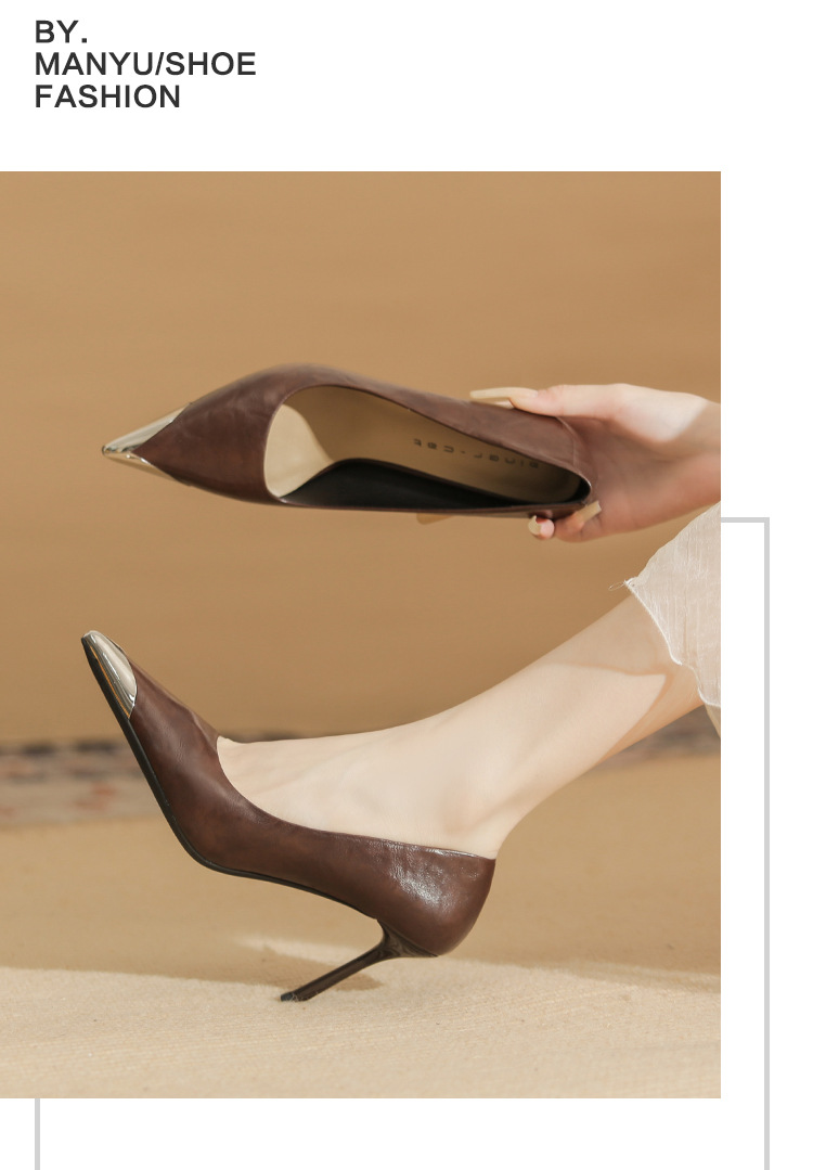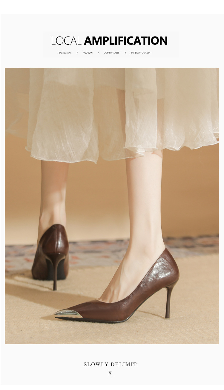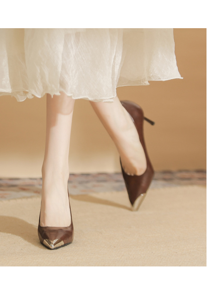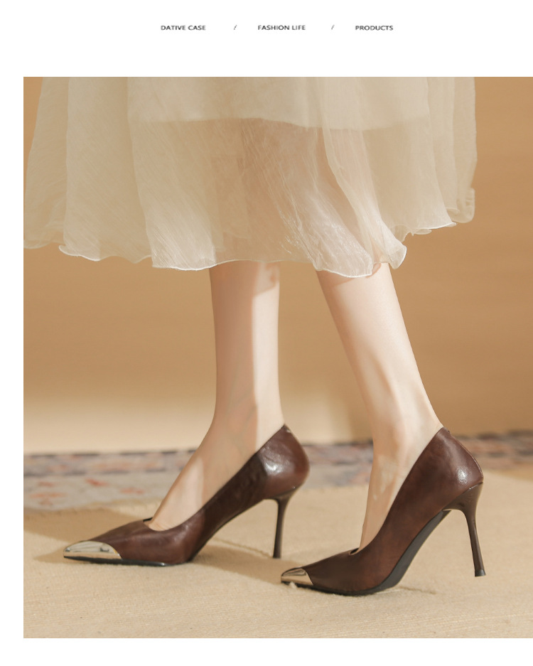 Giày cao gót nữ với phần mũi nhọn thanh lịch, điểm nhấn là chi tiết kim loại sáng tạo ở đầu mũi, mang đến vẻ đẹp cổ điển. Sản phẩm được làm từ chất liệu da mềm mại, ôm chân nhẹ nhàng. Kiểu dáng cổ thấp và gót nhọn giúp tôn dáng tối đa. Bạn có thể phối hợp giày cùng nhiều trang phục như quần âu, váy liền để tạo điểm nhấn nổi bật cho tổng thể. | Tên sản phẩm: Giày Cao Gót Nữ Mũi Nhọn Gót Nhọn Hàng Mùa Xuân Thu Đông Phục Cổ Cổ Điển - Giày Dép Nữ | Mã sản phẩm: A1106 - Giá: 890.000đ | Mã nhà sản xuất: HUDS-G03Hình ảnh sản phẩm