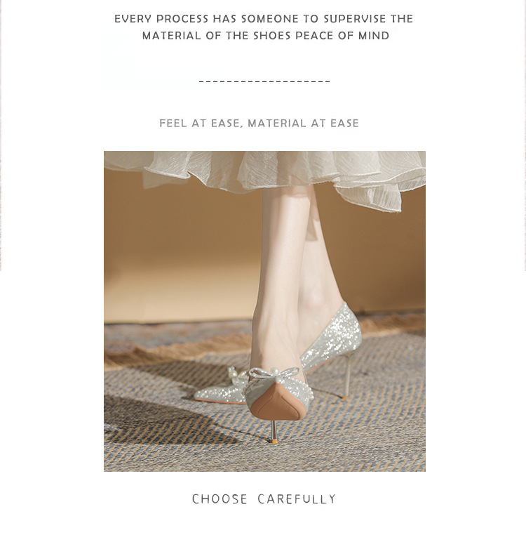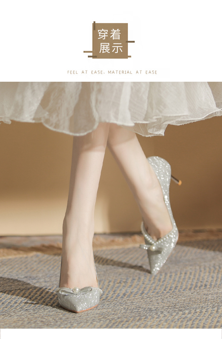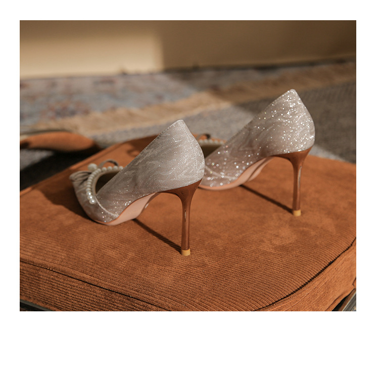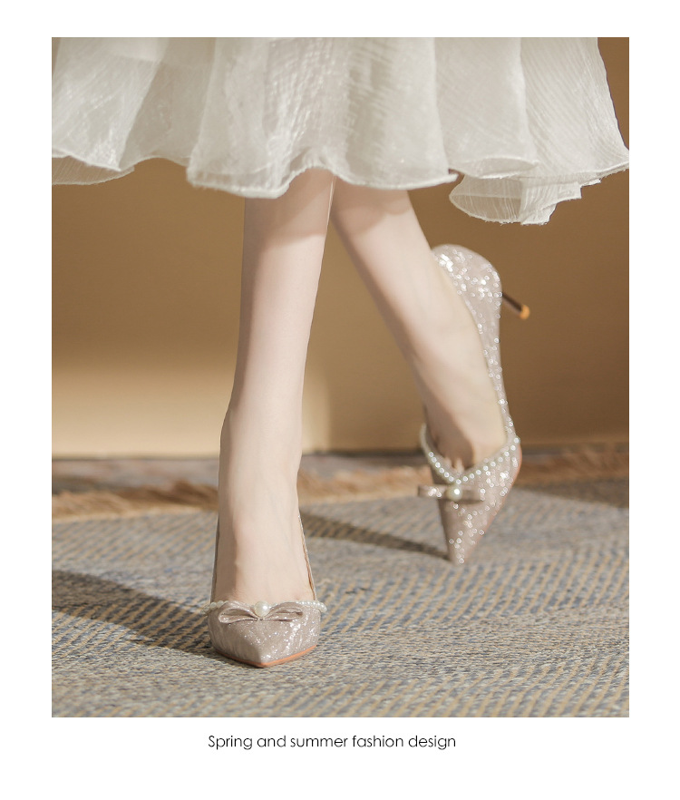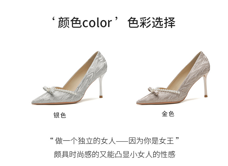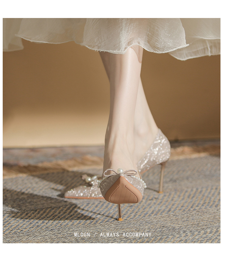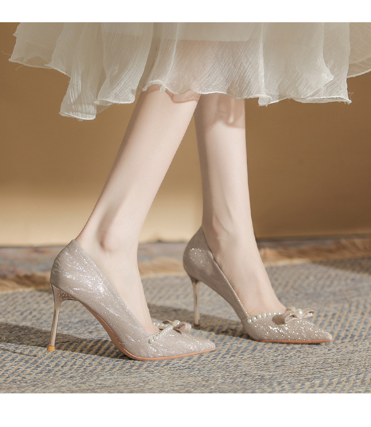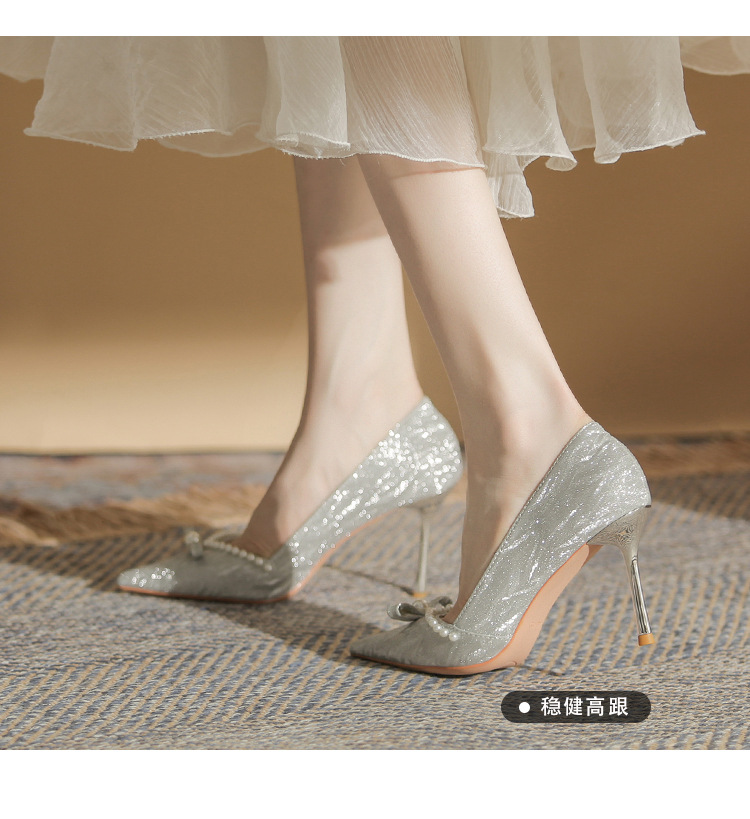 Đôi giày cao gót này có phần mũi nhọn và cổ giày thấp, tạo nên vẻ thanh thoát. Gót nhọn vừa phải giúp tôn dáng. Điểm nhấn là những hạt ngọc tr và pha lê lấp lánh được kết hợp tinh tế cùng lớp ánh kim từ chất liệu vải. Sản phẩm phù hợp cho các buổi tiệc hoặc ngày trọng đại. Bạn chỉ cần xỏ chân vào và cài qu gót là đã sẵn sàng để bước đi tự tin. | Tên sản phẩm: Giày Cao Gót Nữ Mũi Nhọn Gót Nhọn Dùng Trong Lễ Cưới - Giày Dép Nữ | Mã sản phẩm: A1115 - Giá: 870.000đ | Mã nhà sản xuất: HUDS-G03Hình ảnh sản phẩm