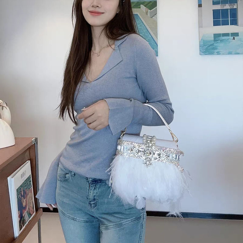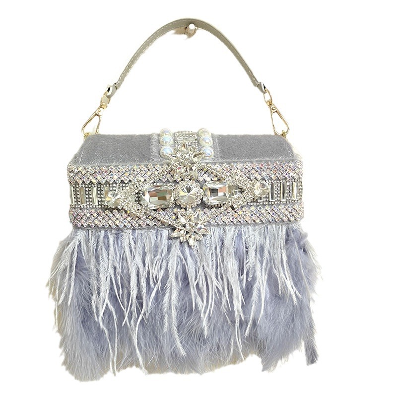 Túi thời trang này kết hợp nhiều chi tiết đẹp mắt như điểm xuyết lông chim, hạt ngọc tr và hạt kim tuyến lấp lánh, cùng phần tua rủ điệu đà. Kiểu dáng hiện đại, phù hợp cho các buổi tiệc hoặc dạo phố. Bạn có thể đeo như túi đeo chéo hoặc xách tay một cách linh hoạt. Thiết kế nhỏ gọn nhưng vẫn đủ rộng để đựng các vật dụng cá nhân cần thiết mỗi khi ra ngoài. | Tên sản phẩm: Túi Xách Nữ Gắn Đá - Túi Ví Nữ | Mã sản phẩm: A1118 - Giá: 1.120.000đ | Mã nhà sản xuất: SHOUAC-G04Hình ảnh sản phẩm