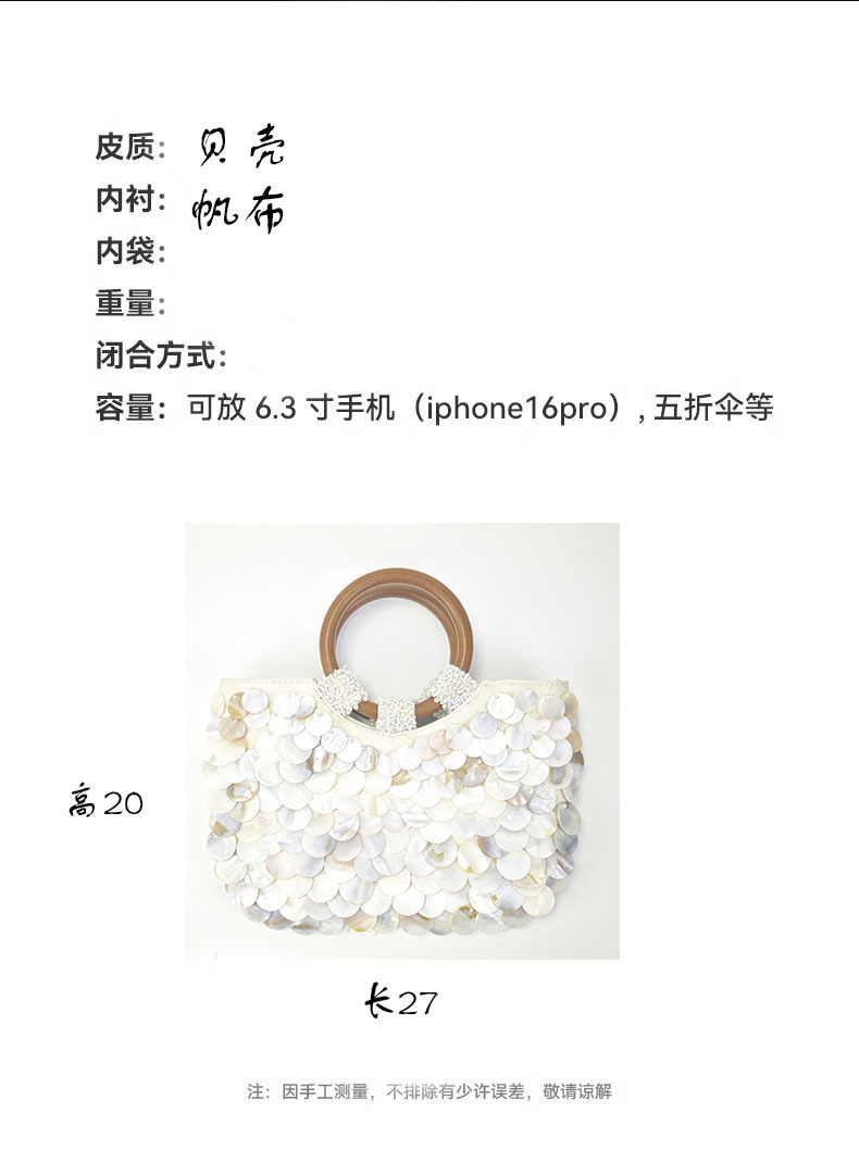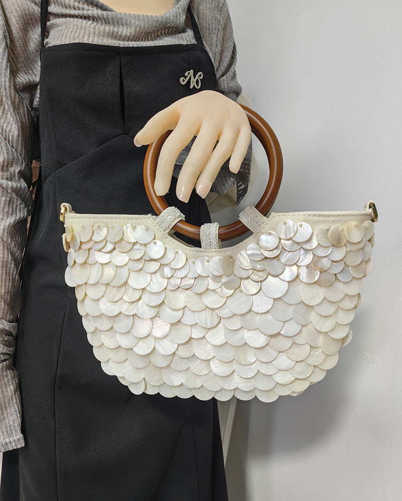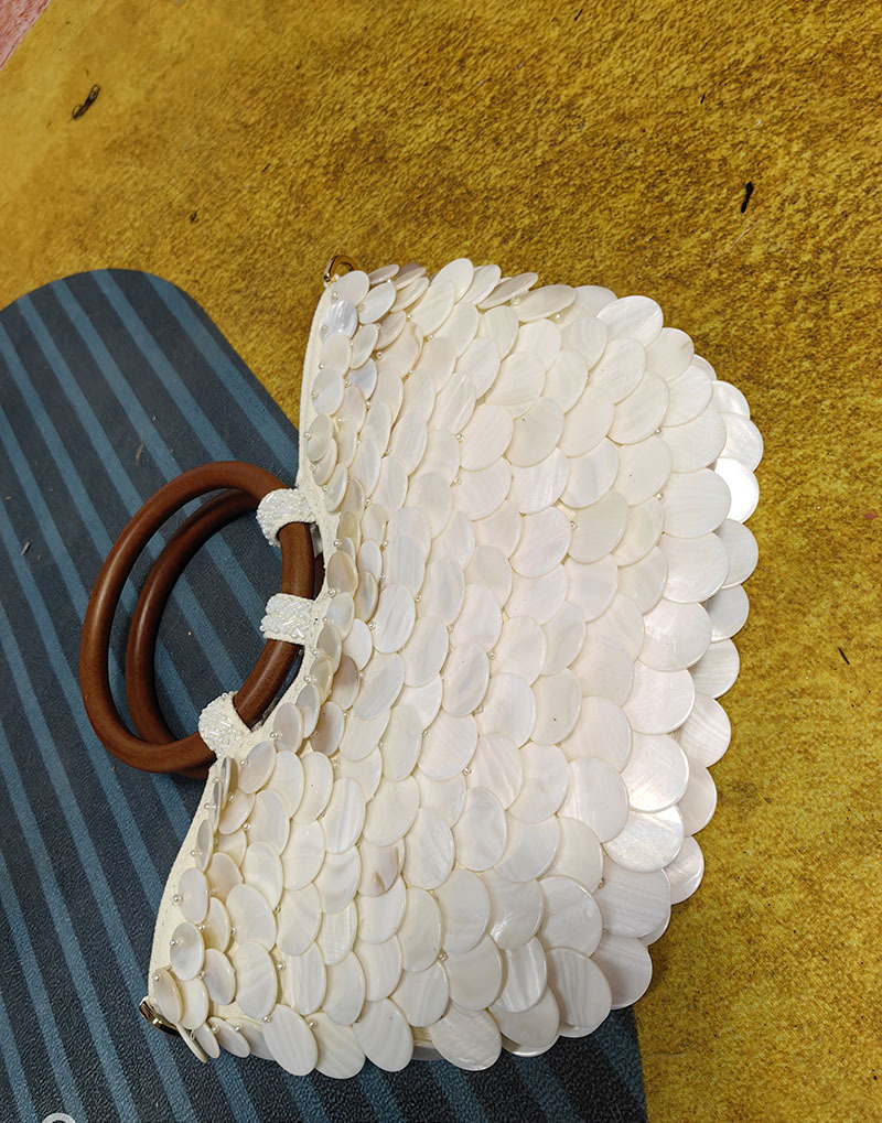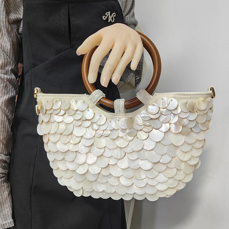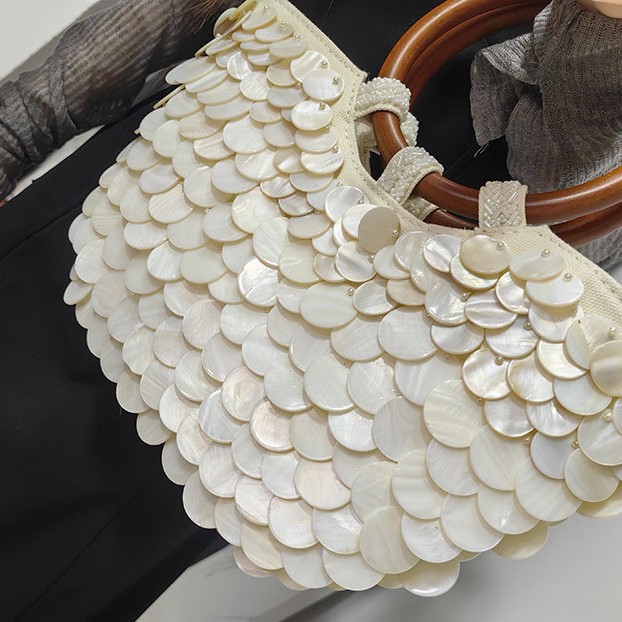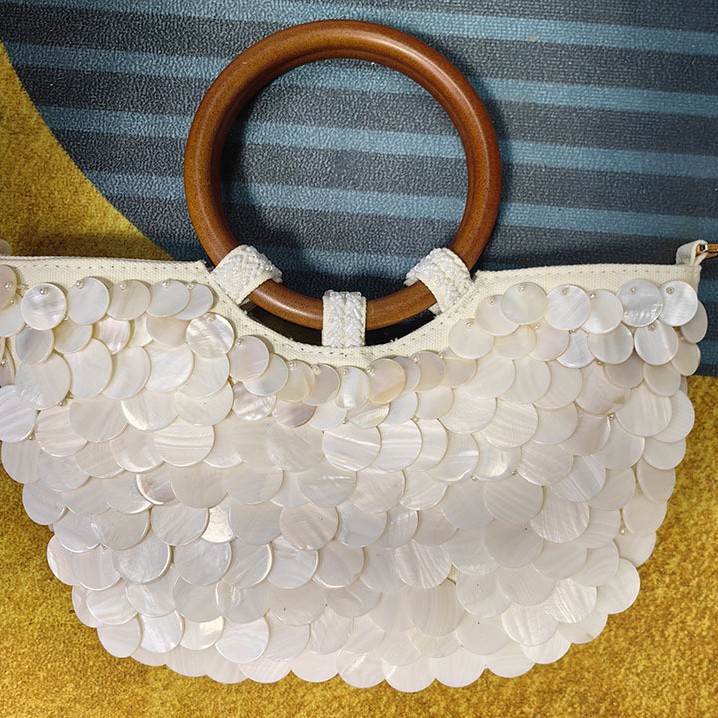 Túi xách mới dành cho các cô gái, được làm hoàn toàn thủ công với điểm nhấn là những chi tiết vỏ sò xinh xắn. Tay cầm bằng gỗ tạo cảm giác mộc mạc, kèm theo dây đeo chuỗi hạt linh hoạt để bạn mang làm túi xách tay hoặc đeo chéo tùy thích. Kiểu dáng nhẹ nhàng, phù hợp cho những dịp dạo phố hay gặp gỡ bạn bè. Cách sử dụng đơn giản, chỉ cần điều chỉnh dây đeo theo ý muốn là đã có ngay một phong cách mới mẻ. | Tên sản phẩm: Túi Xách Nữ Hàng Mùa Hè - Túi Ví Nữ | Mã sản phẩm: A1123 - Giá: 1.860.000đ | Mã nhà sản xuất: SHOUAC-G05Hình ảnh sản phẩm