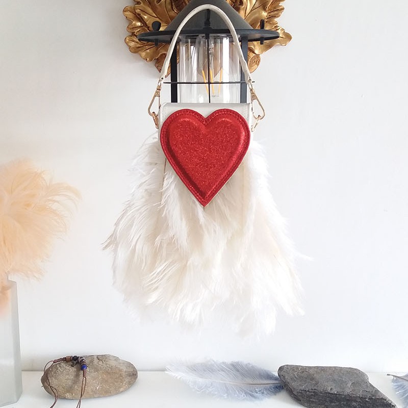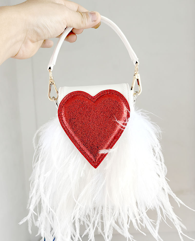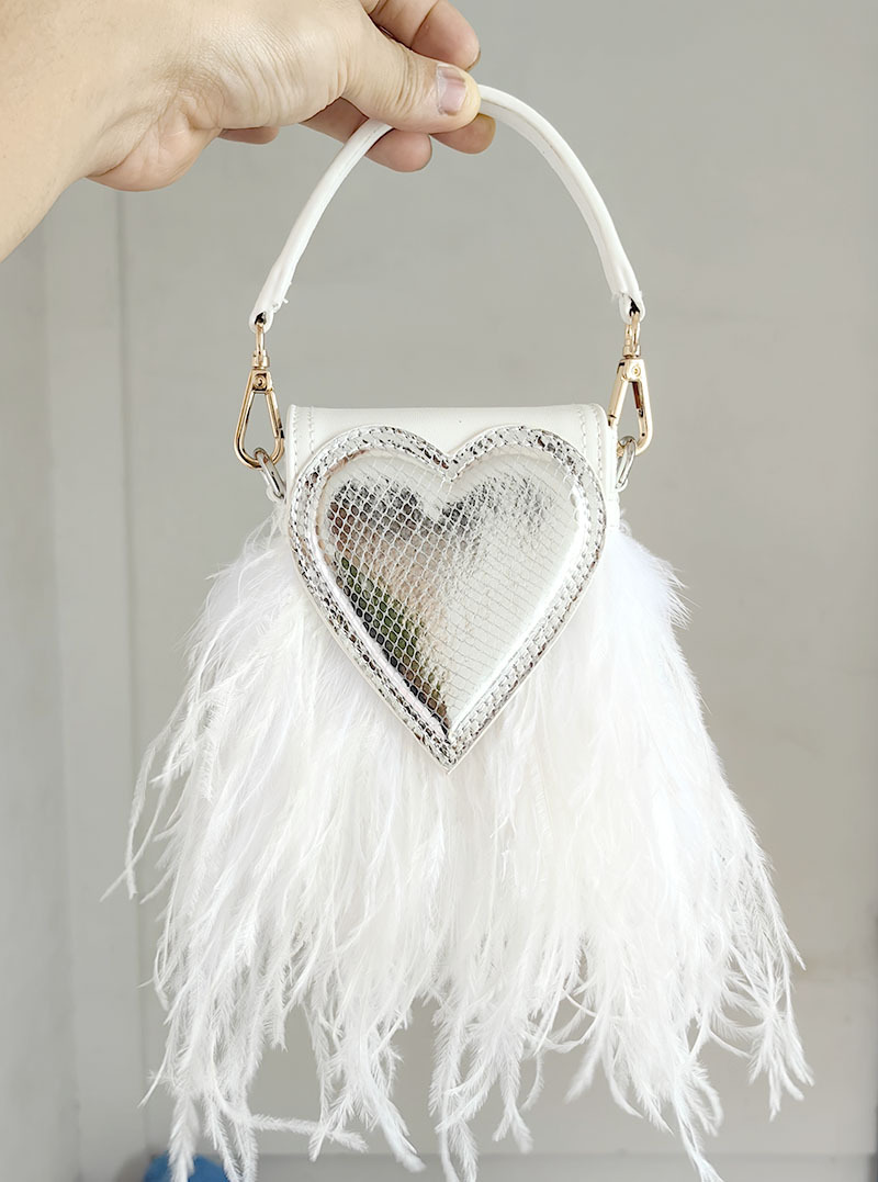 Túi xách nữ tính với điểm nhấn là chi tiết hình trái tim ngọt ngào, kết hợp cùng phụ kiện lông vũ mềm mại tạo nên vẻ đẹp trẻ trung, điệu đà. Thiết kế nhỏ gọn rất phù hợp để đựng điện thoại, ví và các vật dụng cá nhân thiết yếu. Sản phẩm có qu xách và dây đeo dài linh hoạt, cho phép bạn mang theo như túi xách tay hoặc đeo chéo tiện lợi. Dễ dàng phối hợp với nhiều kiểu trang phục để tạo điểm nhấn ấn tượng. | Tên sản phẩm: Túi Xách Nữ - Túi Ví Nữ | Mã sản phẩm: A1124 - Giá: 840.000đ | Mã nhà sản xuất: SHOUAC-G03Hình ảnh sản phẩm