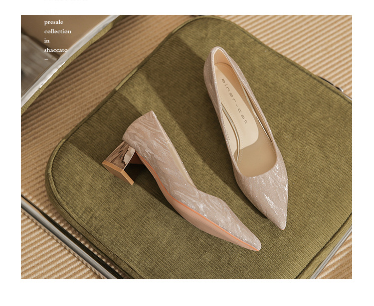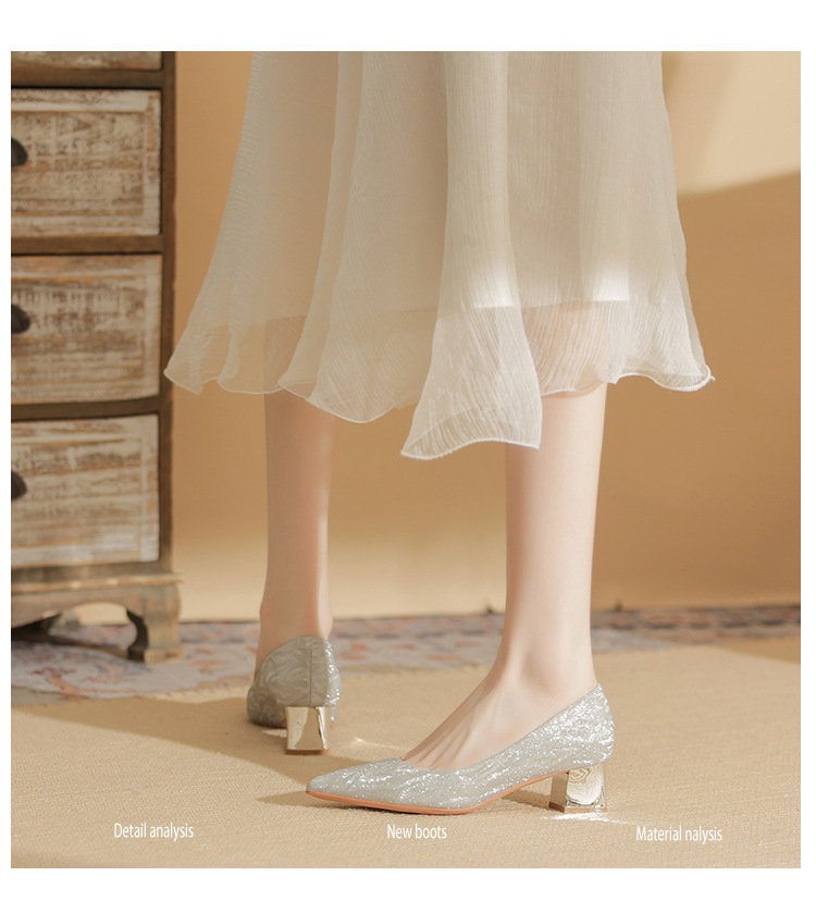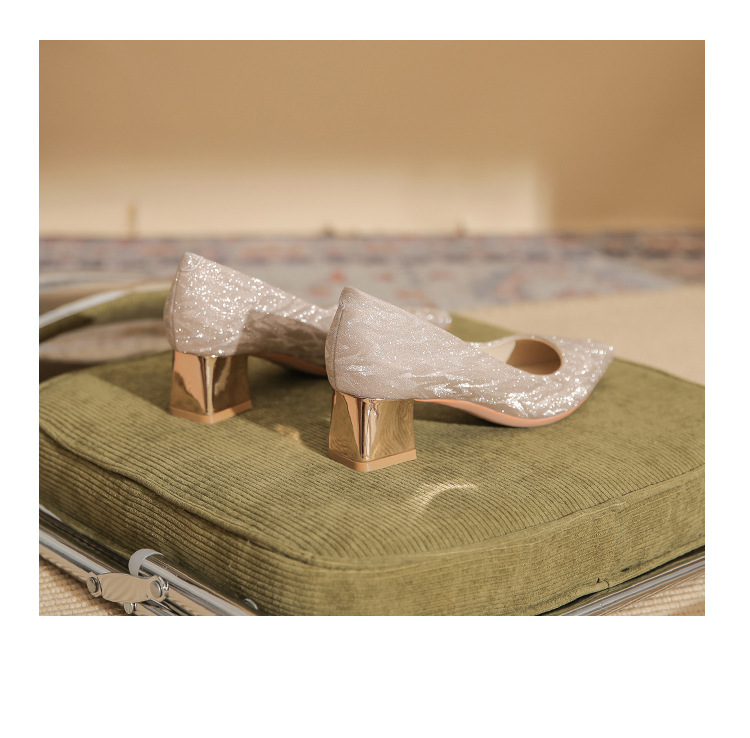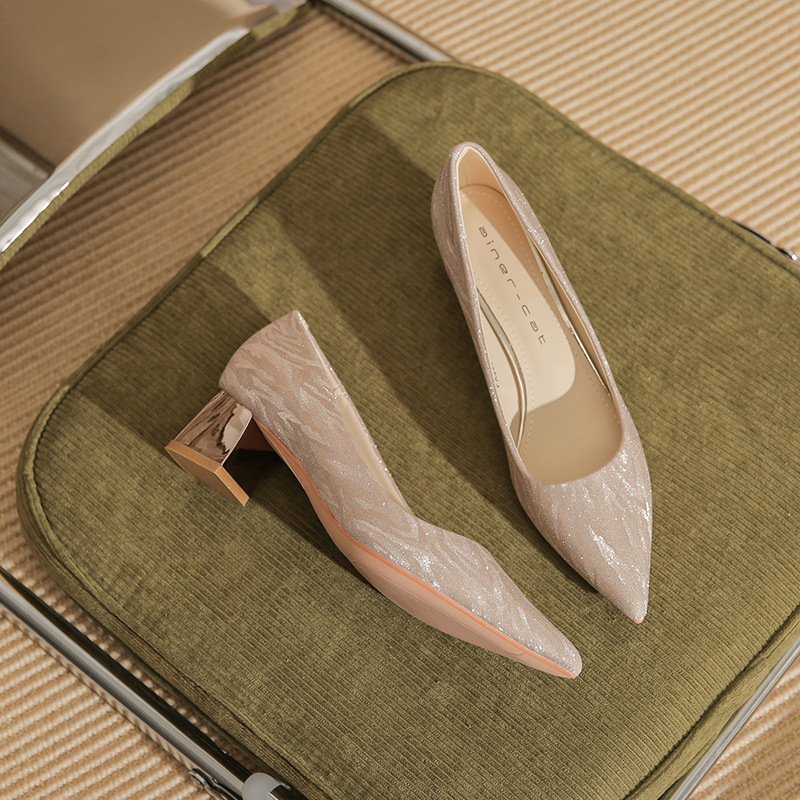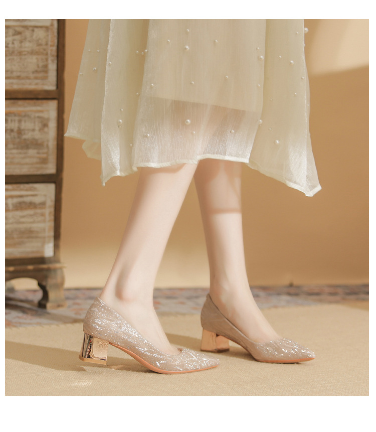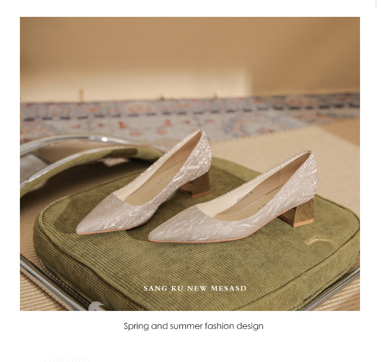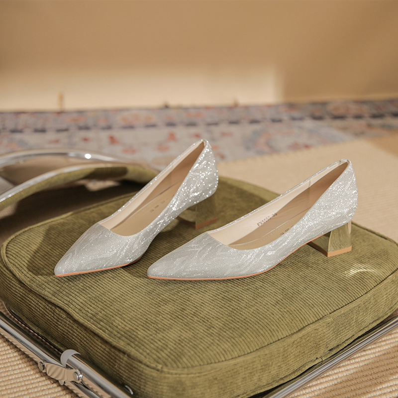 Giày dành cho nữ, kiểu dáng mới phù hợp thời tiết ấm. Mũi giày nhọn ôm chân, phần gót thấp vững chắc giúp bạn di chuyển thoải mái. Phía trước cổ giày ôm nhẹ, tạo điểm nhấn với chi tiết đính hạt lấp lánh tinh tế. Kiểu giày này dễ dàng kết hợp với nhiều trang phục khác nhau như quần tây, váy công sở hay trang phục dạo phố. Sử dụng phù hợp cho các buổi tiệc, sự kiện hoặc mang trong những dịp hàng ngày. | Tên sản phẩm: Giày Cao Gót Nữ Mũi Nhọn Gót Vuông Hàng Mùa Xuân Thu Đông Dùng Trong Lễ Cưới - Giày Dép Nữ | Mã sản phẩm: A1130 - Giá: 780.000đ | Mã nhà sản xuất: HUDS-G02Hình ảnh sản phẩm