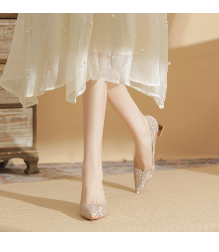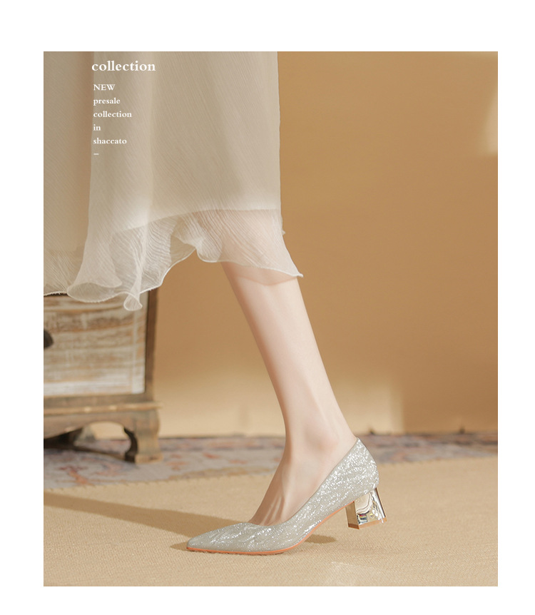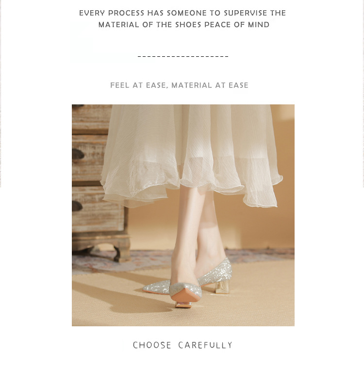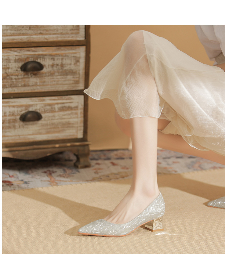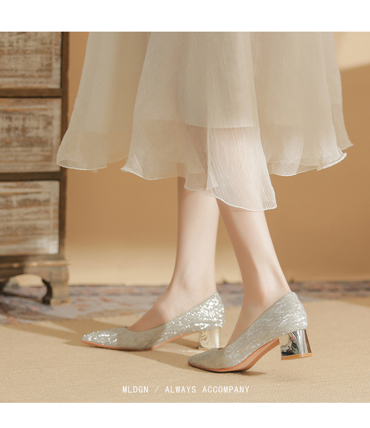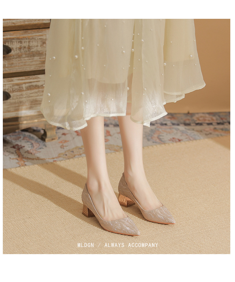 Giày dành cho nữ, kiểu dáng mới phù hợp thời tiết ấm. Mũi giày nhọn ôm chân, phần gót thấp vững chắc giúp bạn di chuyển thoải mái. Phía trước cổ giày ôm nhẹ, tạo điểm nhấn với chi tiết đính hạt lấp lánh tinh tế. Kiểu giày này dễ dàng kết hợp với nhiều trang phục khác nhau như quần tây, váy công sở hay trang phục dạo phố. Sử dụng phù hợp cho các buổi tiệc, sự kiện hoặc mang trong những dịp hàng ngày. | Tên sản phẩm: Giày Cao Gót Nữ Mũi Nhọn Gót Vuông Hàng Mùa Xuân Thu Đông Dùng Trong Lễ Cưới - Giày Dép Nữ | Mã sản phẩm: A1130 - Giá: 780.000đ | Mã nhà sản xuất: HUDS-G02Hình ảnh sản phẩm