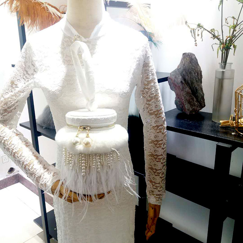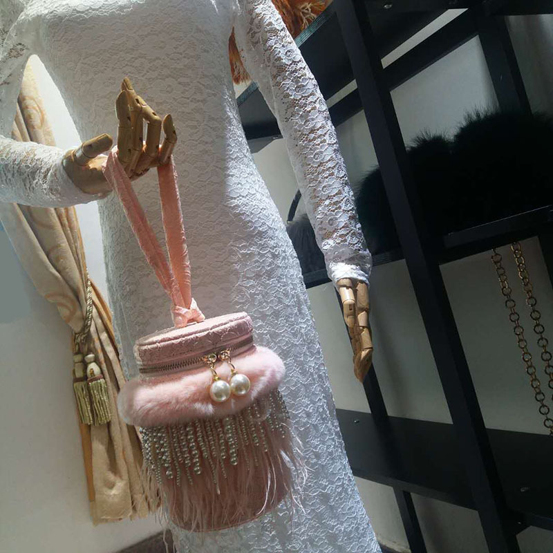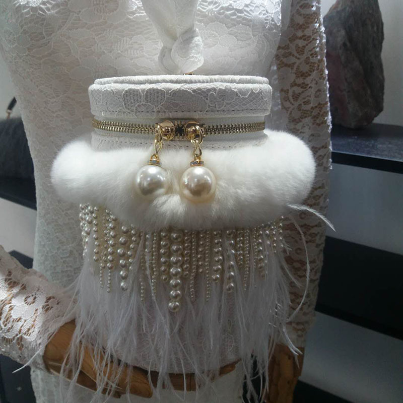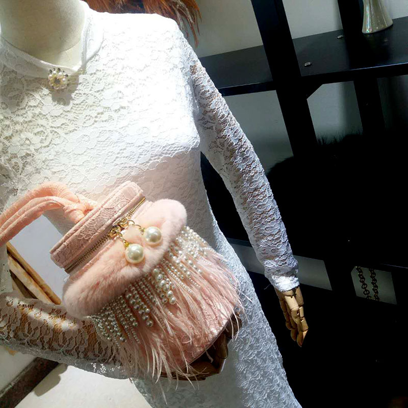 Chiếc túi này có kiểu dáng đeo chéo một bên v hoặc xách tay bằng qu, rất hợp để dùng trong các buổi tiệc tối hay dạo phố. Điểm nhấn đặc biệt là lớp lông trang trí mềm mại trên thân túi, kết hợp cùng họa tiết ren tinh tế và những hạt ngọc tr lấp lánh. Bạn có thể dễ dàng điều chỉnh dây đeo để phù hợp với nhiều hoàn cảnh sử dụng khác nhau. | Tên sản phẩm: Túi Xách Nữ Chất Liệu Ren - Túi Ví Nữ | Mã sản phẩm: A1135 - Giá: 1.300.000đ | Mã nhà sản xuất: SHOUAC-G04Hình ảnh sản phẩm