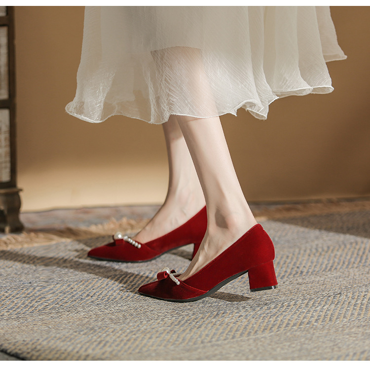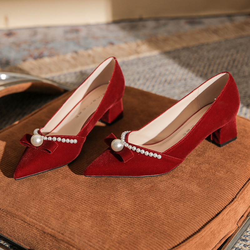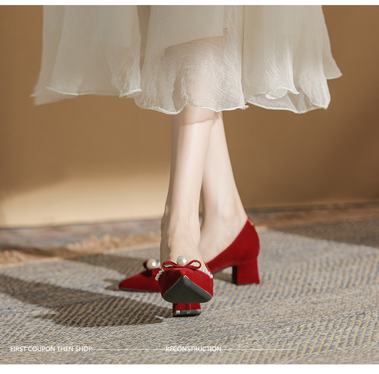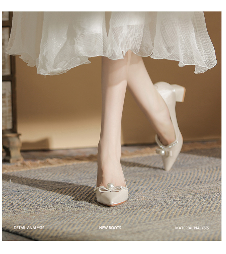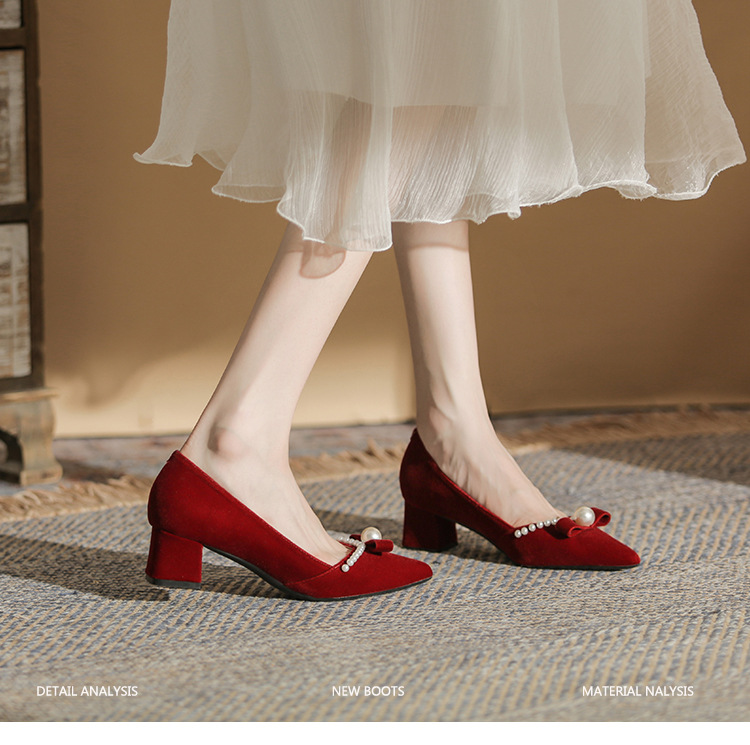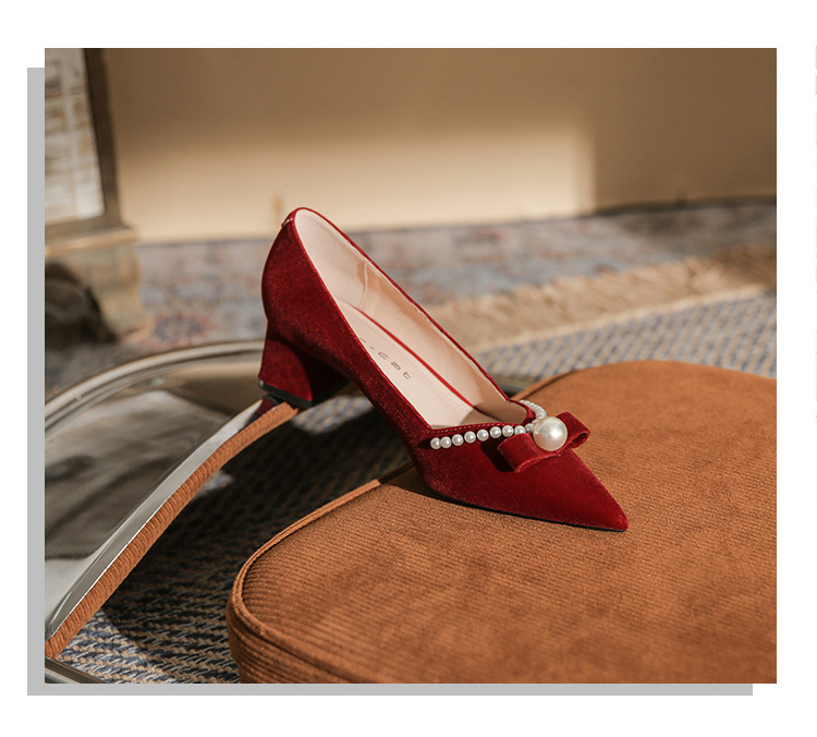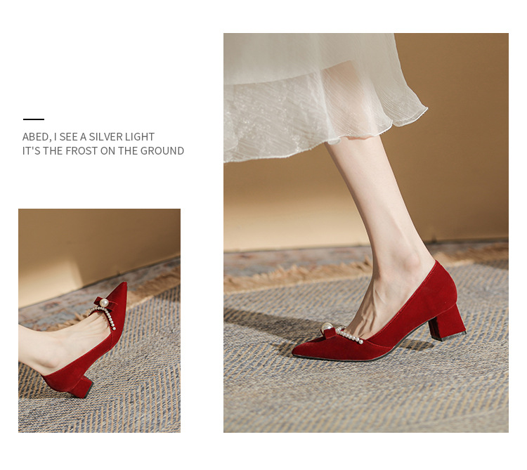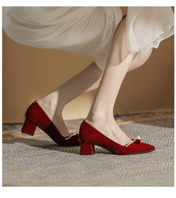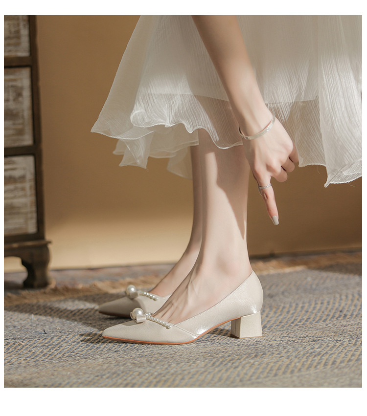 Đôi giày này mang phong cách thời trang châu Âu, dành riêng cho các dịp quan trọng như chụp ảnh cưới hay lễ thành hôn. Thiết kế có mũi nhọn thanh lịch cùng phần gót chắc chắn giúp tôn dáng người mang. Điểm nhấn là những hạt ngọc tr tinh xảo được điểm xung quanh. Sản phẩm có hai cách sử dụng linh hoạt: có thể mang nguyên bản hoặc tháo rời phần qu sau. Chất liệu nhẹ nhàng và êm ái, phù hợp để sử dụng trong nhiều giờ liền. | Tên sản phẩm: Giày Cao Gót Nữ Mũi Nhọn Gót Vuông Dùng Trong Lễ Cưới - Giày Dép Nữ | Mã sản phẩm: A1163 - Giá: 780.000đ | Mã nhà sản xuất: HUDS-G02Hình ảnh sản phẩm