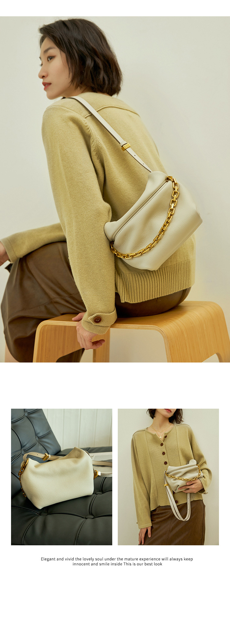 Chiếc túi nhỏ mang phong cách đám mây với những nếp nhăn mềm mại, được làm từ chất liệu da thật. Dây đeo chuỗi vừa vặn giúp bạn có thể đeo v hoặc khoác chéo một cách thoải mái. Kiểu dáng tròn trịa như chiếc bánh bao, rất dễ phối đồ cho những dịp gặp gỡ hàng ngày. Chỉ cần cho ví, điện thoại và vài món đồ nhỏ là bạn đã sẵn sàng ra ngoài. | Tên sản phẩm: Túi Xách Nữ Chất Liệu Da Bò Hàng Mùa Hè - Túi Ví Nữ | Mã sản phẩm: A1164 - Giá: 1.120.000đ | Mã nhà sản xuất: GUDAT-G04Hình ảnh sản phẩm