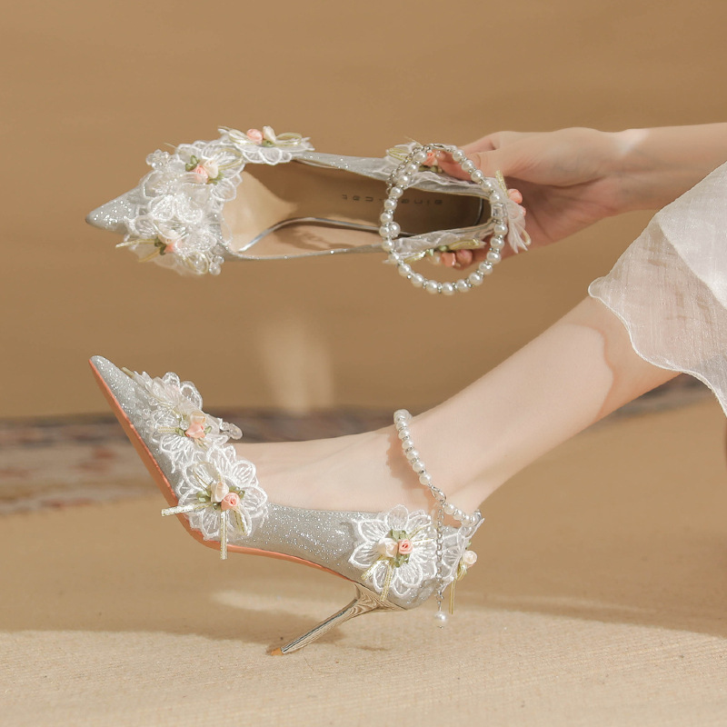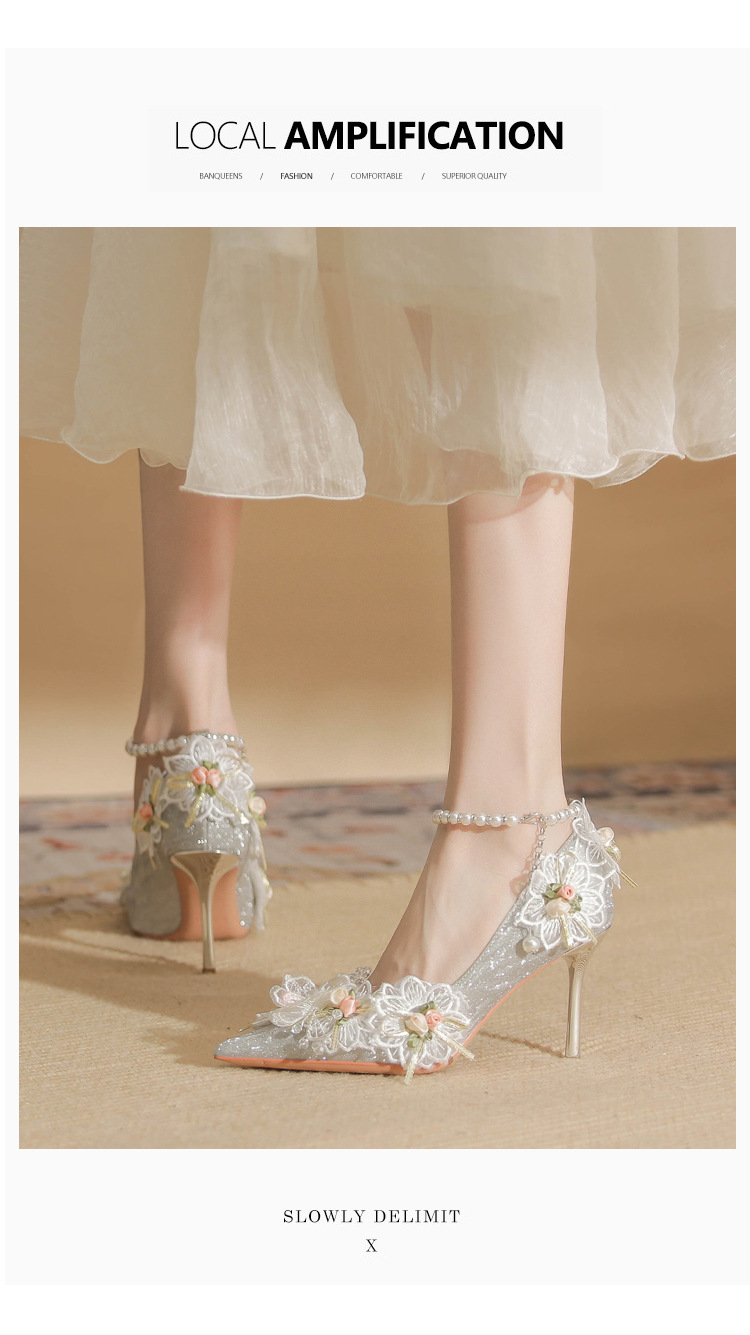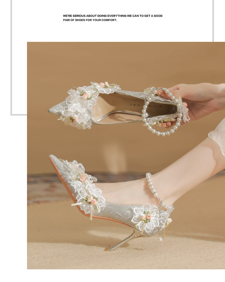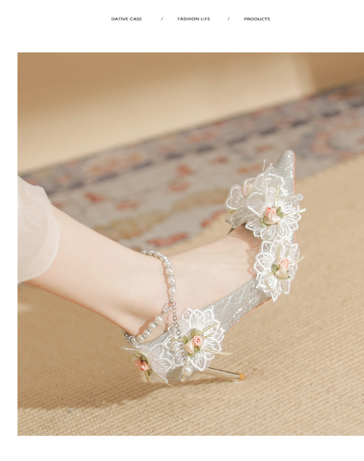 Đôi giày này có phần đế cao gót nhọn thanh thoát, điểm xuyến những bông hoa ren tinh xảo và hạt ngọc tr lấp lánh. Dây đeo chéo mảnh m ôm sát bàn chân, tạo nên vẻ đẹp dịu dàng. Chất liệu da mềm mại mang lại cảm giác dễ chịu khi mang. Bạn có thể kết hợp cùng váy dự tiệc hoặc trang phục đi làm để nổi bật phong cách nữ tính và duyên dáng. | Tên sản phẩm: Giày Cao Gót Nữ Chất Liệu Ren Gót Nhọn Họa Tiết Hoa Dùng Trong Lễ Cưới - Giày Dép Nữ | Mã sản phẩm: A1197 - Giá: 1.050.000đ | Mã nhà sản xuất: HUDS-G03Hình ảnh sản phẩm