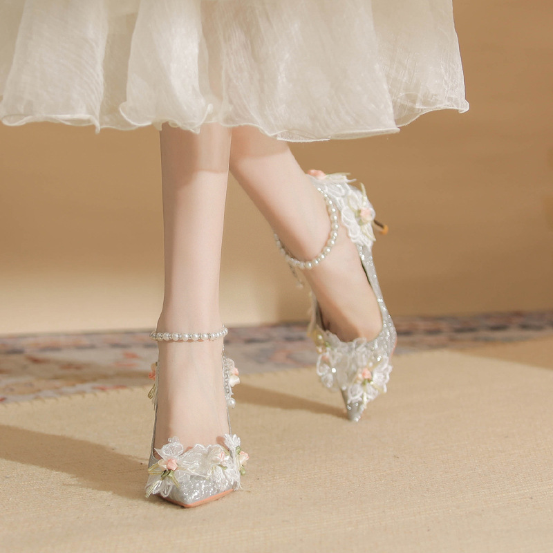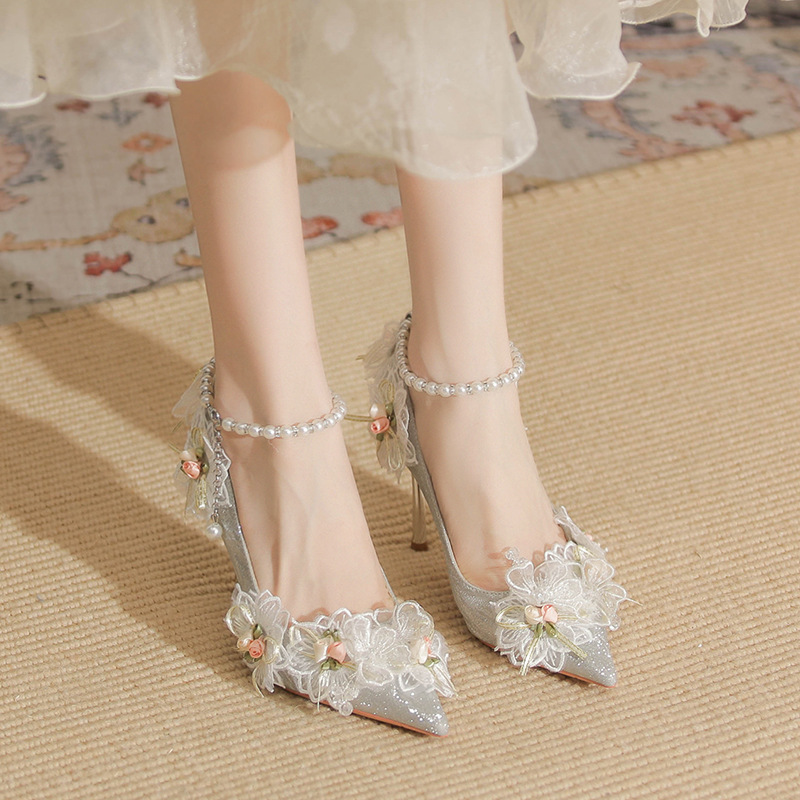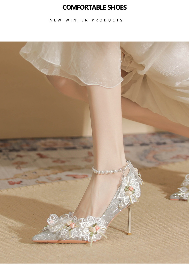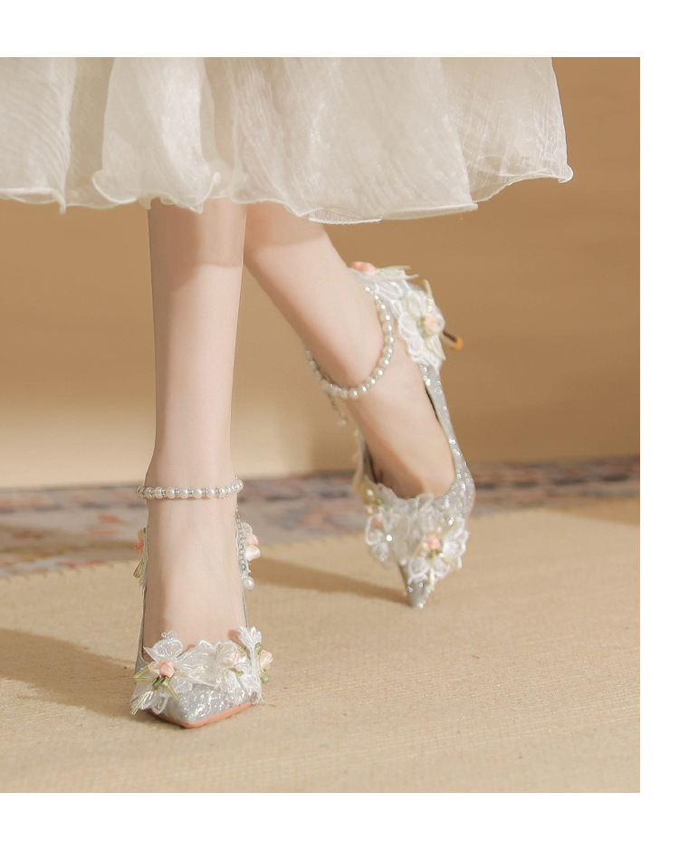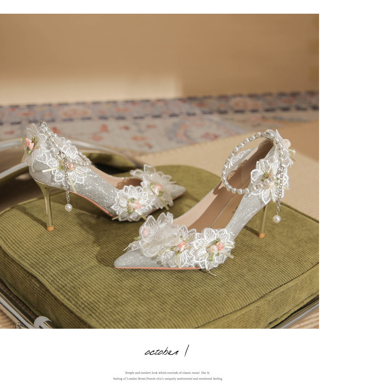 Đôi giày này có phần đế cao gót nhọn thanh thoát, điểm xuyến những bông hoa ren tinh xảo và hạt ngọc tr lấp lánh. Dây đeo chéo mảnh m ôm sát bàn chân, tạo nên vẻ đẹp dịu dàng. Chất liệu da mềm mại mang lại cảm giác dễ chịu khi mang. Bạn có thể kết hợp cùng váy dự tiệc hoặc trang phục đi làm để nổi bật phong cách nữ tính và duyên dáng. | Tên sản phẩm: Giày Cao Gót Nữ Chất Liệu Ren Gót Nhọn Họa Tiết Hoa Dùng Trong Lễ Cưới - Giày Dép Nữ | Mã sản phẩm: A1197 - Giá: 1.050.000đ | Mã nhà sản xuất: HUDS-G03Hình ảnh sản phẩm
