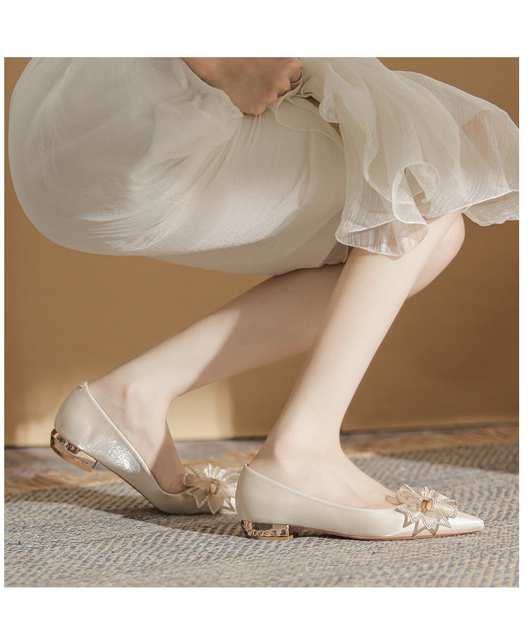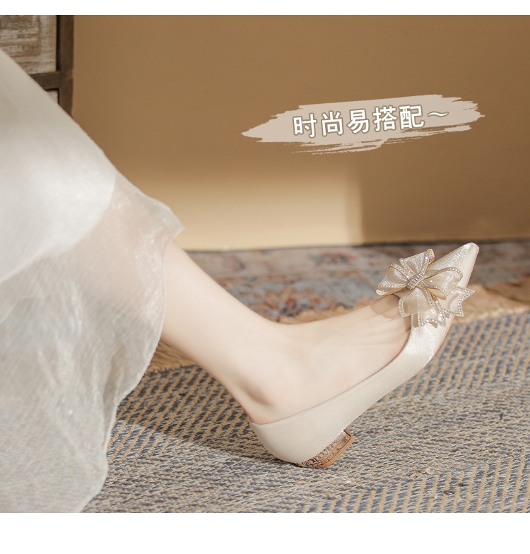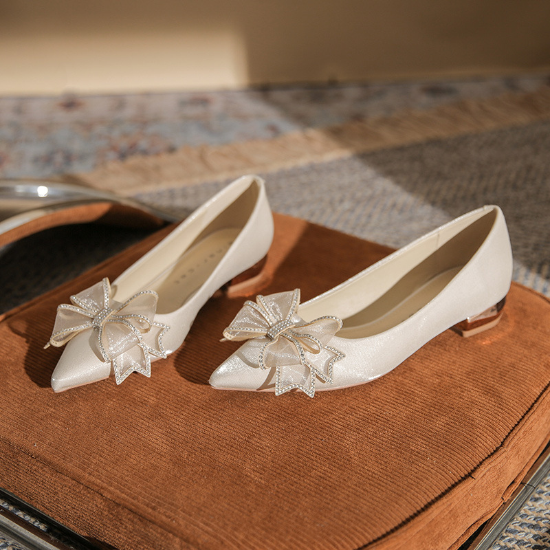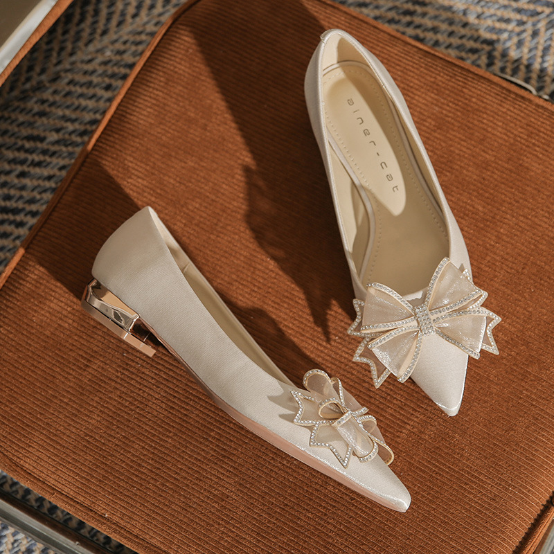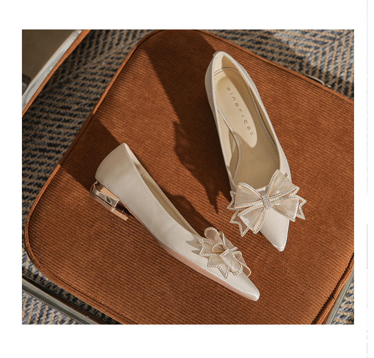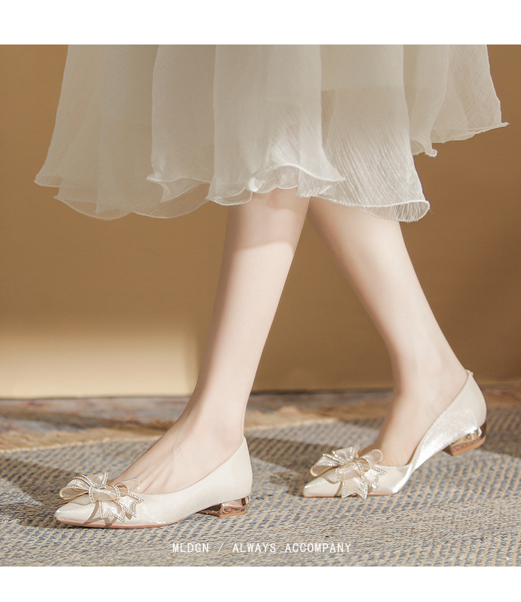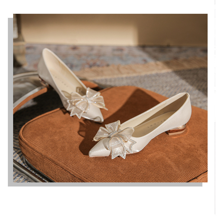 Đôi giày này có kiểu dáng mũi nhọn thanh lịch và phần gót thấp vững chãi, giúp bạn di chuyển thoải mái cả ngày. Điểm nhấn là nơ trang trí kết hợp cùng các viên đá lấp lánh tinh tế, tạo nên vẻ đẹp dịu dàng. Thiết kế theo phong cách châu Âu hiện đại, rất phù hợp để sử dụng trong các dịp quan trọng. Bạn chỉ cần xỏ chân vào và điều chỉnh dây nơ cho vừa vặn là có thể sử dụng ngay. | Tên sản phẩm: Giày Cao Gót Nữ Thắt Nơ Bướm Gắn Đá Mũi Nhọn Gót Vuông Dùng Trong Lễ Cưới - Giày Dép Nữ | Mã sản phẩm: A1204 - Giá: 830.000đ | Mã nhà sản xuất: HUDS-G03Hình ảnh sản phẩm