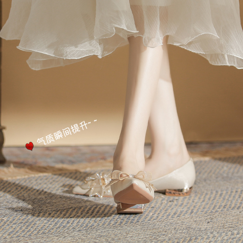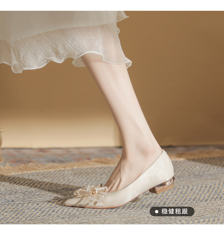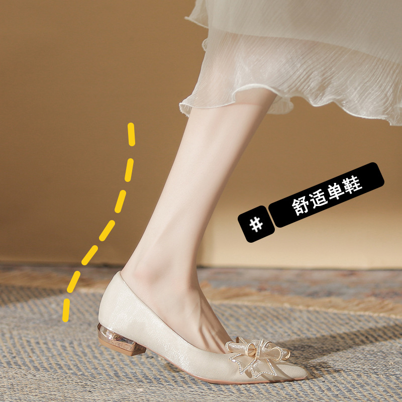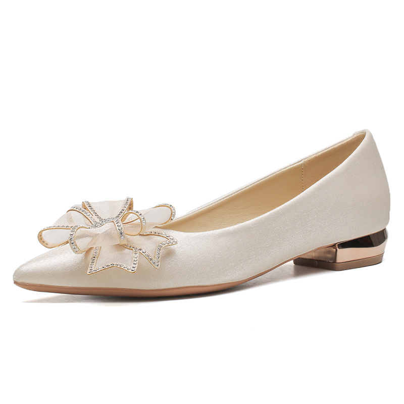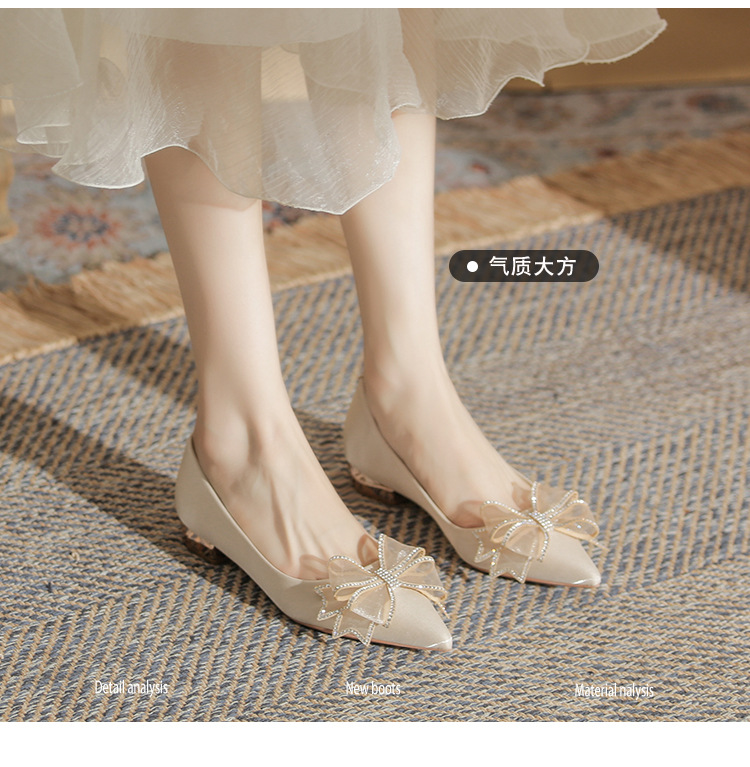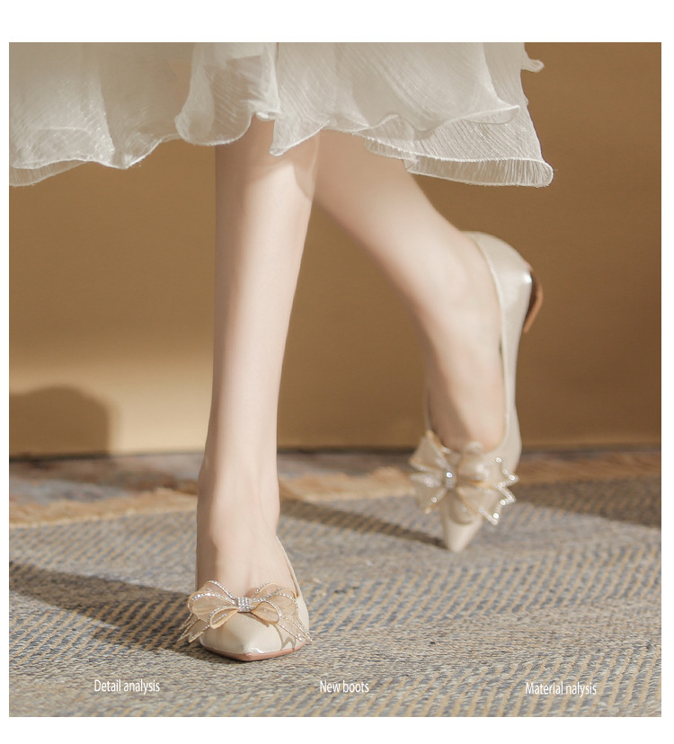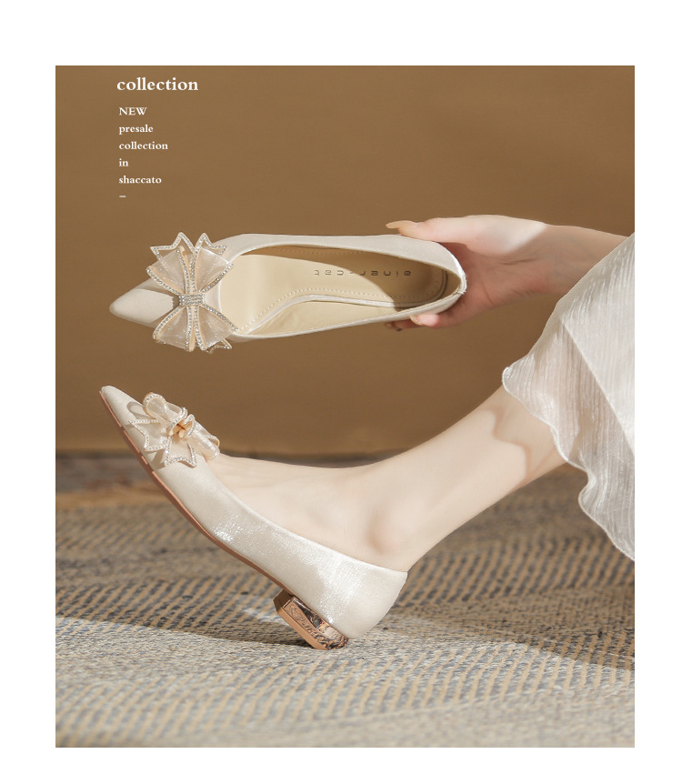 Đôi giày này có kiểu dáng mũi nhọn thanh lịch và phần gót thấp vững chãi, giúp bạn di chuyển thoải mái cả ngày. Điểm nhấn là nơ trang trí kết hợp cùng các viên đá lấp lánh tinh tế, tạo nên vẻ đẹp dịu dàng. Thiết kế theo phong cách châu Âu hiện đại, rất phù hợp để sử dụng trong các dịp quan trọng. Bạn chỉ cần xỏ chân vào và điều chỉnh dây nơ cho vừa vặn là có thể sử dụng ngay. | Tên sản phẩm: Giày Cao Gót Nữ Thắt Nơ Bướm Gắn Đá Mũi Nhọn Gót Vuông Dùng Trong Lễ Cưới - Giày Dép Nữ | Mã sản phẩm: A1204 - Giá: 830.000đ | Mã nhà sản xuất: HUDS-G03Hình ảnh sản phẩm