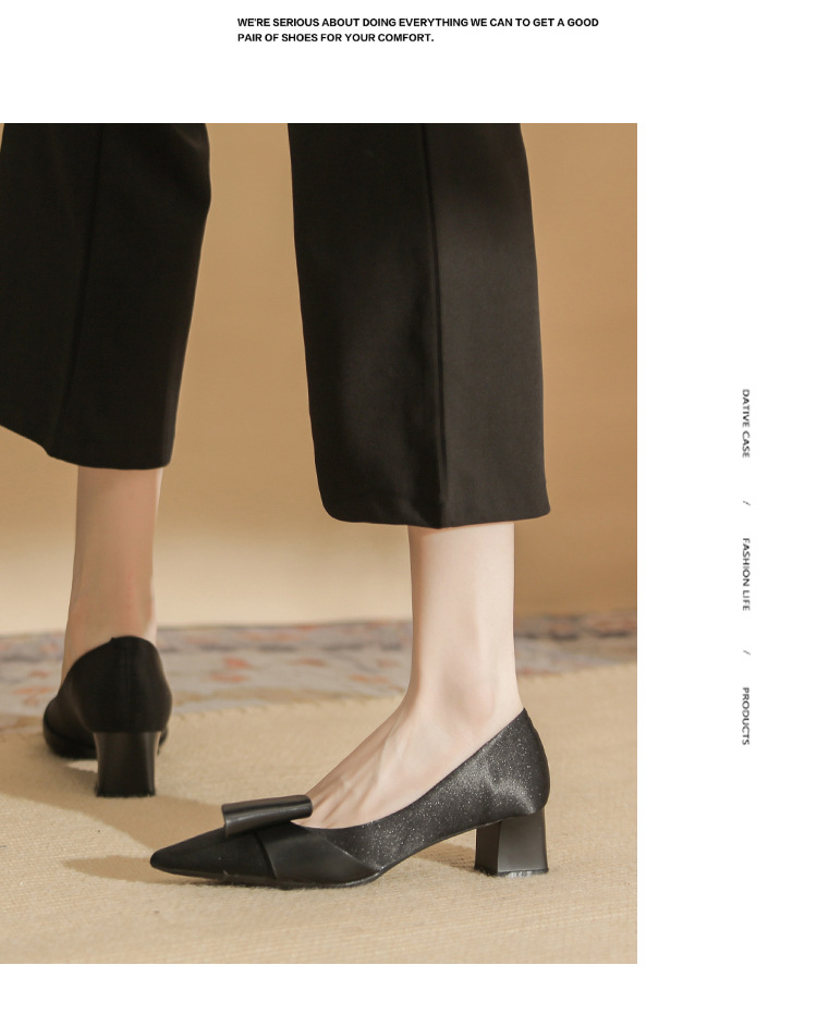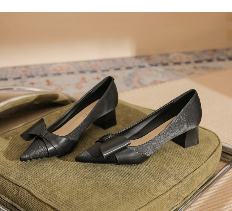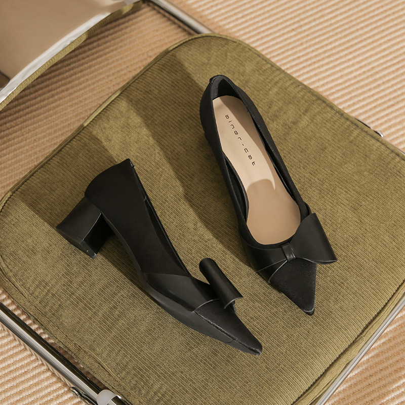 Giày cao gót nữ thiết kế theo kiểu Pháp, điểm nhấn là nơ thắt duyên dáng ở mu bàn chân. Sản phẩm có mũi nhọn và phần gót thấp vững chãi, giúp tôn dáng người đi một cách tinh tế. Chất liệu da mềm mại ôm sát chân, mang lại cảm giác dễ chịu khi sử dụng. Bạn có thể phối cùng nhiều loại trang phục như quần âu, váy công sở hay đi dạo phố. Dáng giày thanh lịch, phù hợp cho nhiều dịp trong mùa thu. | Tên sản phẩm: Giày Cao Gót Nữ Thắt Nơ Bướm Mũi Nhọn Gót Vuông Hàng Mùa Xuân Thu Đông - Giày Dép Nữ | Mã sản phẩm: A1214 - Giá: 870.000đ | Mã nhà sản xuất: HUDS-G03Hình ảnh sản phẩm
