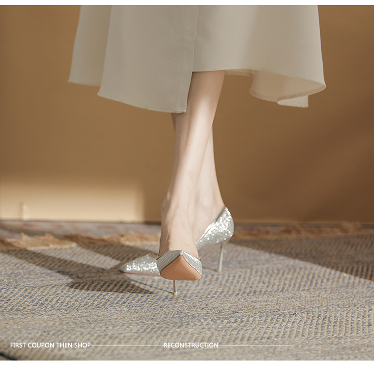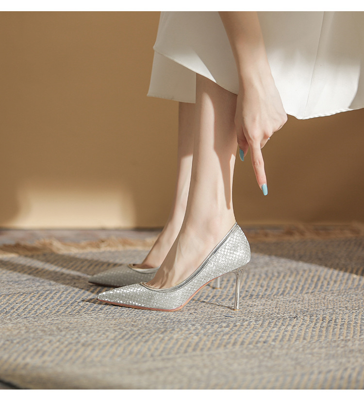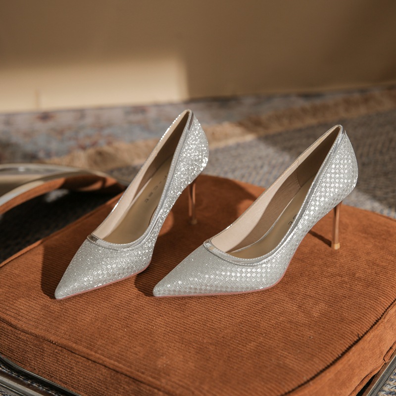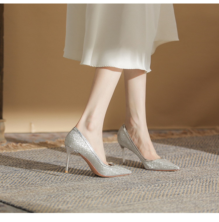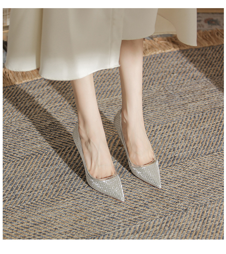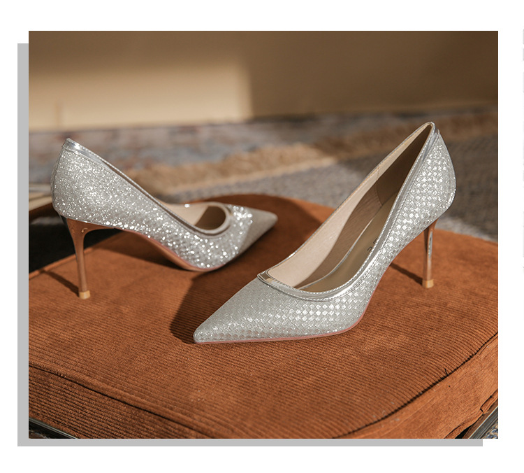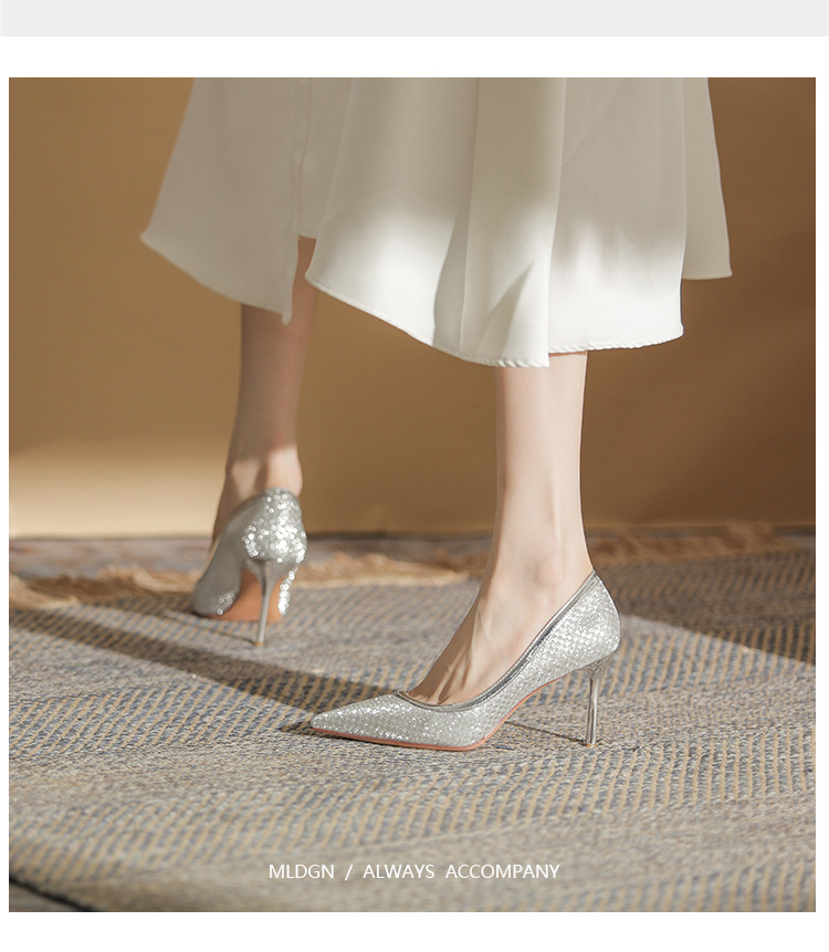 Giày cao gót nữ với mũi nhọn thanh lịch, được phủ lớp bóng lấp lánh tinh tế. Sản phẩm có thiết kế gót nhọn vững chãi, tôn lên vẻ nữ tính và hiện đại. Kiểu dáng phù hợp để đi trong nhiều dịp, từ các buổi gặp mặt thường ngày đến những sự kiện đặc biệt. Bạn có thể dễ dàng phối cùng đầm hoặc quần tây để tạo điểm nhấn. Chất liệu mềm mại ôm chân, mang lại sự dễ chịu khi sử dụng. | Tên sản phẩm: Giày Cao Gót Nữ Mũi Nhọn Gót Nhọn Hàng Mùa Hè Dùng Trong Lễ Cưới - Giày Dép Nữ | Mã sản phẩm: A1221 - Giá: 890.000đ | Mã nhà sản xuất: HUDS-G03Hình ảnh sản phẩm