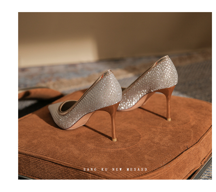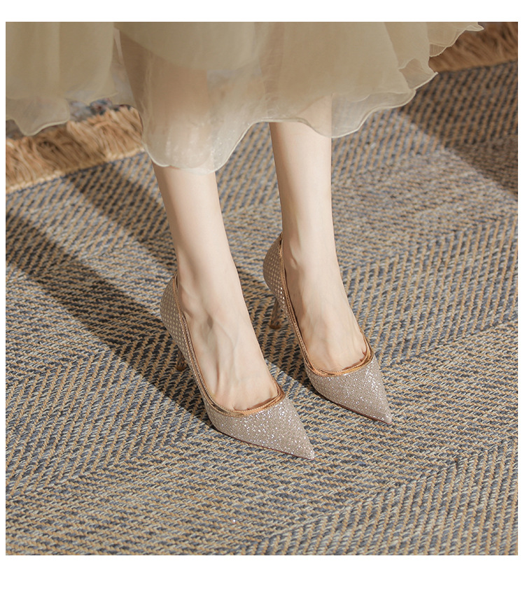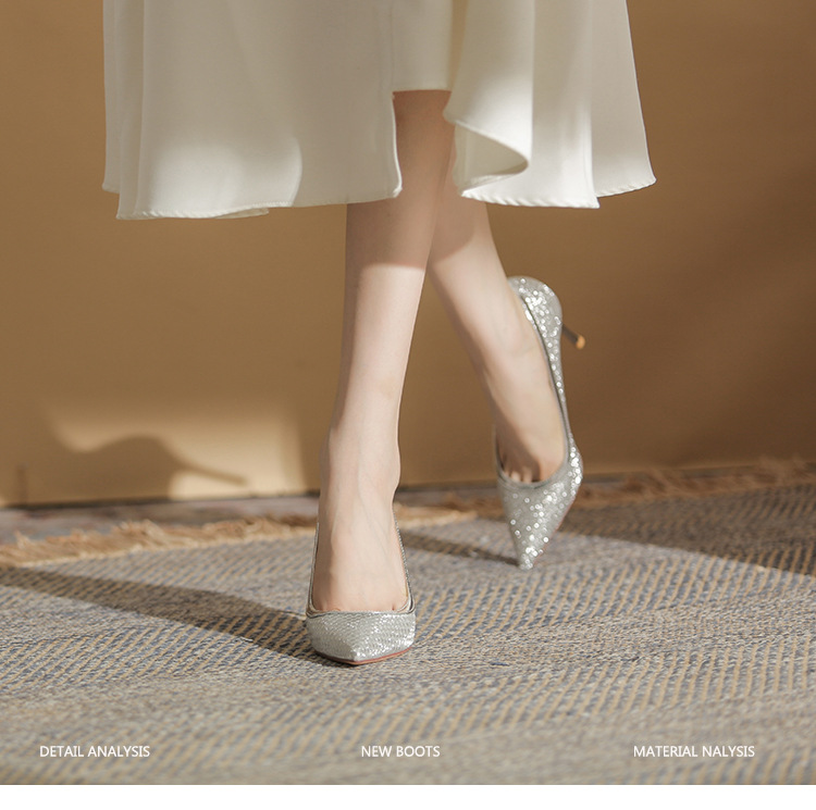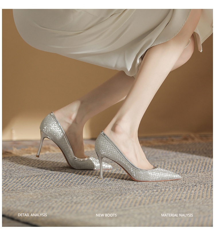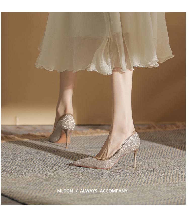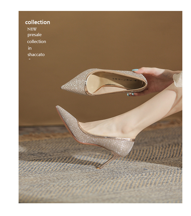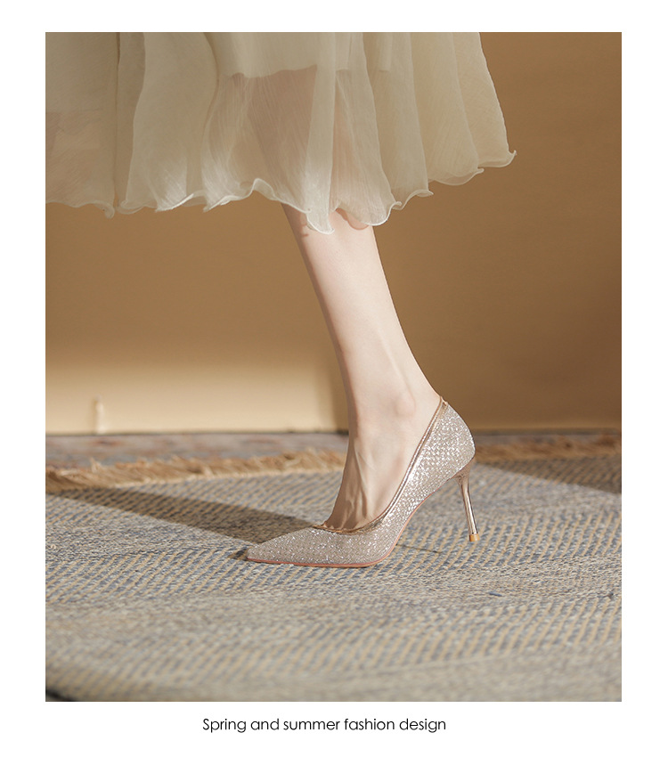 Giày cao gót nữ với mũi nhọn thanh lịch, được phủ lớp bóng lấp lánh tinh tế. Sản phẩm có thiết kế gót nhọn vững chãi, tôn lên vẻ nữ tính và hiện đại. Kiểu dáng phù hợp để đi trong nhiều dịp, từ các buổi gặp mặt thường ngày đến những sự kiện đặc biệt. Bạn có thể dễ dàng phối cùng đầm hoặc quần tây để tạo điểm nhấn. Chất liệu mềm mại ôm chân, mang lại sự dễ chịu khi sử dụng. | Tên sản phẩm: Giày Cao Gót Nữ Mũi Nhọn Gót Nhọn Hàng Mùa Hè Dùng Trong Lễ Cưới - Giày Dép Nữ | Mã sản phẩm: A1221 - Giá: 890.000đ | Mã nhà sản xuất: HUDS-G03Hình ảnh sản phẩm