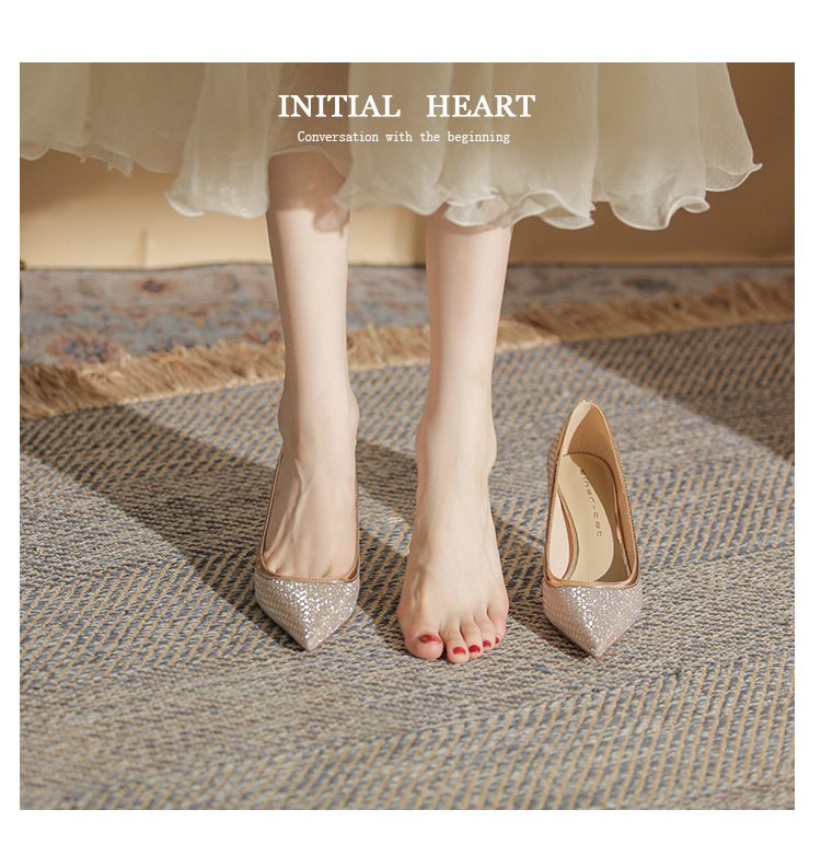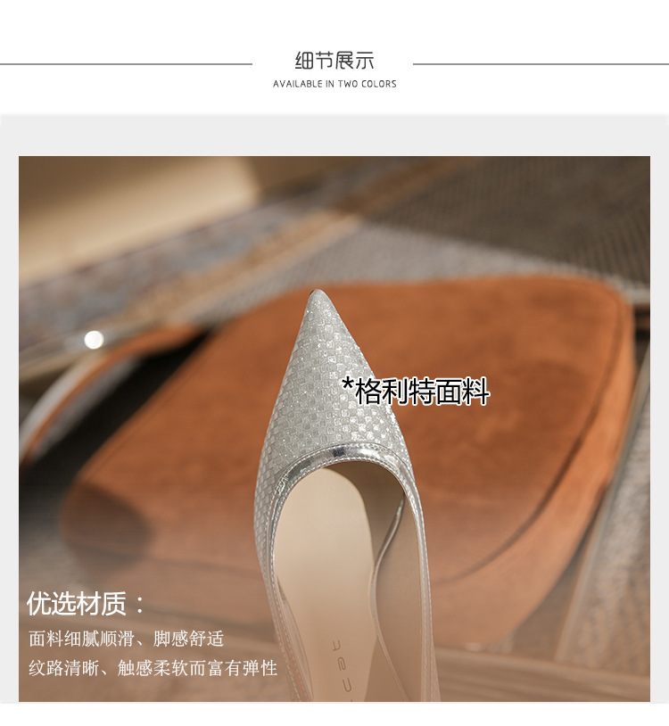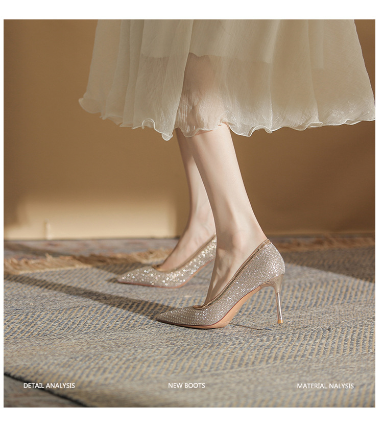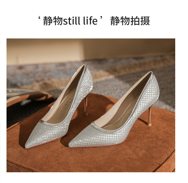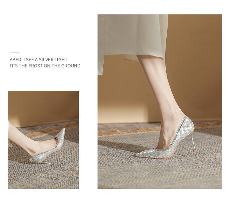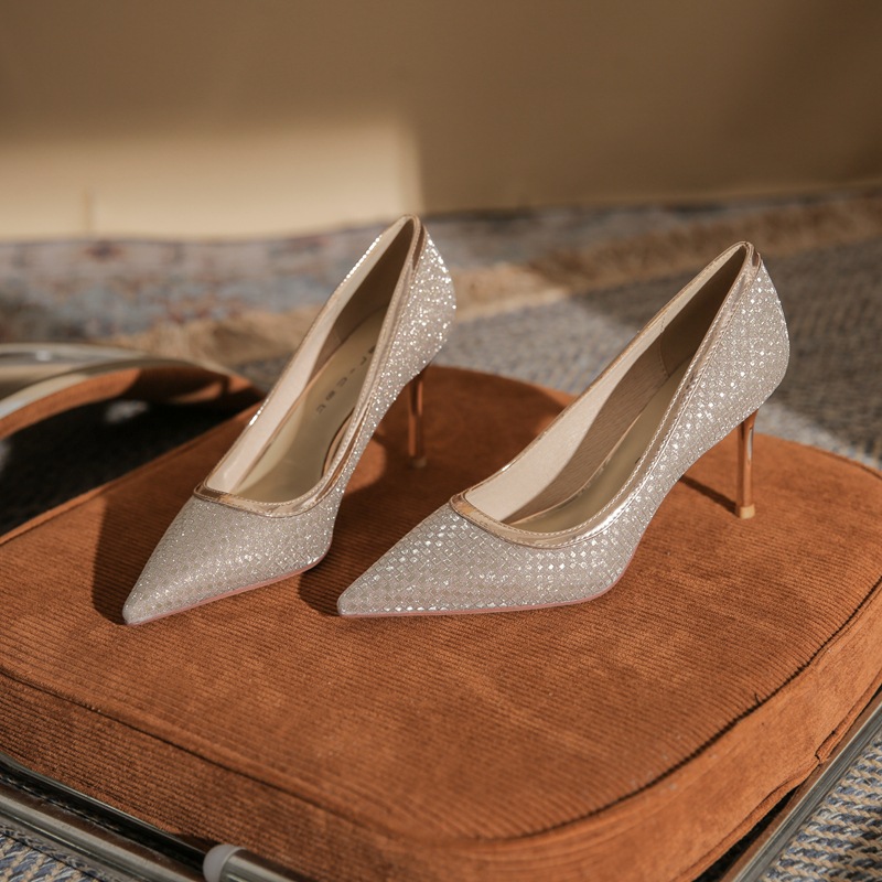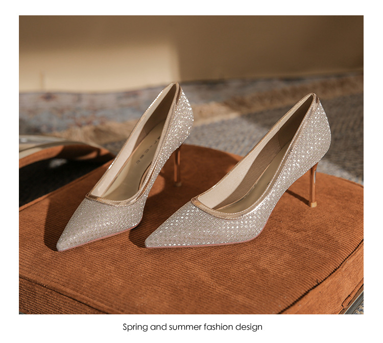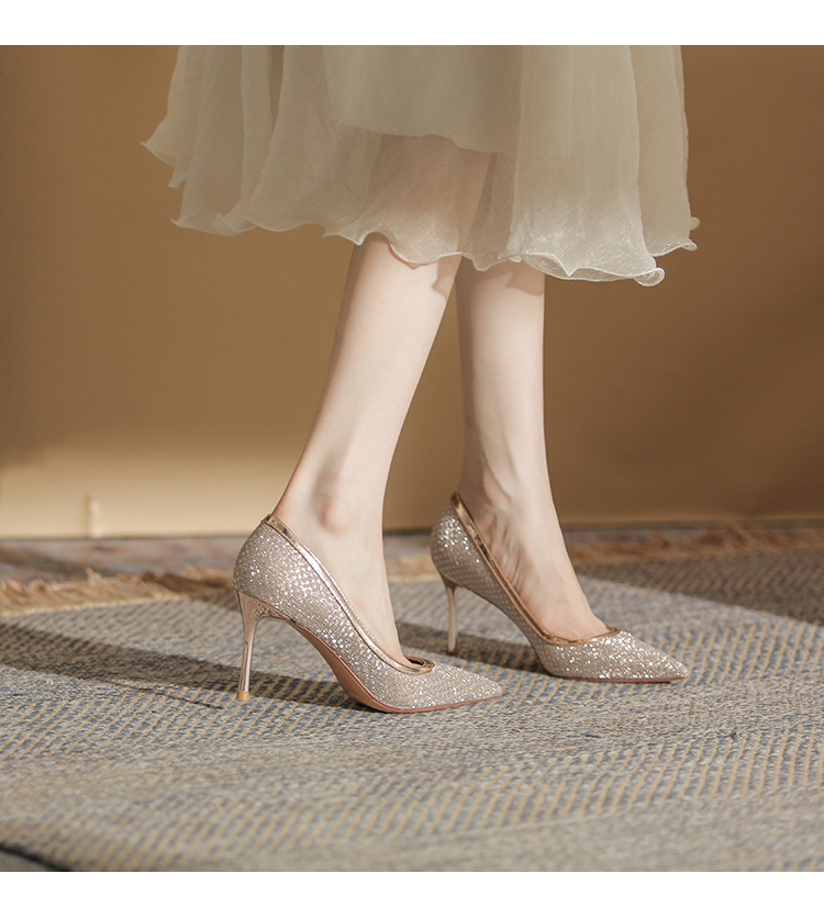 Giày cao gót nữ với mũi nhọn thanh lịch, được phủ lớp bóng lấp lánh tinh tế. Sản phẩm có thiết kế gót nhọn vững chãi, tôn lên vẻ nữ tính và hiện đại. Kiểu dáng phù hợp để đi trong nhiều dịp, từ các buổi gặp mặt thường ngày đến những sự kiện đặc biệt. Bạn có thể dễ dàng phối cùng đầm hoặc quần tây để tạo điểm nhấn. Chất liệu mềm mại ôm chân, mang lại sự dễ chịu khi sử dụng. | Tên sản phẩm: Giày Cao Gót Nữ Mũi Nhọn Gót Nhọn Hàng Mùa Hè Dùng Trong Lễ Cưới - Giày Dép Nữ | Mã sản phẩm: A1221 - Giá: 890.000đ | Mã nhà sản xuất: HUDS-G03Hình ảnh sản phẩm