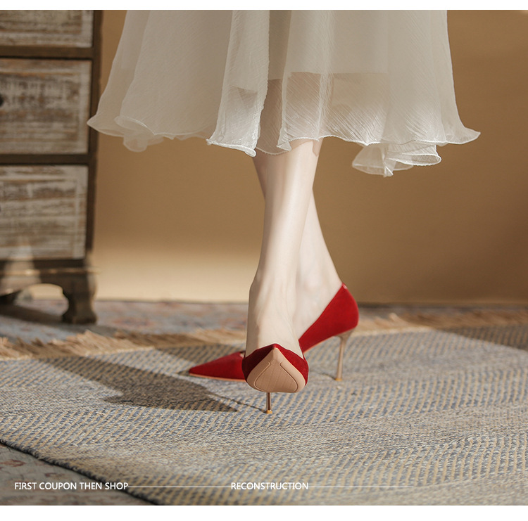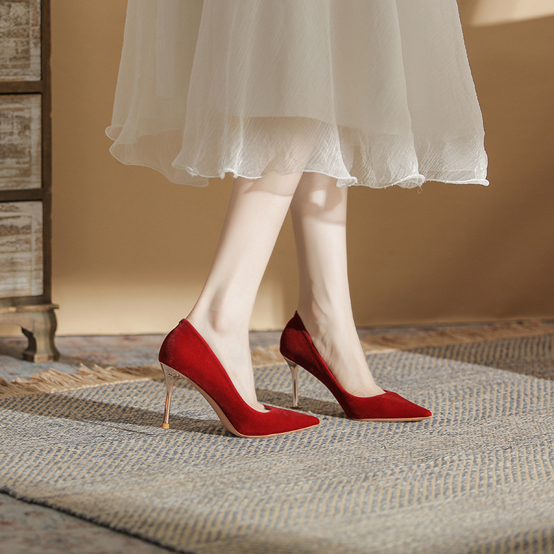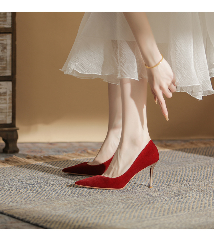 Đôi giày này có phần mũi nhọn thanh lịch và gót nhỏ tạo dáng thon gọn cho đôi chân. Kiểu dáng đơn giản, dễ phối đồ với cổ giày thấp ôm vừa vặn. Sản phẩm được thiết kế linh hoạt với hai cách mang: có thể dùng làm giày công sở hàng ngày hoặc phù hợp cho các dịp quan trọng. Bạn chỉ cần chọn cỡ vừa chân và kết hợp cùng trang phục phù hợp để tạo điểm nhấn. | Tên sản phẩm: Giày Cao Gót Nữ Mũi Nhọn Gót Nhọn Dùng Trong Lễ Cưới - Giày Dép Nữ | Mã sản phẩm: A1229 - Giá: 750.000đ | Mã nhà sản xuất: HUDS-G02Hình ảnh sản phẩm
