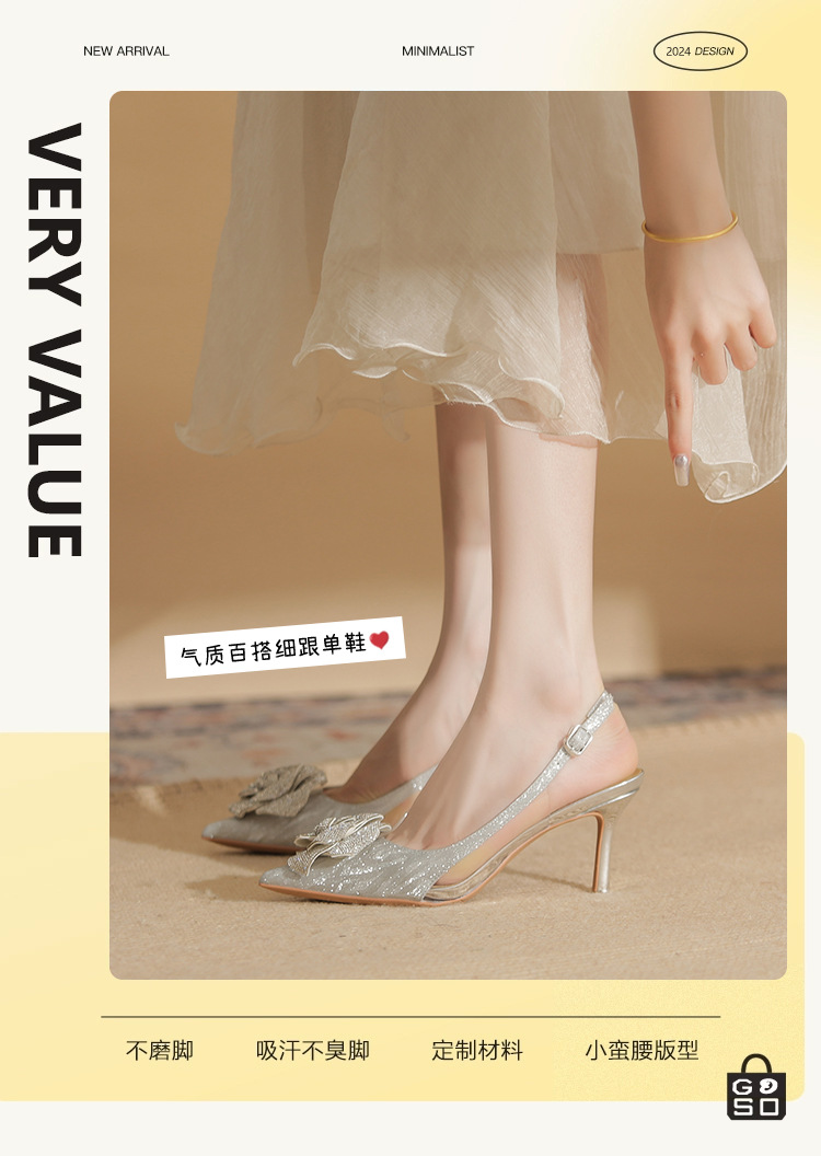 Đôi giày cao gót nữ với thiết kế mũi nhọn và phần sau trống, tạo nên vẻ thanh thoát và gợi cảm. Gót nhọn mang đến dáng đứng tự tin. Kiểu dáng này phù hợp cho nhiều dịp, từ đi làm đến dự tiệc. Phối cùng trang phục dạ hội hoặc váy liền để tôn lên nét duyên dáng. Sử dụng bằng cách xỏ chân vào và điều chỉnh qu gót nếu có cho vừa vặn. | Tên sản phẩm: Giày Cao Gót Nữ Mũi Nhọn Gót Nhọn Dùng Trong Lễ Cưới - Giày Dép Nữ | Mã sản phẩm: A1250 - Giá: 1.020.000đ | Mã nhà sản xuất: HUDS-G03Hình ảnh sản phẩm