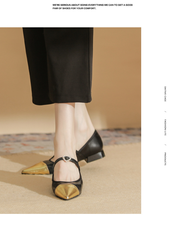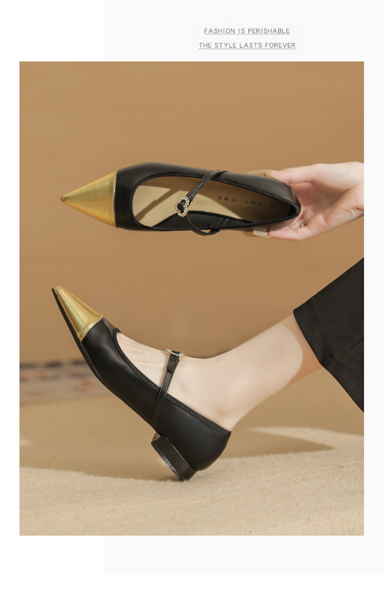 Giày bệt nữ thiết kế gót thấp vững chãi, phù hợp mang nhiều giờ. Mũi giày nhọn thanh lịch, phối cùng dây ngang cổ điển tạo điểm nhấn duyên dáng. Kiểu dáng kết hợp nét đẹp tinh tế và hiện đại, dễ dàng phối cùng nhiều loại trang phục như quần âu hay váy liền. Sản phẩm sử dụng chất liệu da mềm mại, mang lại cảm giác dễ chịu. Chỉ cần xỏ dây và cài khóa là đã có ngay đôi giày hoàn hảo cho những buổi gặp mặt. | Tên sản phẩm: Giày Cao Gót Nữ Mũi Nhọn Gót Vuông Hàng Mùa Xuân Thu Đông - Giày Dép Nữ | Mã sản phẩm: A1279 - Giá: 800.000đ | Mã nhà sản xuất: HUDS-G02Hình ảnh sản phẩm
