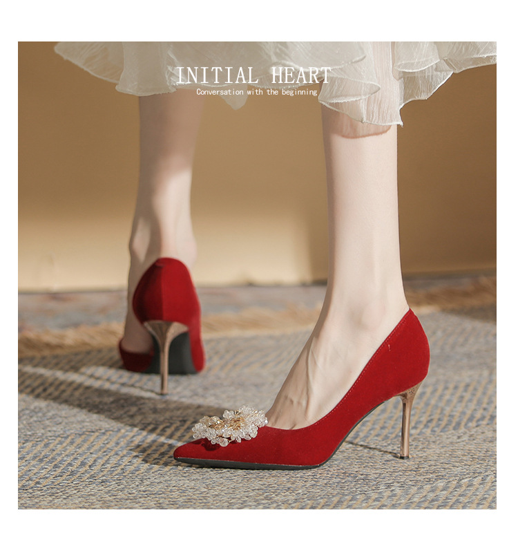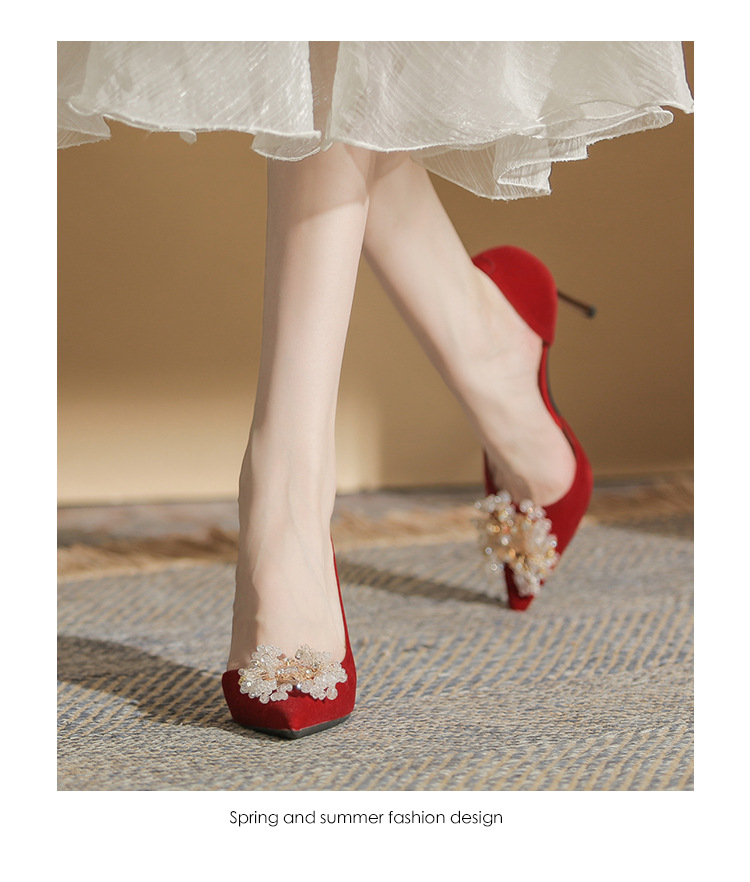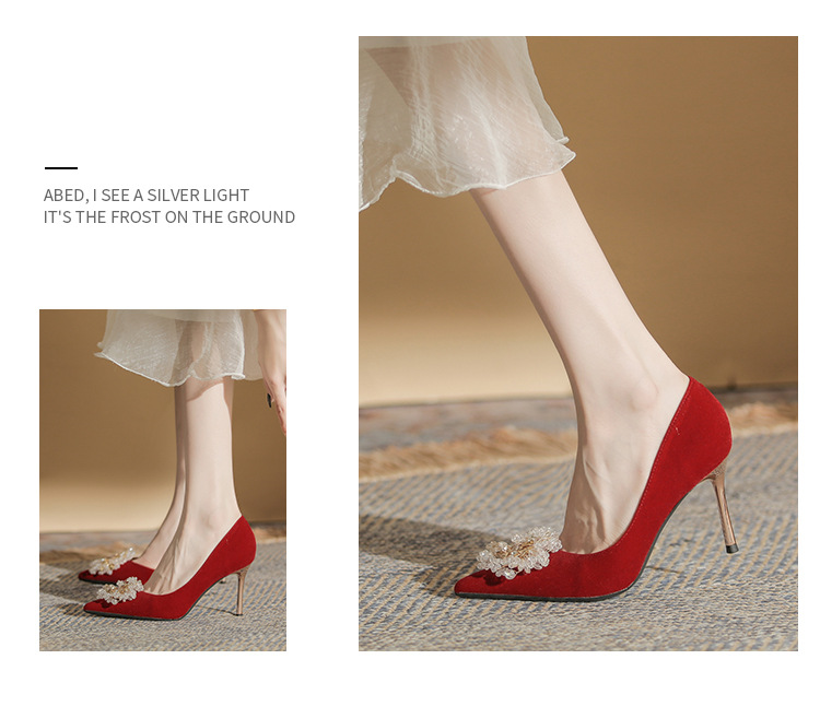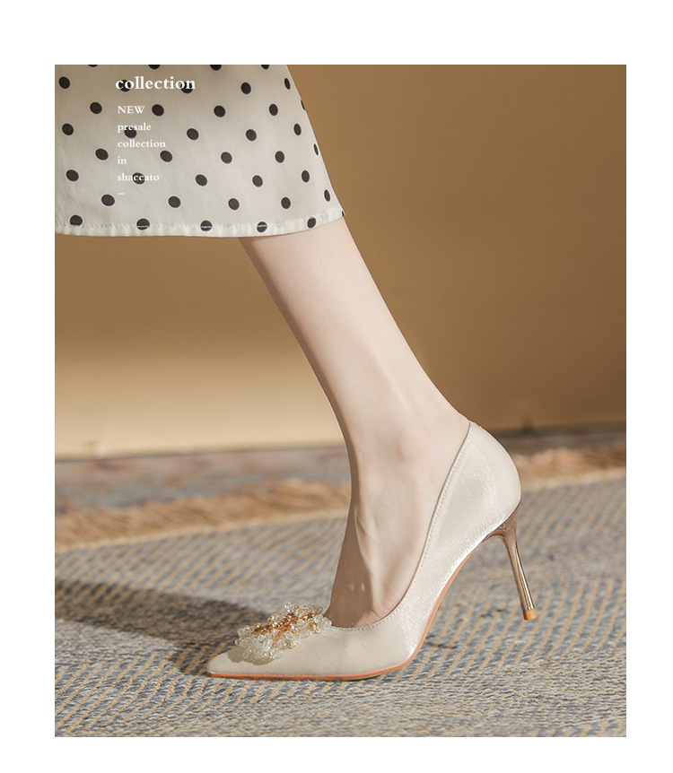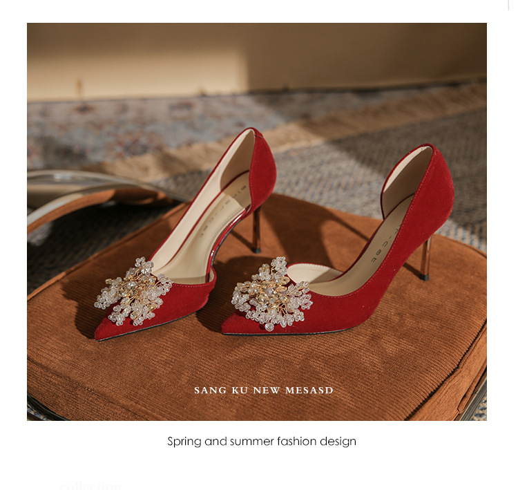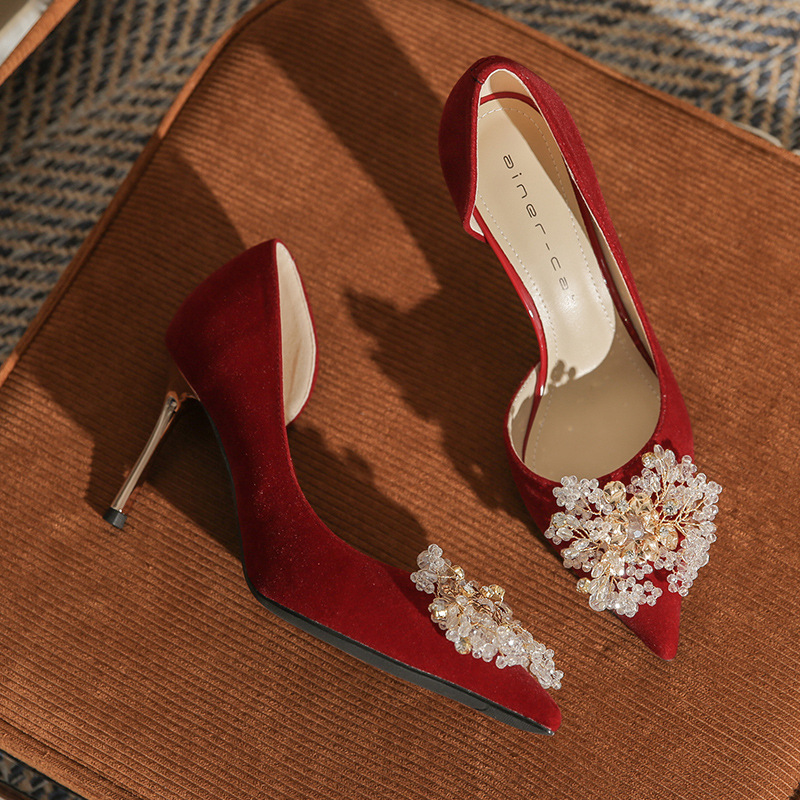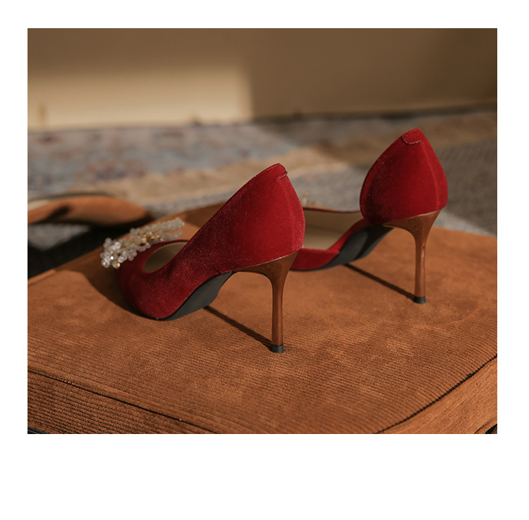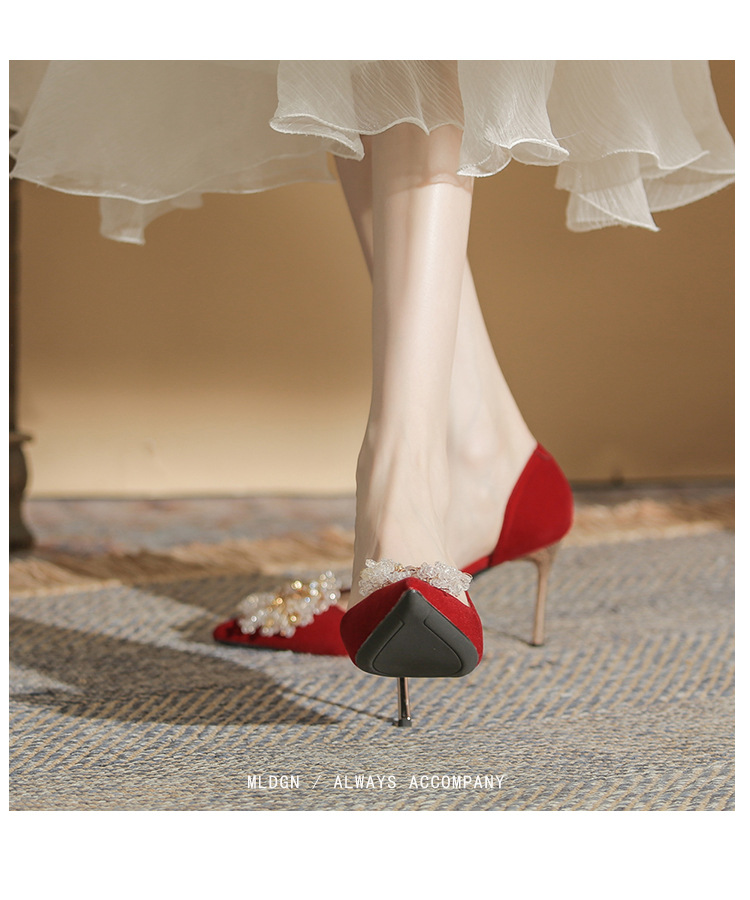 Đôi giày này có phần gót thanh mảnh và mũi nhọn, tạo dáng thanh thoát. Điểm đặc biệt là phần thiết kế hở hai bên, mang lại vẻ quyến rũ kín đáo. Sản phẩm rất linh hoạt, có thể sử dụng làm giày cưới trong ngày trọng đại hoặc phối cùng các trang phục dự tiệc khác. Bạn chỉ cần chọn cỡ vừa vặn với chân để di chuyển thoải mái và tự tin suốt cả ngày. | Tên sản phẩm: Giày Cao Gót Nữ Mũi Nhọn Gót Nhọn Dùng Trong Lễ Cưới - Giày Dép Nữ | Mã sản phẩm: A1314 - Giá: 1.000.000đ | Mã nhà sản xuất: HUDS-G03Hình ảnh sản phẩm