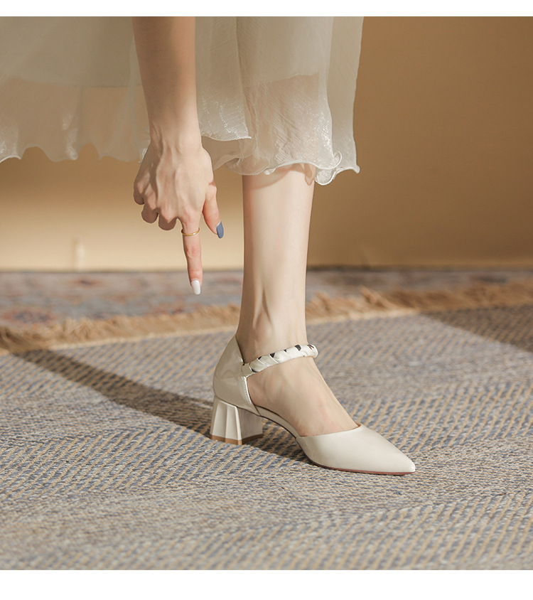 Đôi giày này có phần mũi nhọn và qu ngang trang trí viên ngọc tr, tạo điểm nhấn thanh lịch. Phần gót chắc chắn giúp bạn di chuyển thoải mái cả ngày. Kiểu dáng hở mũi và phần giữa chân thông thoáng, phù hợp mang trong mùa hè. Bạn có thể kết hợp giày cùng váy hoặc quần dài để tạo vẻ ngoài ưa nhìn. Chất liệu da mềm mại ôm chân nhẹ nhàng. | Tên sản phẩm: Giày Cao Gót Nữ Mũi Nhọn Gót Vuông Hàng Mùa Hè - Giày Dép Nữ | Mã sản phẩm: A1326 - Giá: 830.000đ | Mã nhà sản xuất: HUDS-G03Hình ảnh sản phẩm
