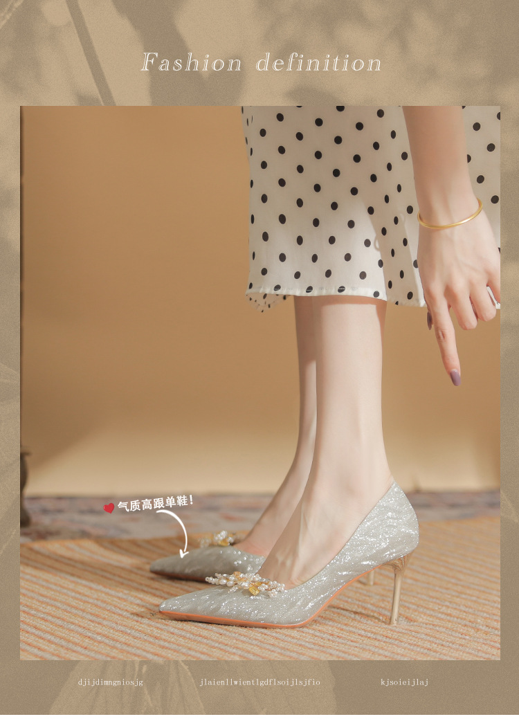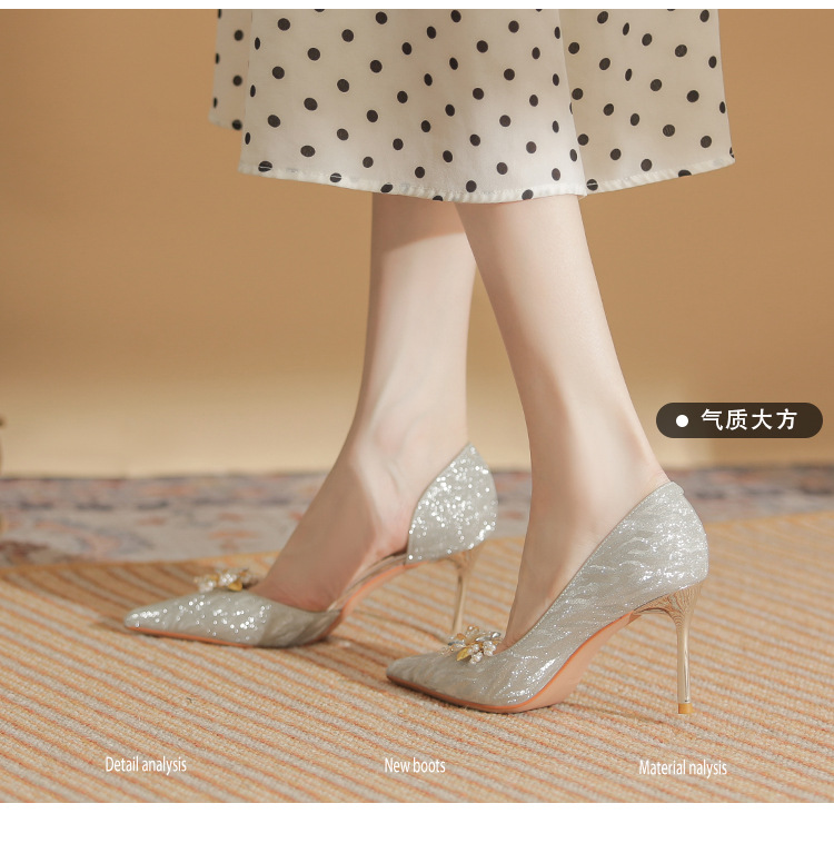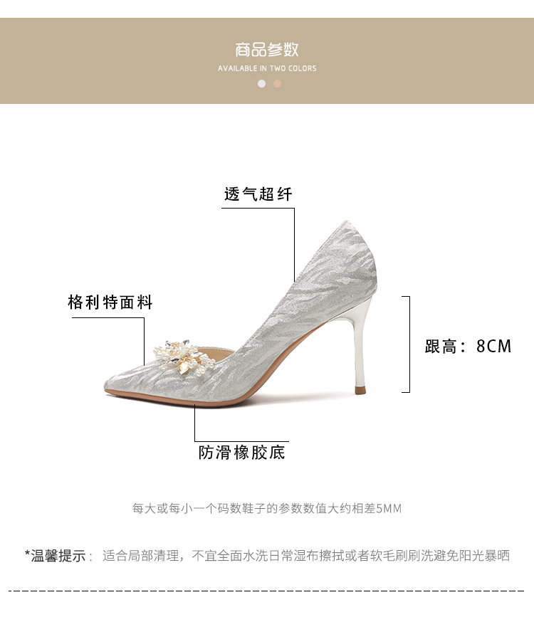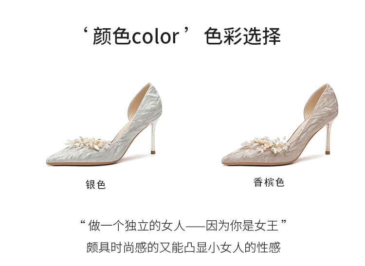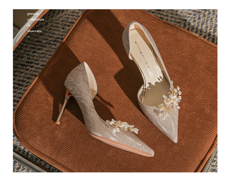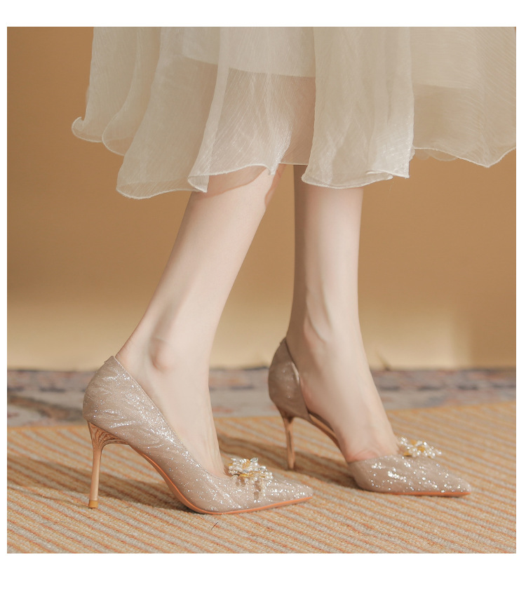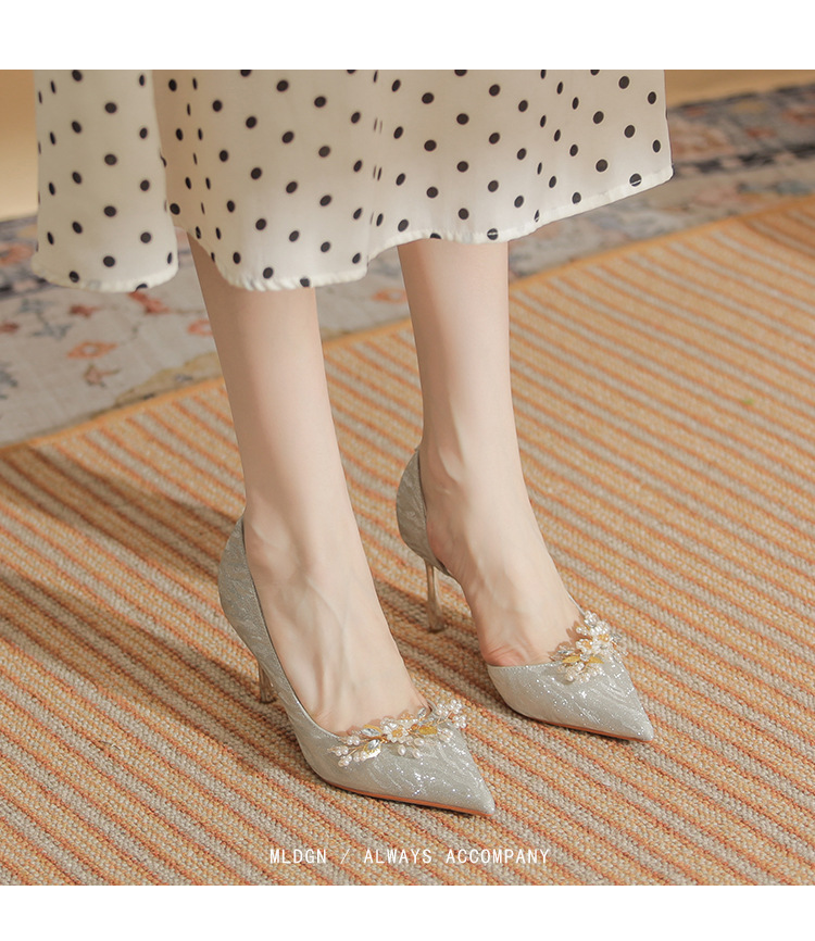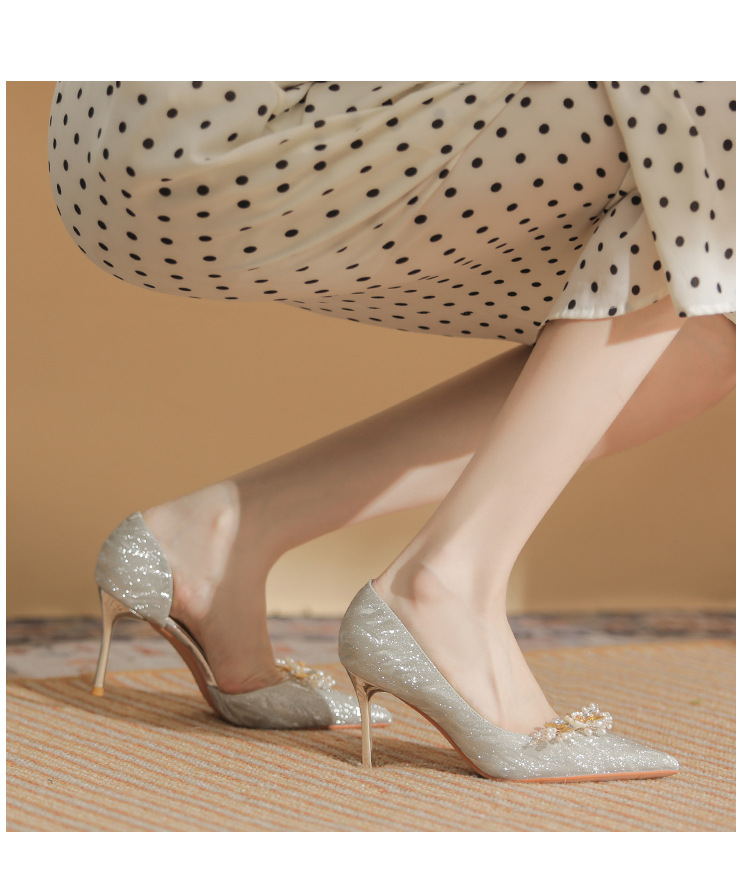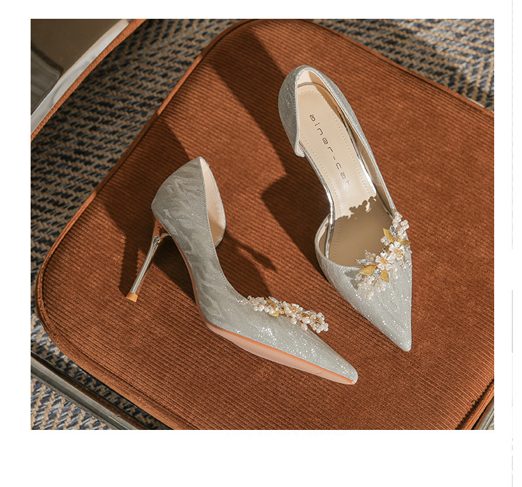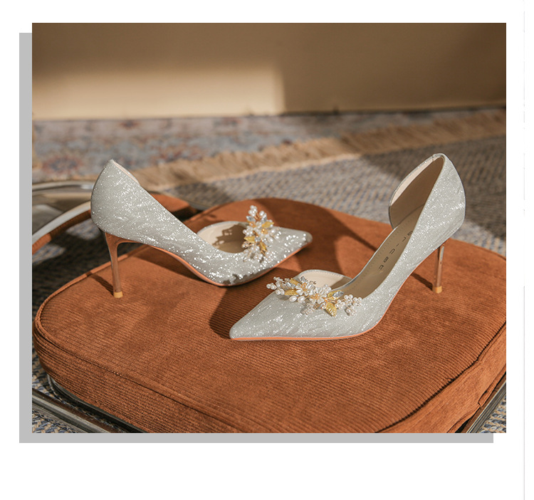 Đôi giày này có phần gót thanhai mảnh và mũi nhọn, tạo dáng thanh thoát. Kiểu dáng phối màu bạc lấp lánh cùng điểm nhấn đá tinh thể trong suốt, mang nét đẹp hiện đại. Thiết kế hở một bên chân giúp đôi chân thêm phần quyến rũ. Sản phẩm thích hợp để mang trong các buổi tiệc hoặc ngày trọng đại. Khi sử dụng, nên chọn size vừa vặn và tập đi lại nhẹ nhàng để làm quen với gót giày. | Tên sản phẩm: Giày Cao Gót Nữ Mũi Nhọn Gót Nhọn Dùng Trong Lễ Cưới - Giày Dép Nữ | Mã sản phẩm: A1351 - Giá: 980.000đ | Mã nhà sản xuất: HUDS-G03Hình ảnh sản phẩm