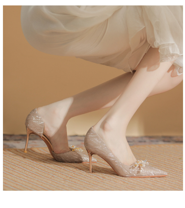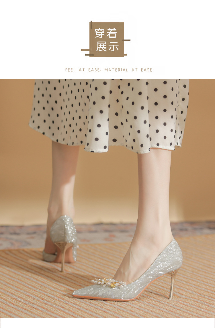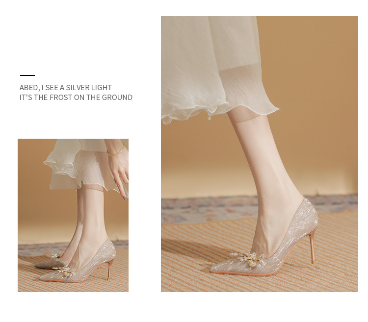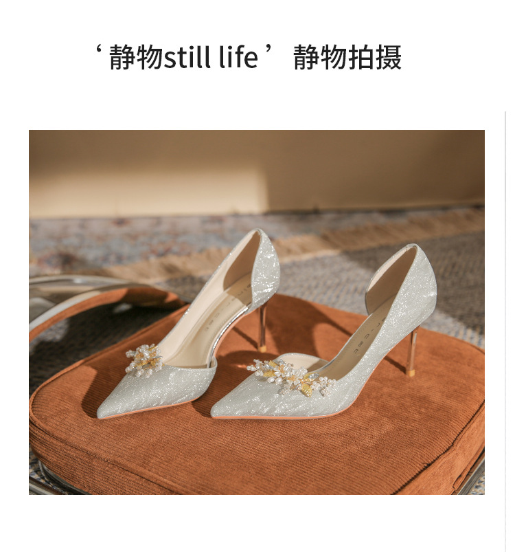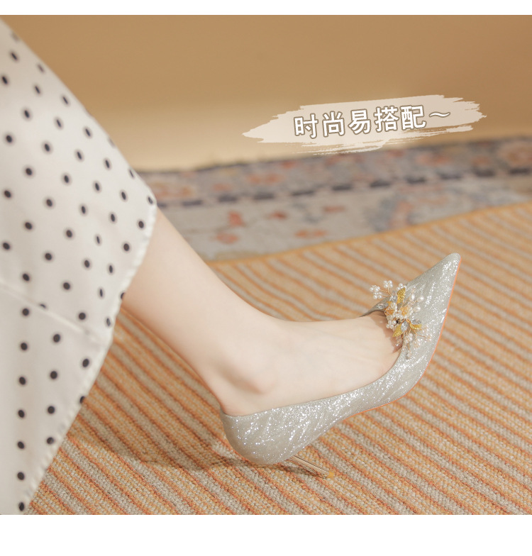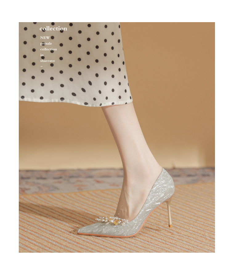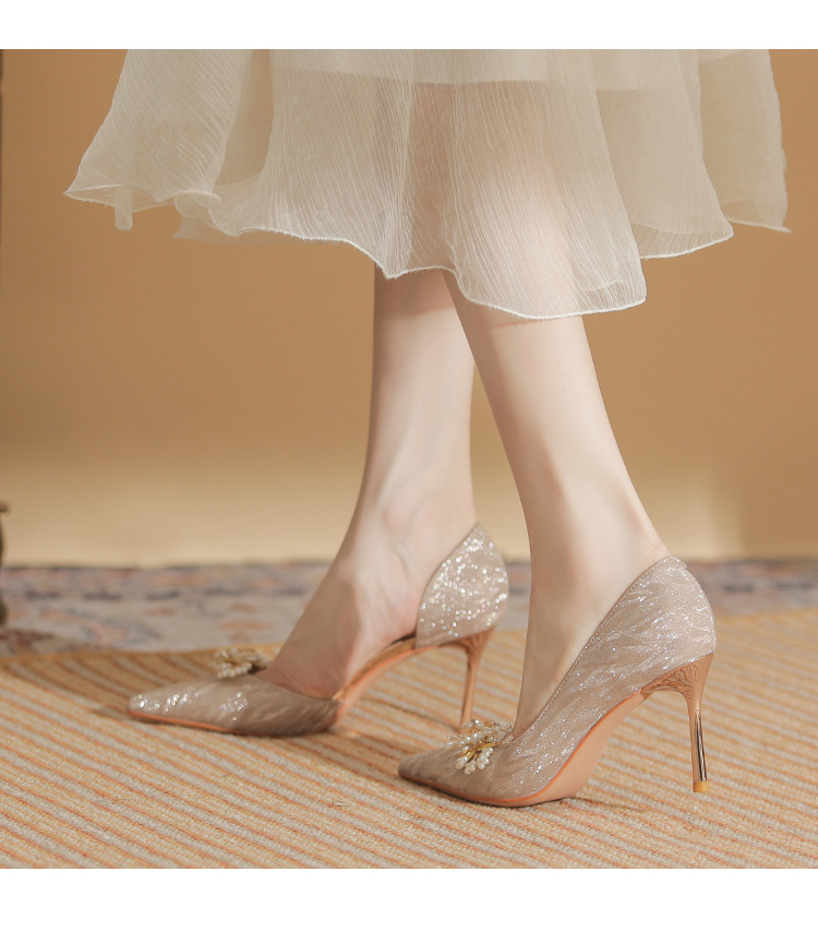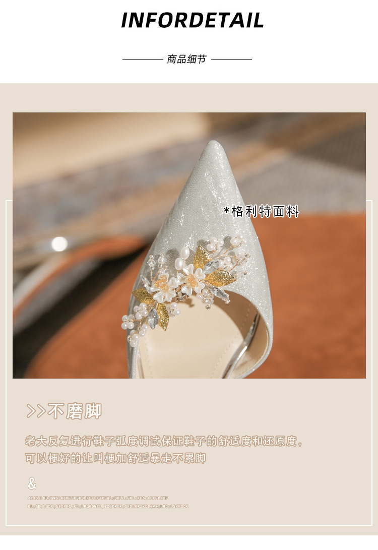Đôi giày này có phần gót thanhai mảnh và mũi nhọn, tạo dáng thanh thoát. Kiểu dáng phối màu bạc lấp lánh cùng điểm nhấn đá tinh thể trong suốt, mang nét đẹp hiện đại. Thiết kế hở một bên chân giúp đôi chân thêm phần quyến rũ. Sản phẩm thích hợp để mang trong các buổi tiệc hoặc ngày trọng đại. Khi sử dụng, nên chọn size vừa vặn và tập đi lại nhẹ nhàng để làm quen với gót giày. | Tên sản phẩm: Giày Cao Gót Nữ Mũi Nhọn Gót Nhọn Dùng Trong Lễ Cưới - Giày Dép Nữ | Mã sản phẩm: A1351 - Giá: 980.000đ | Mã nhà sản xuất: HUDS-G03Hình ảnh sản phẩm