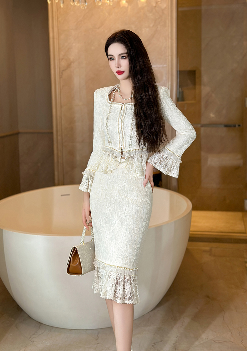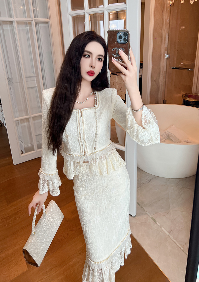 Bộ trang phục này có áo cổ ve kết hợp ren tinh tế và chân váy ôm dáng. Chất liệu vải mềm mại, tạo cảm giác dễ chịu khi mặc. Kiểu dáng phù hợp cho những dịp đi làm hoặc gặp mặt. Cách phối đồ đơn giản, bạn có thể mặc nguyên bộ hoặc tách riêng từng món để phối với các trang phục khác. Dễ dàng giặt bằng tay hoặc máy ở chế độ nhẹ để giữ form vải lâu bền. | Tên sản phẩm: Đồ Bộ Nữ Chất Liệu Ren Hàng Mùa Xuân Thu Đông - Thời Trang Nữ | Mã sản phẩm: a1394 - Giá: 1.680.000đ | Mã nhà sản xuất: CHDG-G05Hình ảnh sản phẩm