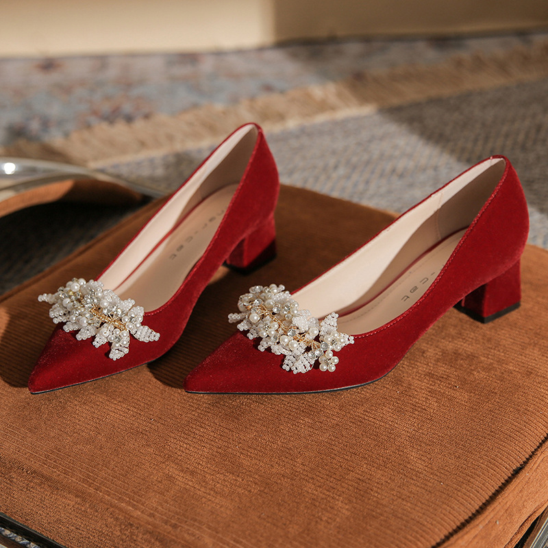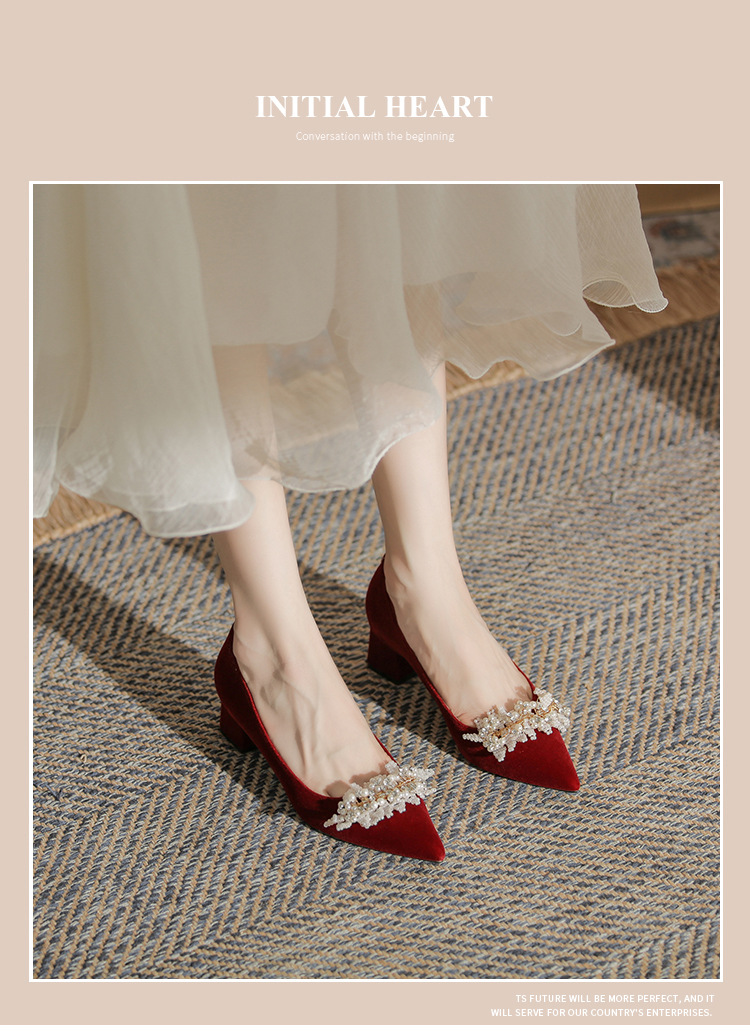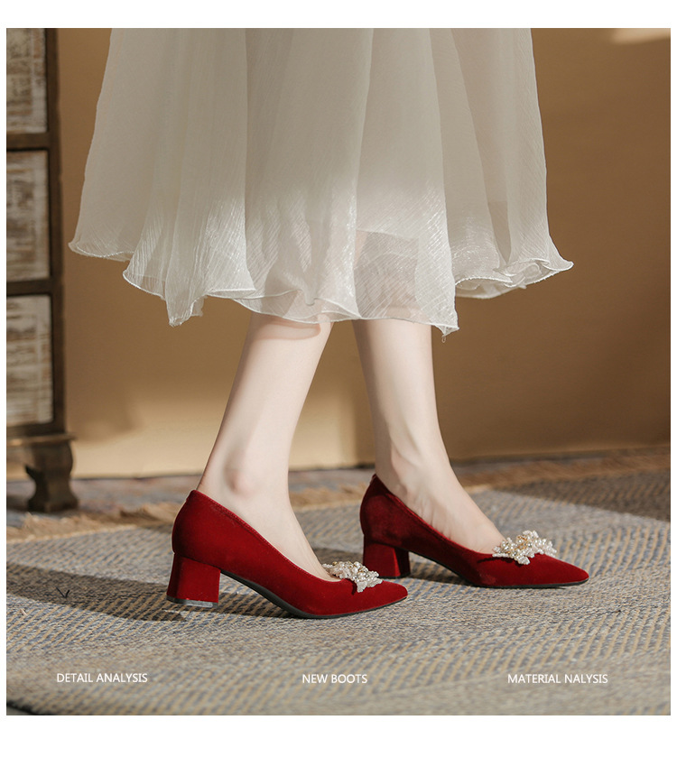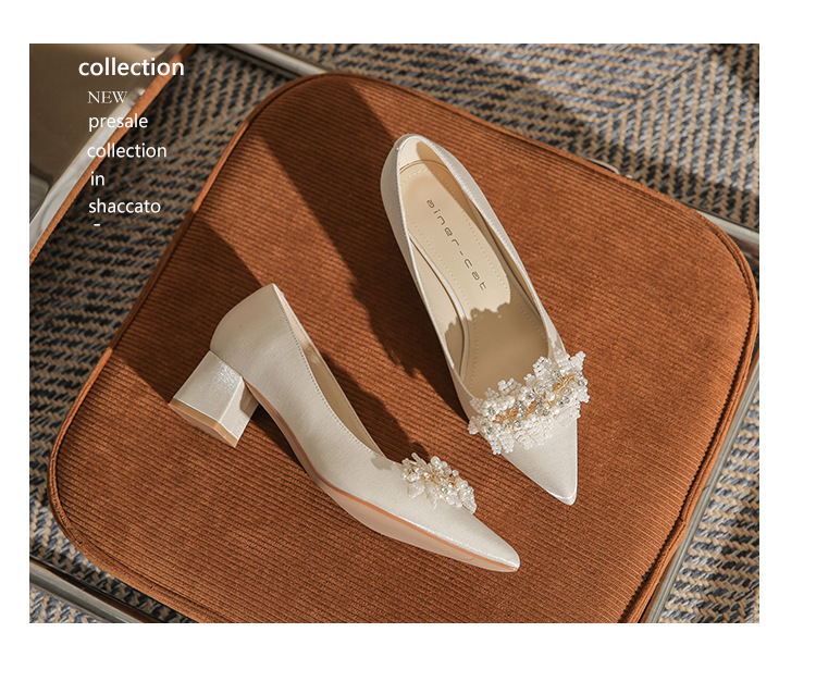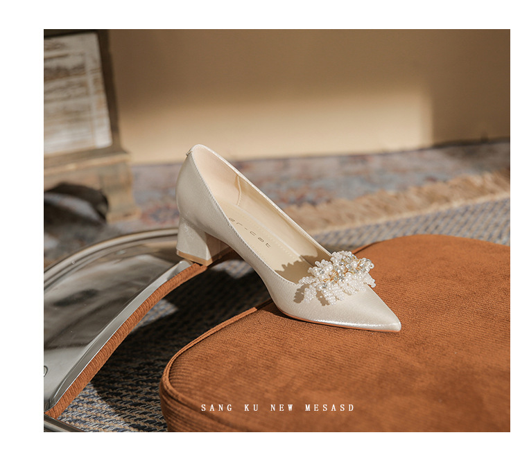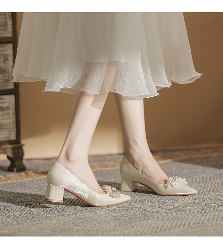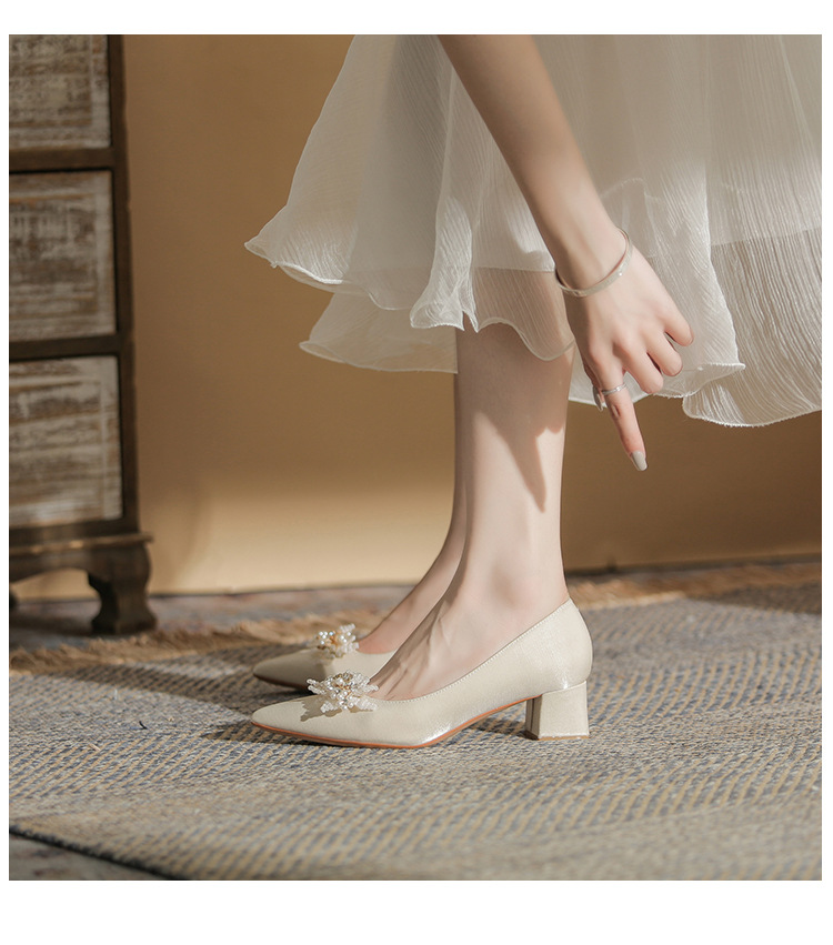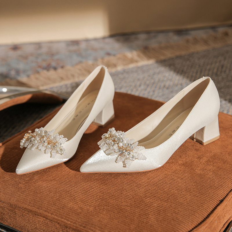 Đôi giày này có mũi nhọn và gót thấp chắc chắn, rất dễ dàng di chuyển. Điểm nhấn là những hạt ngọc tr nhỏ xinh được đính khéo léo, tạo vẻ đẹp dịu dàng. Sản phẩm có hai cách mặc linh hoạt: bạn có thể gập gót lại để thành giày hở gót mát mẻ, hoặc xỏ gót đầy đủ cho những dịp cần chỉn chu. Đây là lựa chọn phù hợp cho các cô dâu trong ngày trọng đại hoặc để phối cùng những bộ trang phục thanh lịch hằng ngày. | Tên sản phẩm: Giày Cao Gót Nữ Mũi Nhọn Gót Vuông Hàng Mùa Xuân Thu Đông Dùng Trong Lễ Cưới - Giày Dép Nữ | Mã sản phẩm: A1397 - Giá: 990.000đ | Mã nhà sản xuất: HUDS-G03Hình ảnh sản phẩm