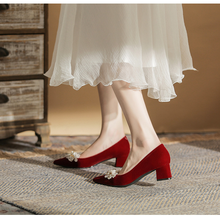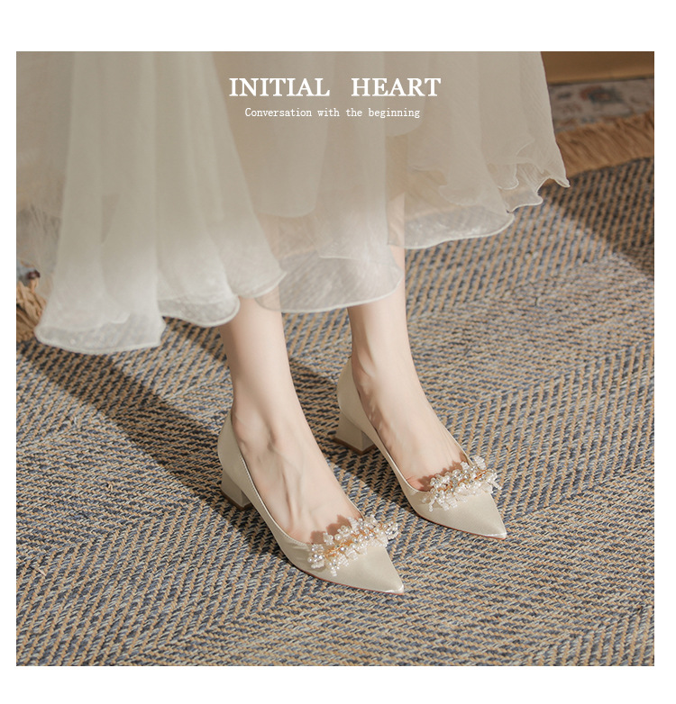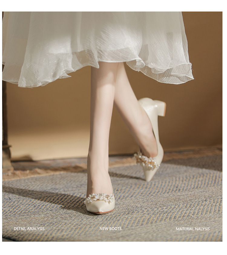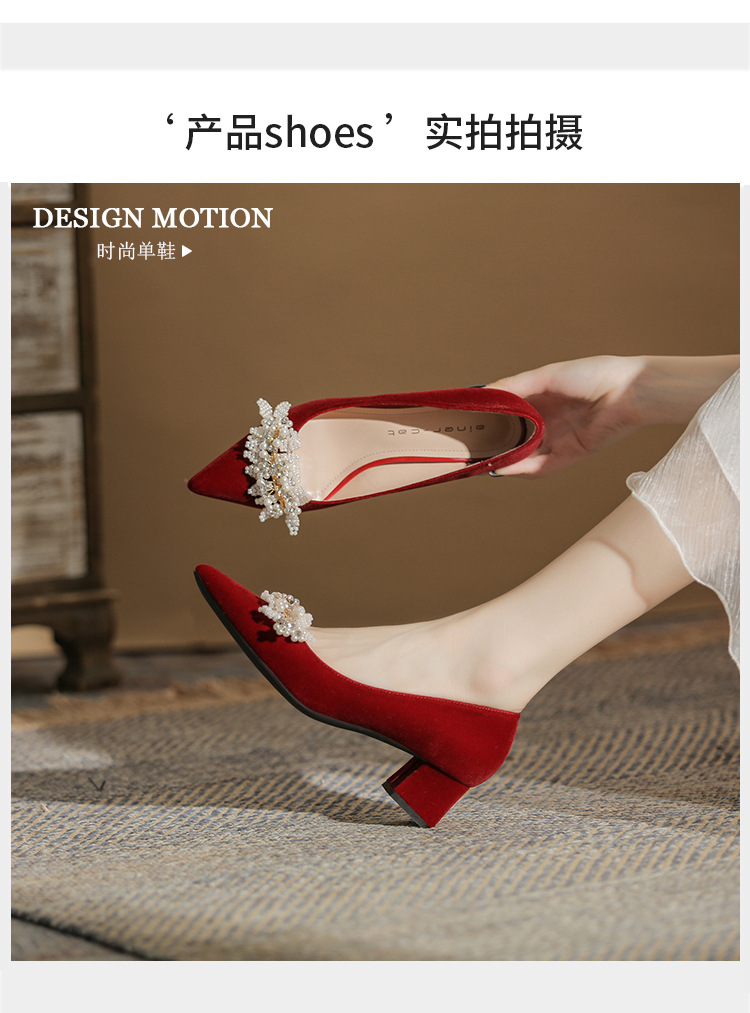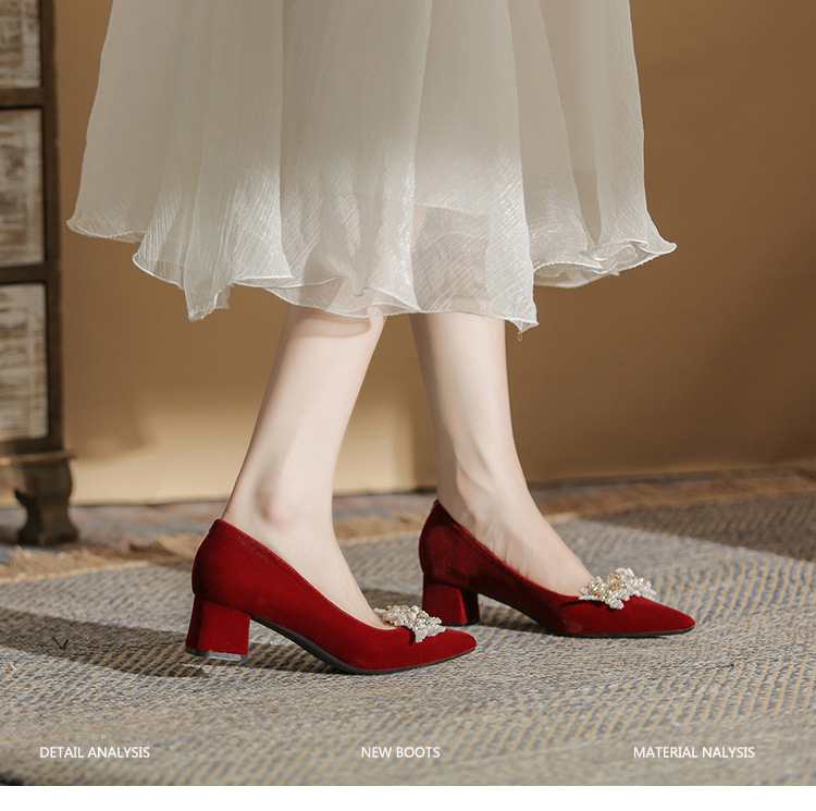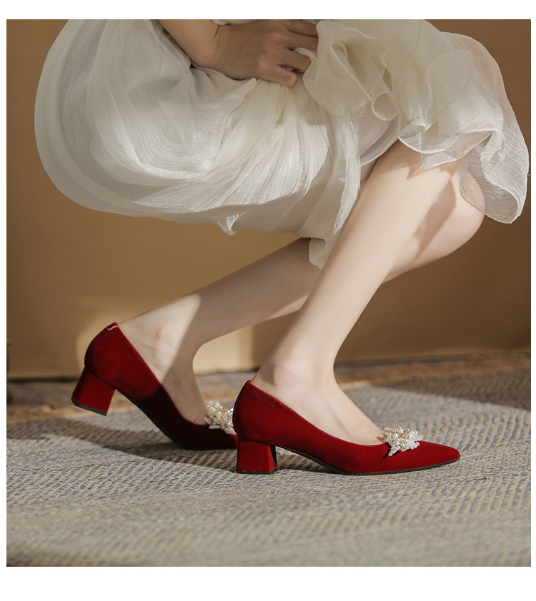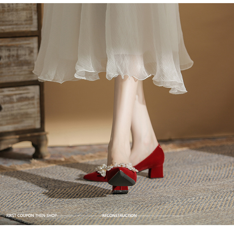 Đôi giày này có mũi nhọn và gót thấp chắc chắn, rất dễ dàng di chuyển. Điểm nhấn là những hạt ngọc tr nhỏ xinh được đính khéo léo, tạo vẻ đẹp dịu dàng. Sản phẩm có hai cách mặc linh hoạt: bạn có thể gập gót lại để thành giày hở gót mát mẻ, hoặc xỏ gót đầy đủ cho những dịp cần chỉn chu. Đây là lựa chọn phù hợp cho các cô dâu trong ngày trọng đại hoặc để phối cùng những bộ trang phục thanh lịch hằng ngày. | Tên sản phẩm: Giày Cao Gót Nữ Mũi Nhọn Gót Vuông Hàng Mùa Xuân Thu Đông Dùng Trong Lễ Cưới - Giày Dép Nữ | Mã sản phẩm: A1397 - Giá: 990.000đ | Mã nhà sản xuất: HUDS-G03Hình ảnh sản phẩm