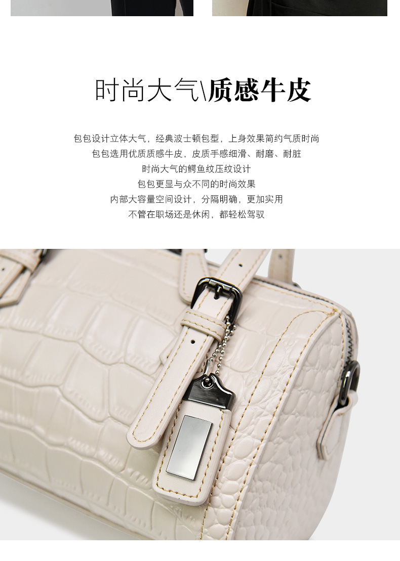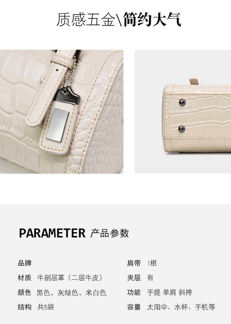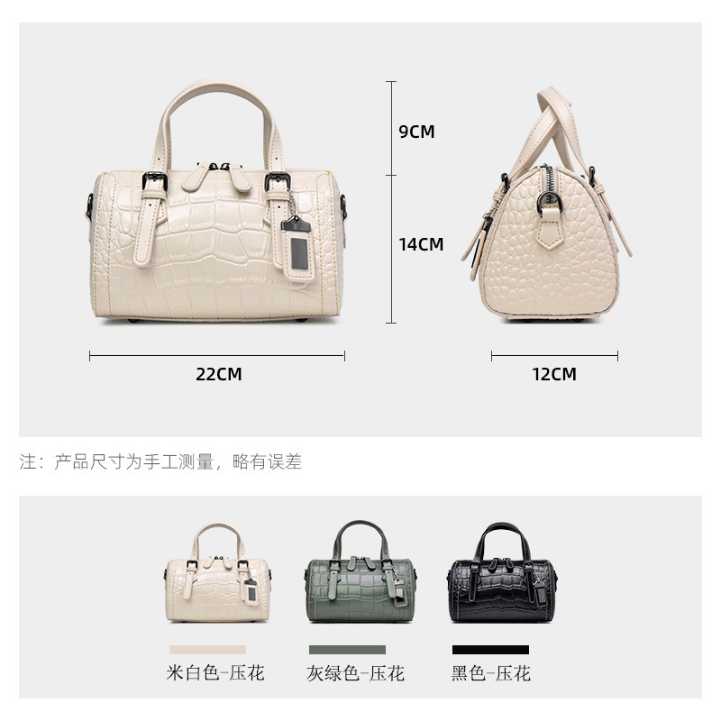 Túi xách tay dáng hình thùng cổ điển, phù hợp mang đi làm hoặc dạo phố. Chất liệu da bò bền đẹp với họa tiết vân da cá sấu tinh tế. Bạn có thể đeo chéo người một cách thoải mái, hoặc xách tay bằng qu ngắn lịch sự. Thiết kế nhiều ngăn giúp đựng ví, điện thoại và các vật dụng cá nhân gọn gàng, tiện lợi cho mọi hoạt động thường ngày. | Tên sản phẩm: Túi Xách Nữ Chất Liệu Da Bò Vân Da Cá Sấu - Túi Ví Nữ | Mã sản phẩm: A1441 - Giá: 990.000đ | Mã nhà sản xuất: GUDAT-G03Hình ảnh sản phẩm