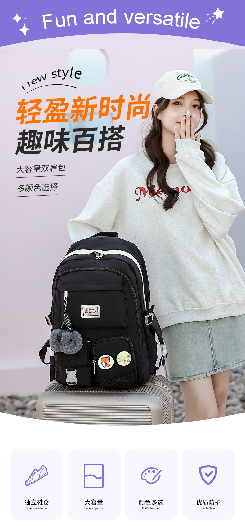 Ba lô dành cho các bạn nhỏ, đặc biệt là học sinh tiểu học. Sản phẩm được làm từ chất liệu nhẹ, có khả năng chống nước tốt. Kiểu dáng in hoa văn bắt mắt, phù hợp với sở thích của nhiều bạn gái. Ngăn chứa rộng rãi, đựng vừa sách vở, đồ dùng học tập và ch nước. Có hai qu đeo mềm mại, giúp đeo sau lưng một cách thoải mái. Rất tiện lợi để sử dụng mỗi ngày khi đến trường. | Tên sản phẩm: Túi Đeo Vai Nữ Chống Nước Họa Tiết Hoa - Túi Ví Nữ | Mã sản phẩm: A1445 - Giá: 570.000đ | Mã nhà sản xuất: GUDLE-G01Hình ảnh sản phẩm