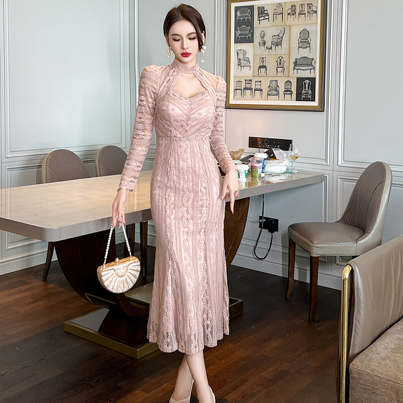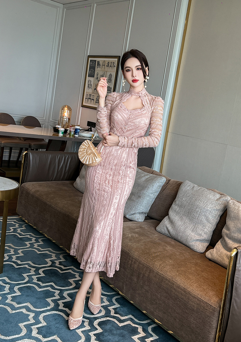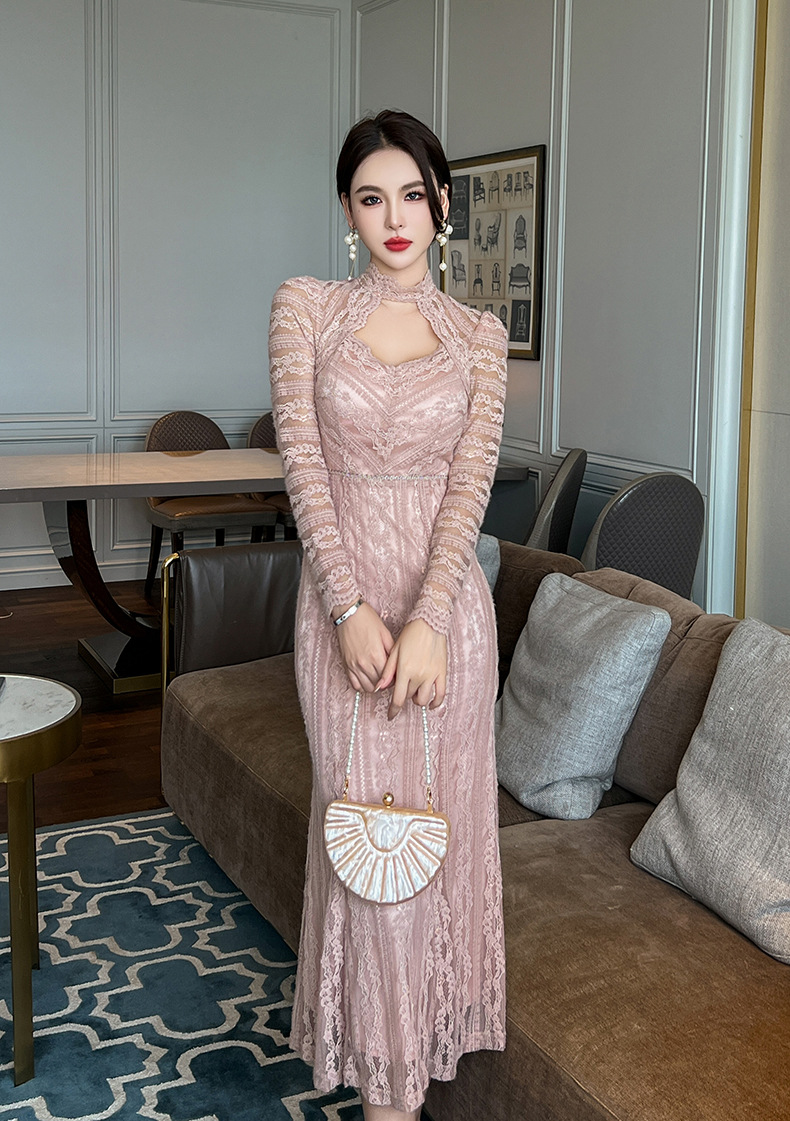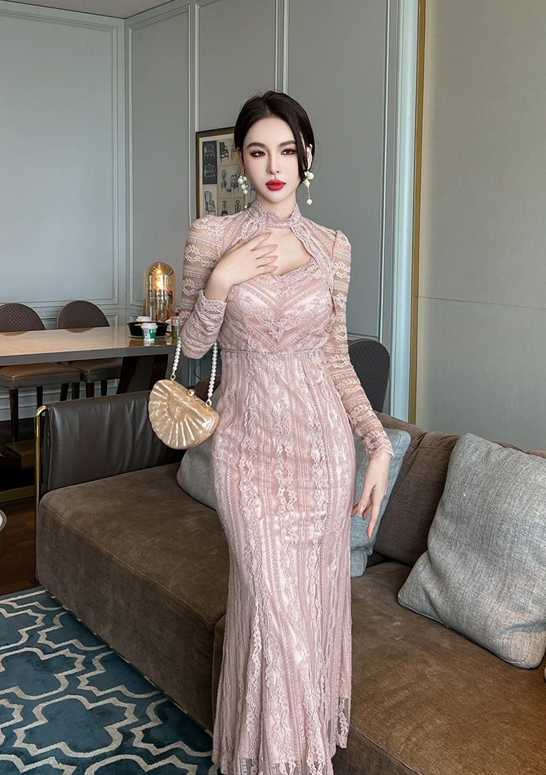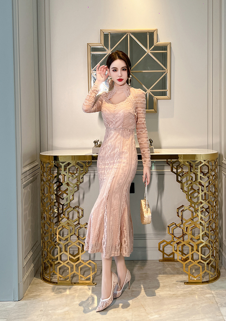 Chiếc đầm dáng dài điểm xuyến họa tiết ren xuyên thấu tinh tế, tôn lên vẻ đẹp dịu dàng và nữ tính. Thiết kế ôm sát cơ thể kết hợp phần làm eo thon gọn, phối cùng phần chân váy xòe hình đuôi cá duyên dáng. Chất vải mềm mại giữ ấm nhẹ, phù hợp mặc trong tiết trời thu đông. Có thể kết hợp cùng áo khoác mỏng hoặc phụ kiện đơn giản để tạo nên những bộ trang phục thanh lịch cho nhiều dịp khác nhau. | Tên sản phẩm: Váy Đầm Liền Thân Dáng Dài Nữ Chất Liệu Ren Dáng Ôm Kiểu Đuôi Cá Hàng Mùa Xuân Thu Đông - Thời Trang Nữ | Mã sản phẩm: a1554 - Giá: 1.260.000đ | Mã nhà sản xuất: CHDG-G04Hình ảnh sản phẩm