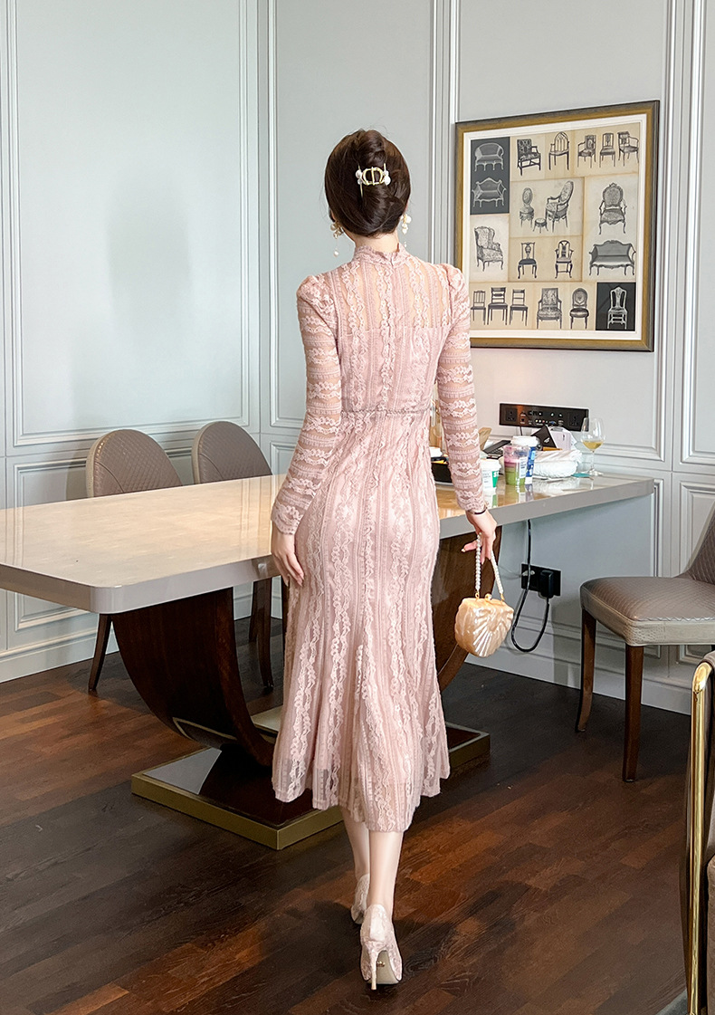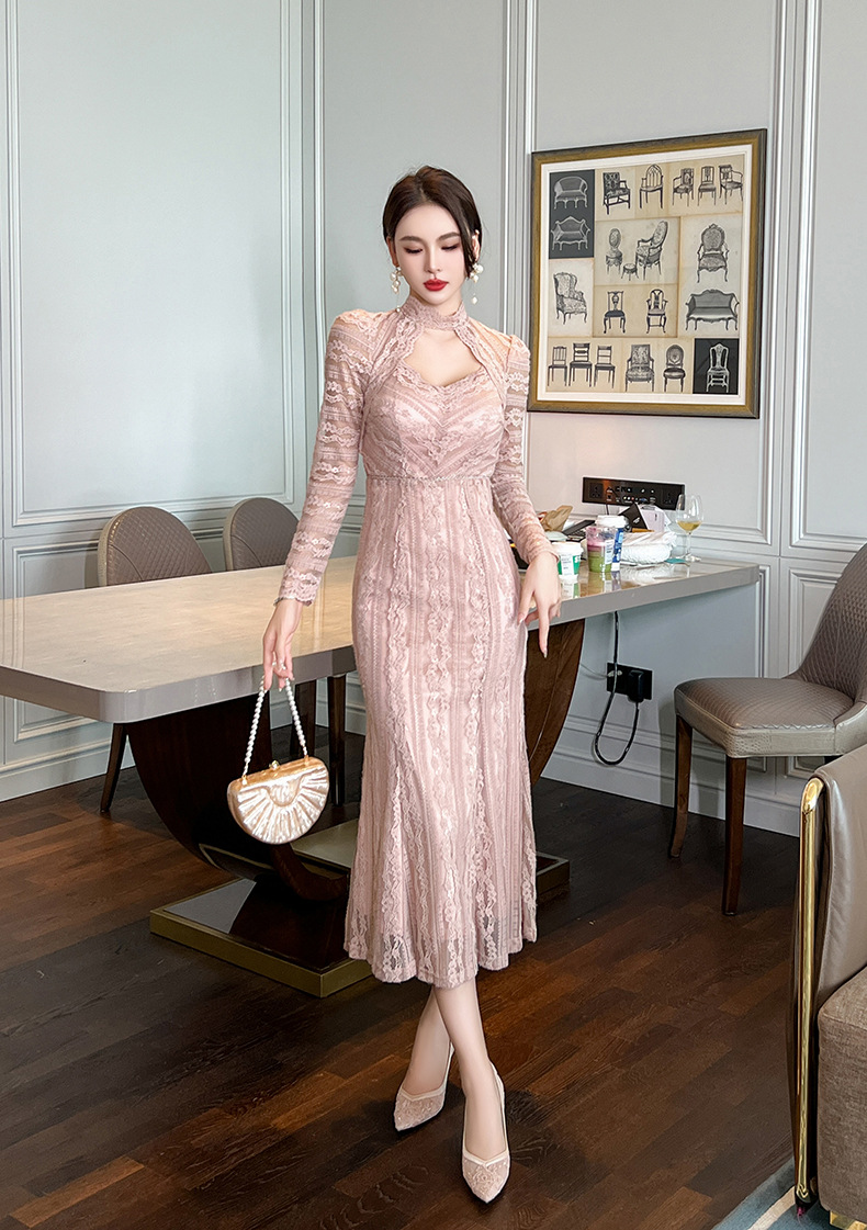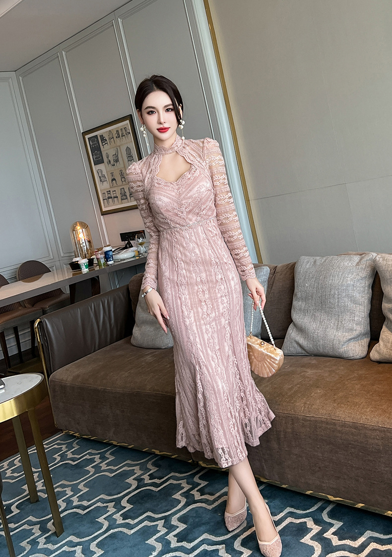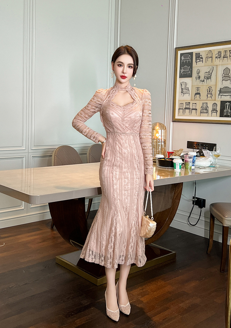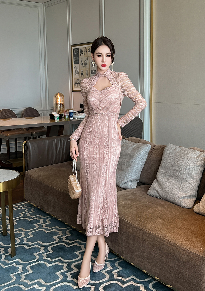 Chiếc đầm dáng dài điểm xuyến họa tiết ren xuyên thấu tinh tế, tôn lên vẻ đẹp dịu dàng và nữ tính. Thiết kế ôm sát cơ thể kết hợp phần làm eo thon gọn, phối cùng phần chân váy xòe hình đuôi cá duyên dáng. Chất vải mềm mại giữ ấm nhẹ, phù hợp mặc trong tiết trời thu đông. Có thể kết hợp cùng áo khoác mỏng hoặc phụ kiện đơn giản để tạo nên những bộ trang phục thanh lịch cho nhiều dịp khác nhau. | Tên sản phẩm: Váy Đầm Liền Thân Dáng Dài Nữ Chất Liệu Ren Dáng Ôm Kiểu Đuôi Cá Hàng Mùa Xuân Thu Đông - Thời Trang Nữ | Mã sản phẩm: a1554 - Giá: 1.260.000đ | Mã nhà sản xuất: CHDG-G04Hình ảnh sản phẩm