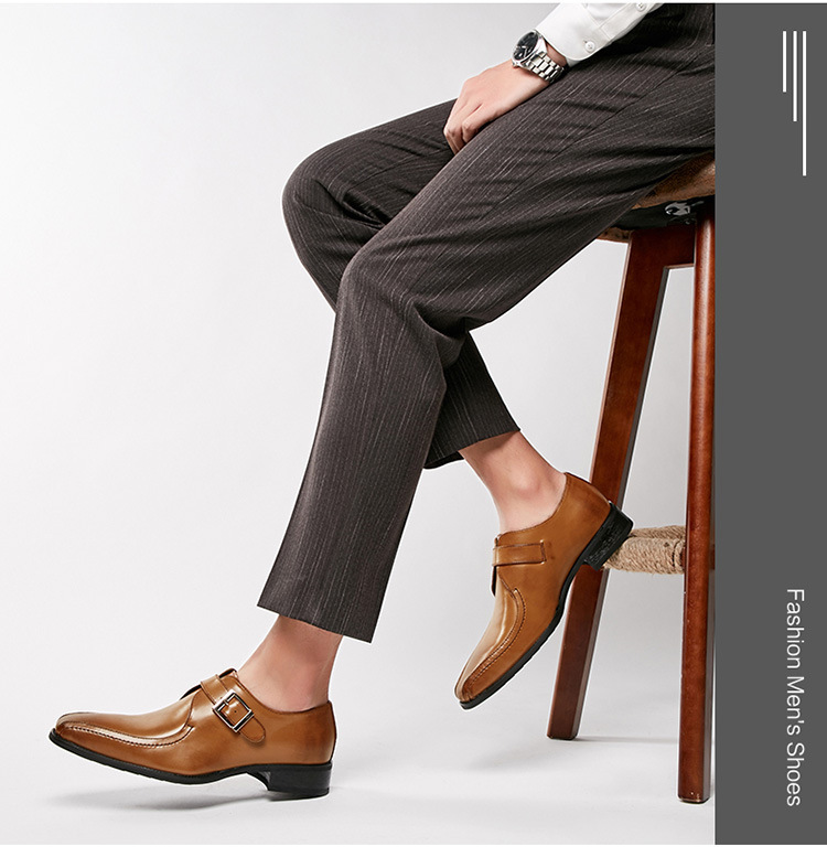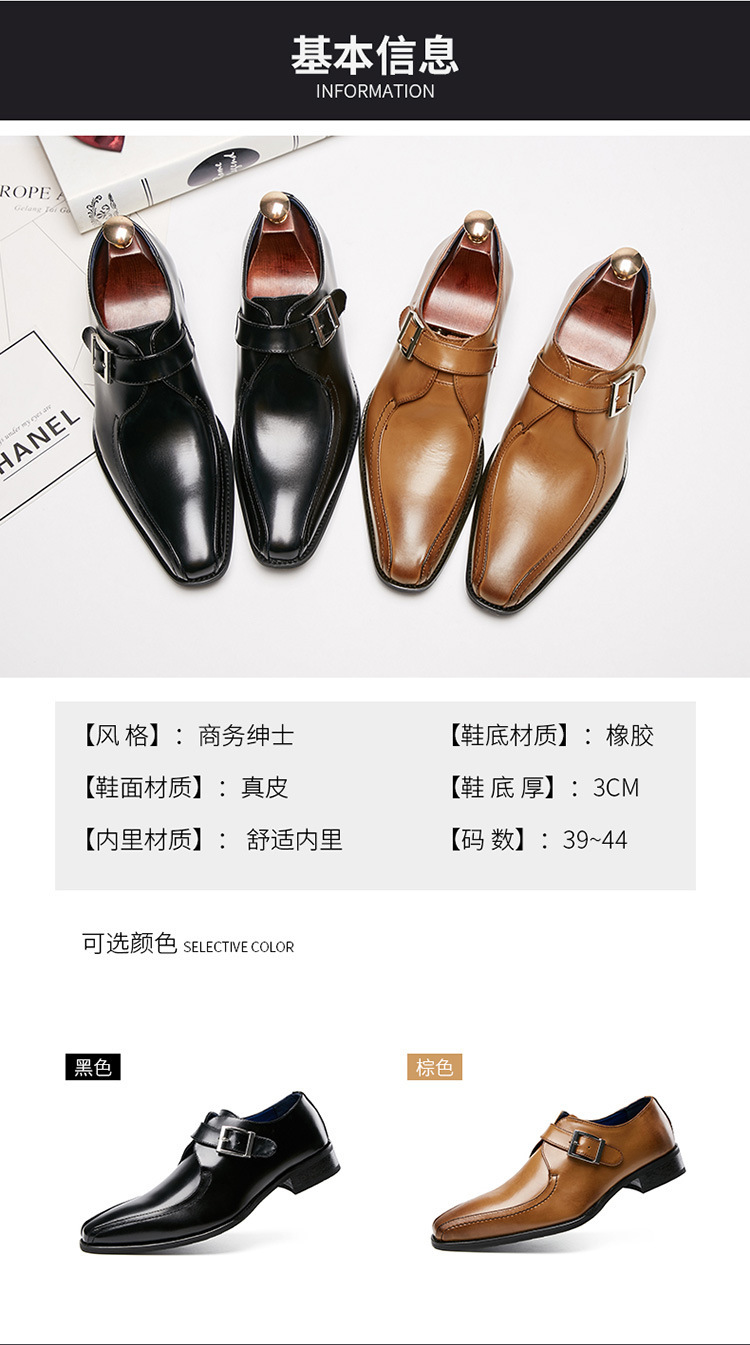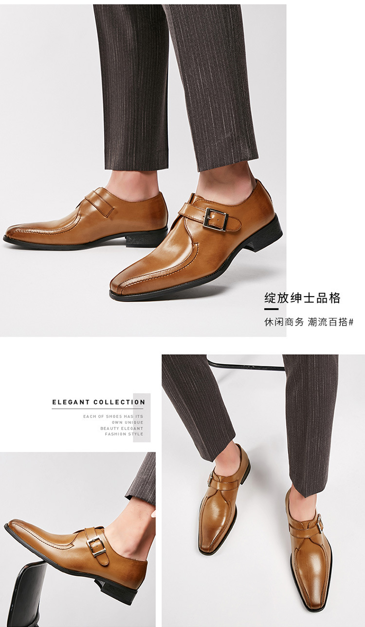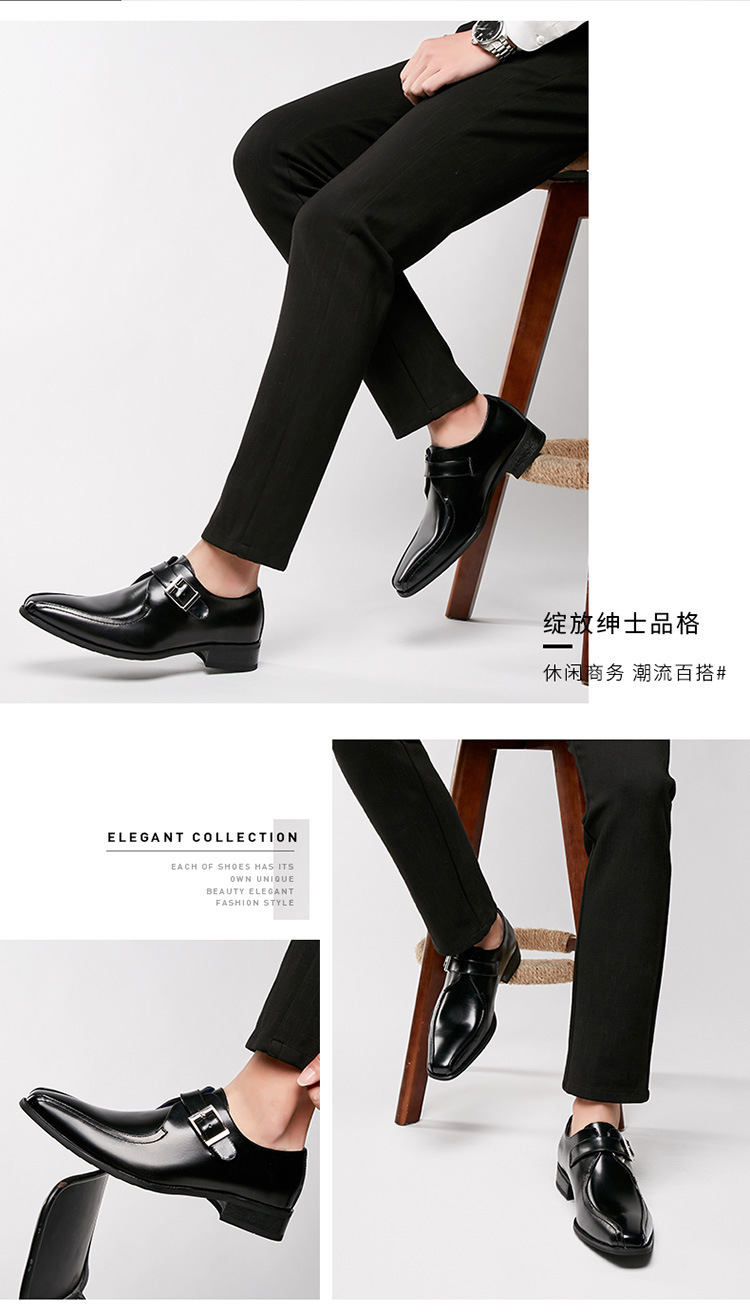Giày da thật dành cho nam, thiết kế mũi nhọn lịch sự phù hợp cho công sở, sự kiện hoặc tiệc cưới. Mẫu giày này có quai ngang với khóa móc kim loại tạo điểm nhấn, vừa tiện lợi vừa có phong cách. Chất liệu da mềm mại mang lại cảm giác dễ chịu khi mang cả ngày. Dễ dàng phối cùng quần tây, âu để hoàn thiện bộ trang phục chỉn chu. | Tên sản phẩm: Giày Da Nam Chất Liệu Da Bò Mũi Nhọn Dùng Trong Lễ Cưới - Giày Dép Nam | Mã sản phẩm: A1674 - Giá: 940.000đ | Mã nhà sản xuất: WEDSH-G03Hình ảnh sản phẩm