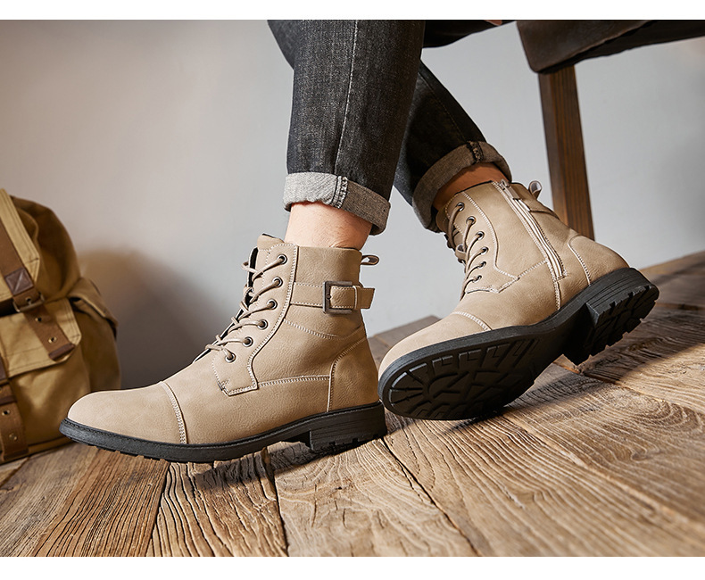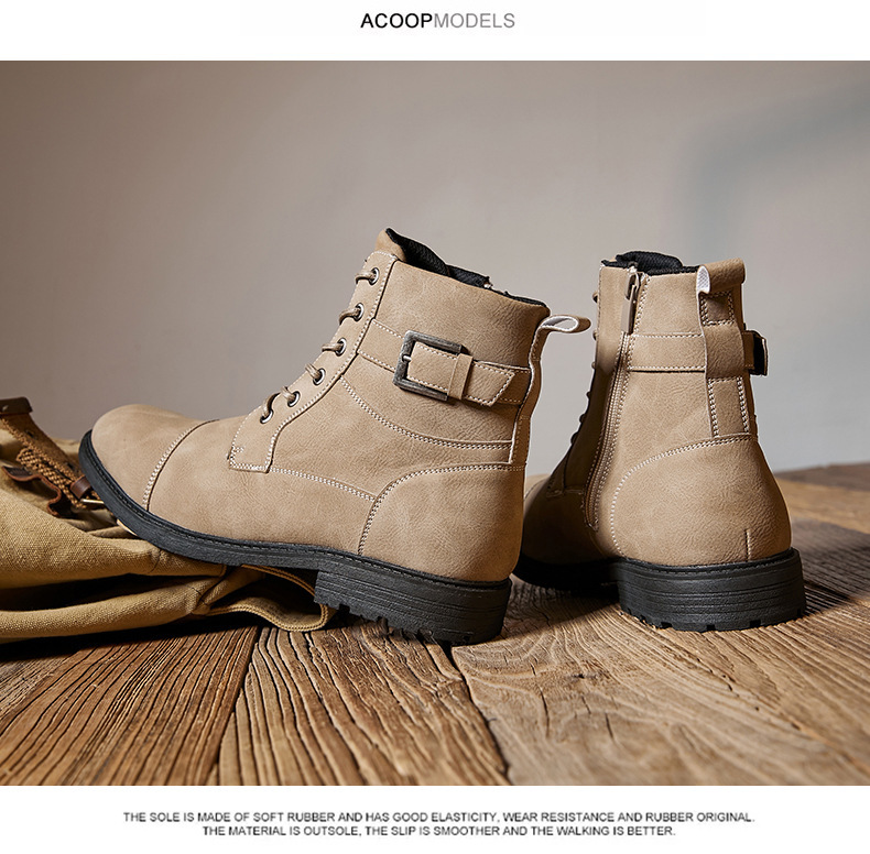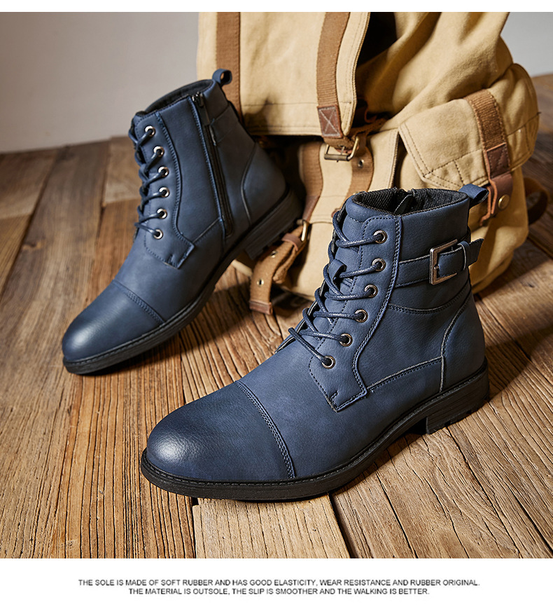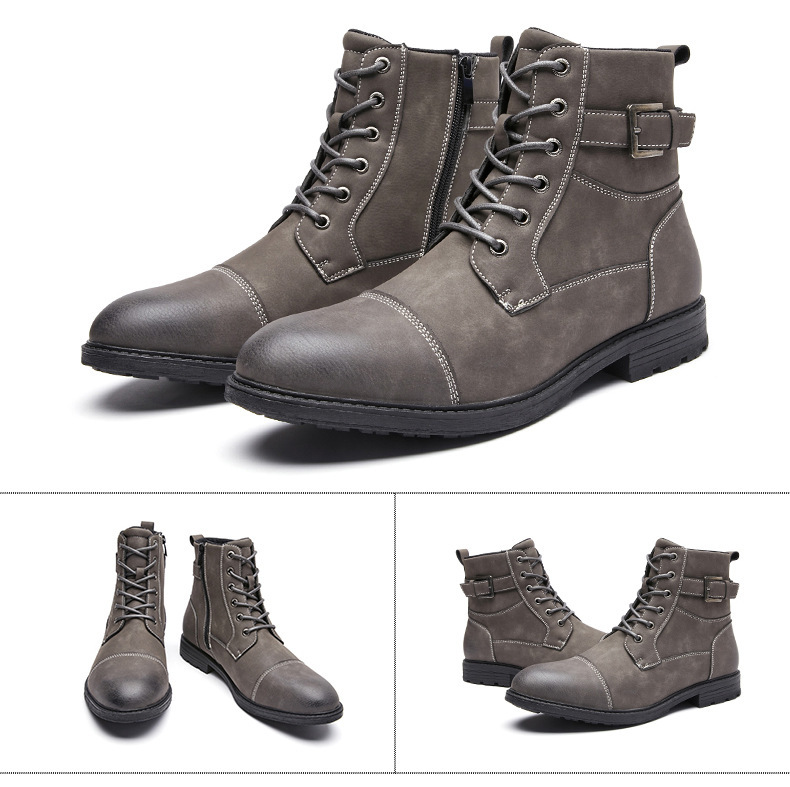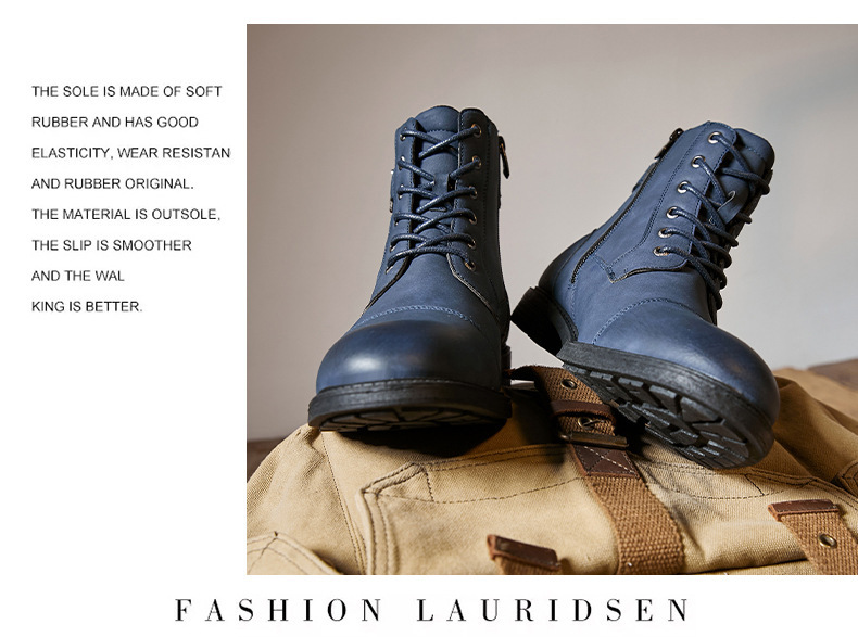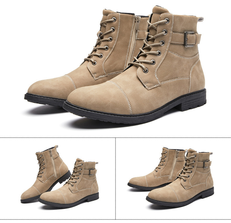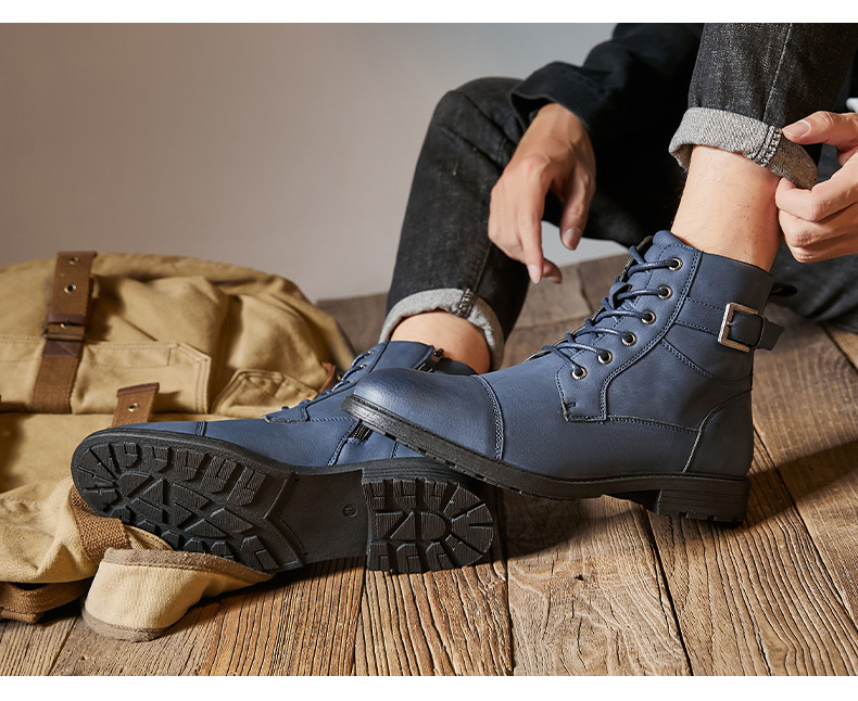 Giày bốt nam thiết kế cổ điển dáng cao cổ, phù hợp cho mùa thu đông. Sản phẩm có kiểu dáng tròn mũi, phong cách cổ điển và dây buộc tiện lợi. Đặc biệt, phần đế được làm cho bám sàn tốt, giúp bạn di chuyển an toàn hơn. Bên cạnh còn có khóa kéo hông để mang vào và tháo ra dễ dàng. Bạn có thể dùng hàng ngày, phối cùng nhiều loại trang phục khác nhau. | Tên sản phẩm: Boot Martin Nam Mũi Tròn Ma Sát Chống Trượt Hàng Mùa Xuân Thu Đông Phục Cổ Cổ Điển - Giày Dép Nam | Mã sản phẩm: A1689 - Giá: 890.000đ | Mã nhà sản xuất: WEDSH-G03Hình ảnh sản phẩm
