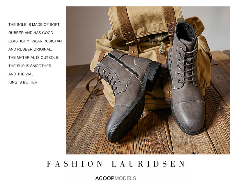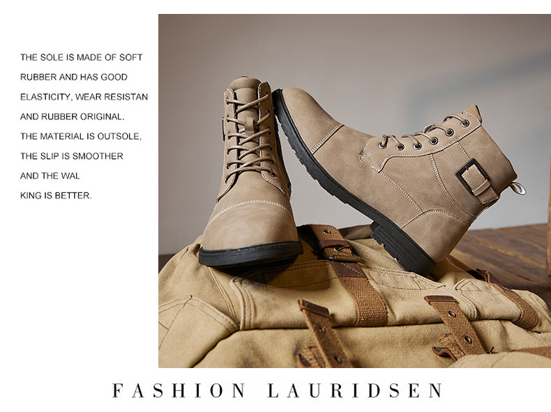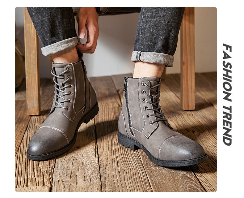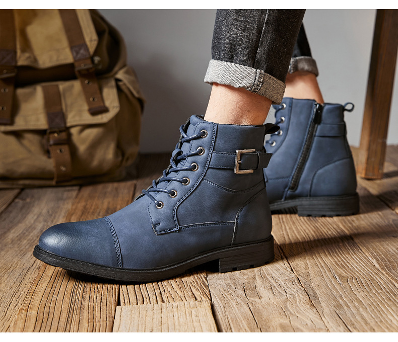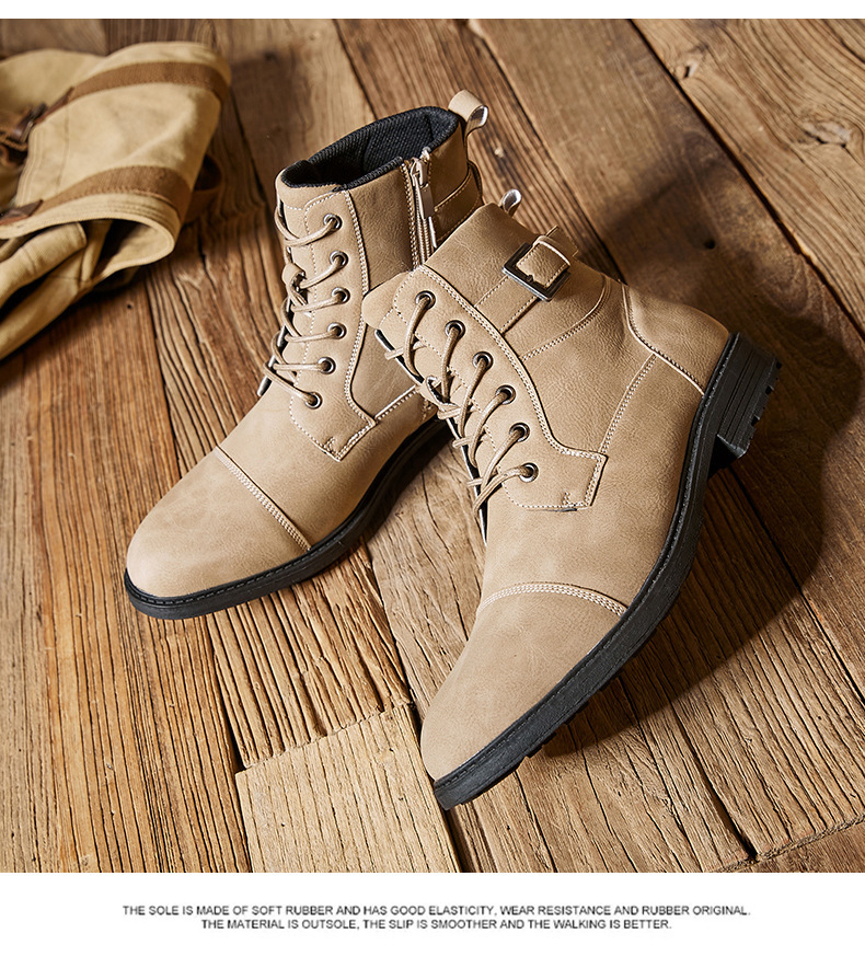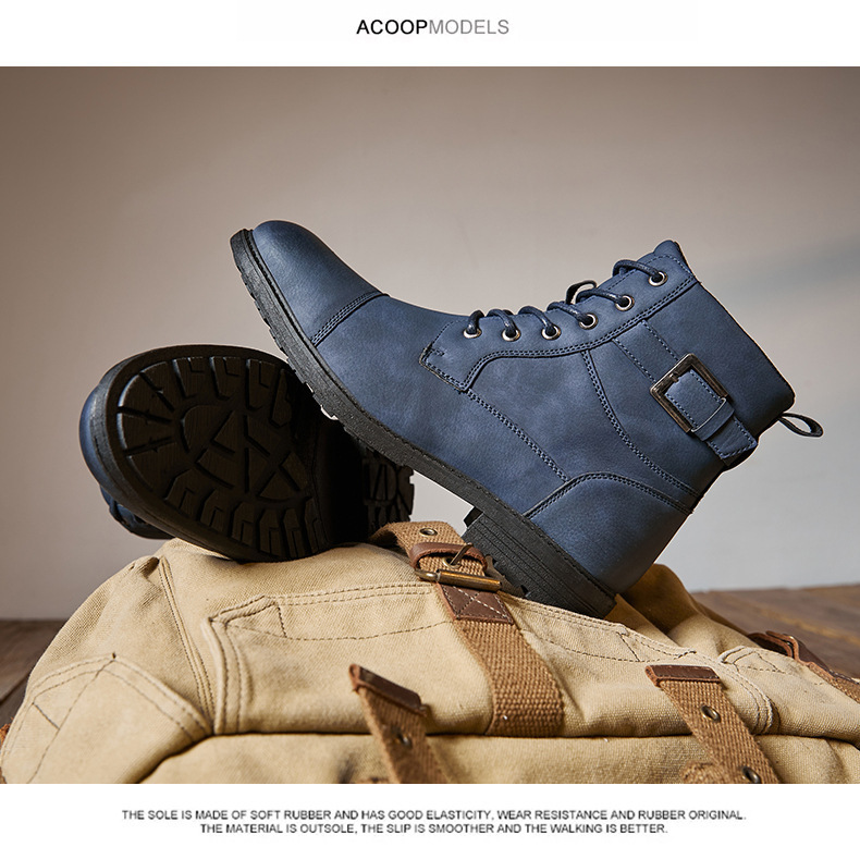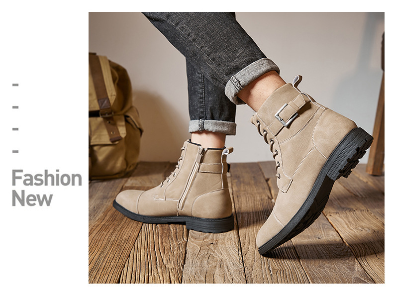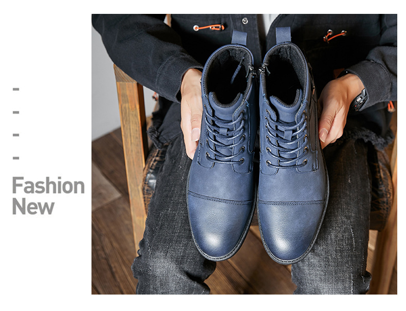 Giày bốt nam thiết kế cổ điển dáng cao cổ, phù hợp cho mùa thu đông. Sản phẩm có kiểu dáng tròn mũi, phong cách cổ điển và dây buộc tiện lợi. Đặc biệt, phần đế được làm cho bám sàn tốt, giúp bạn di chuyển an toàn hơn. Bên cạnh còn có khóa kéo hông để mang vào và tháo ra dễ dàng. Bạn có thể dùng hàng ngày, phối cùng nhiều loại trang phục khác nhau. | Tên sản phẩm: Boot Martin Nam Mũi Tròn Ma Sát Chống Trượt Hàng Mùa Xuân Thu Đông Phục Cổ Cổ Điển - Giày Dép Nam | Mã sản phẩm: A1689 - Giá: 890.000đ | Mã nhà sản xuất: WEDSH-G03Hình ảnh sản phẩm