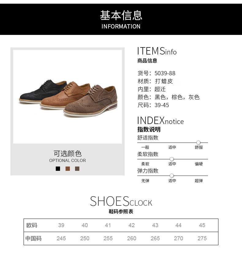 Giày da dành cho nam, lấy cảm hứng từ phong cách cổ điển châu Âu. Sản phẩm được làm từ chất liệu da thật kết hợp vải nỉ mềm mại, tạo nên vẻ ngoài lịch sự nhưng vẫn phóng khoáng. Các đường cắt hình hoa văn tinh tế điểm xuyết trên thân giày. Kiểu dáng này phù hợp cho cả công sở và những dịp gặp gỡ thường ngày. Bạn có thể dễ dàng phối cùng quần âu hoặc quần jeans để có vẻ ngoại chỉn chu. | Tên sản phẩm: Giày Da Nam Chất Liệu Da Bò Họa Tiết Hoa Hàng Mùa Hè Phục Cổ Cổ Điển - Giày Dép Nam | Mã sản phẩm: A1698 - Giá: 1.050.000đ | Mã nhà sản xuất: WEDSH-G03Hình ảnh sản phẩm