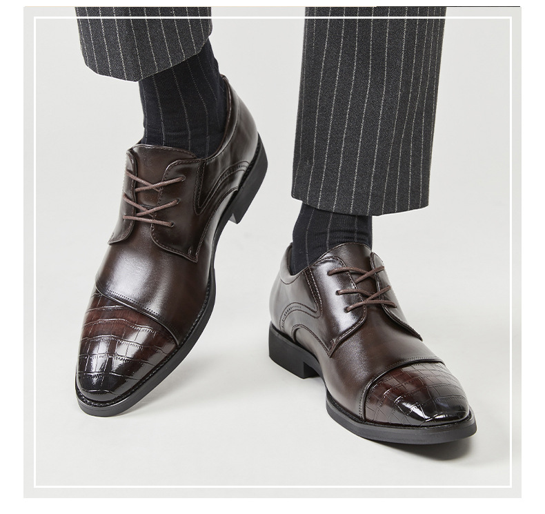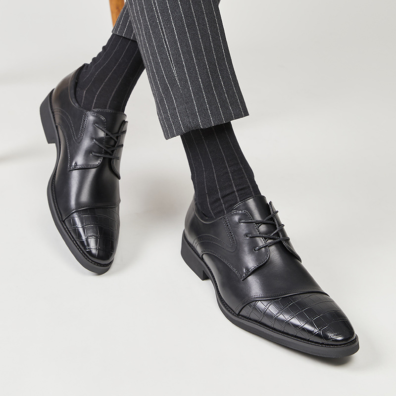 Giày da dành cho nam giới, thiết kế kiểu dáng mũi nhọn tạo nên vẻ lịch sự, phù hợp cho môi trường công sở hay những buổi gặp mặt. Đế giày được làm từ chất liệu mềm mại, mang lại cảm giác dễ chịu cho đôi chân khi sử dụng cả ngày dài. Sản phẩm kết hợp hài hòa giữa phong cách làm việc và nét duyên dáng trong các dịp quan trọng. Cách dùng đơn giản, phối hợp cùng trang phục như quần âu hoặc vest để hoàn thiện phong cách. | Tên sản phẩm: Giày Da Nam Mũi Nhọn Đế Mềm Hàng Mùa Xuân Thu Đông Dùng Trong Lễ Cưới - Giày Dép Nam | Mã sản phẩm: A1700 - Giá: 800.000đ | Mã nhà sản xuất: WEDSH-G02Hình ảnh sản phẩm
