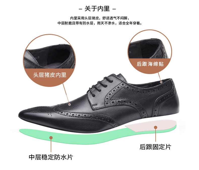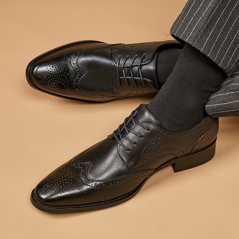 Giày da thật dành cho nam, kiểu dáng mũi nhọn mang phong cách châu Âu. Sản phẩm được làm từ chất liệu da bò mềm mại, bền đẹp theo thời gian. Trên thân giày điểm xuyết những đường nét chạm khắc tinh tế, phù hợp cho cả những buổi làm việc trang trọng lẫn dạo phố cuối tuần. Dễ dàng phối cùng quần âu hoặc quần kaki. Bạn chỉ cần vệ sinh nhẹ nhàng bằng khăn mềm để giữ giày luôn sạch sẽ. | Tên sản phẩm: Giày Da Nam Chất Liệu Da Bò Mũi Nhọn Họa Tiết Hoa - Giày Dép Nam | Mã sản phẩm: A1701 - Giá: 1.490.000đ | Mã nhà sản xuất: WEDSH-G04Hình ảnh sản phẩm