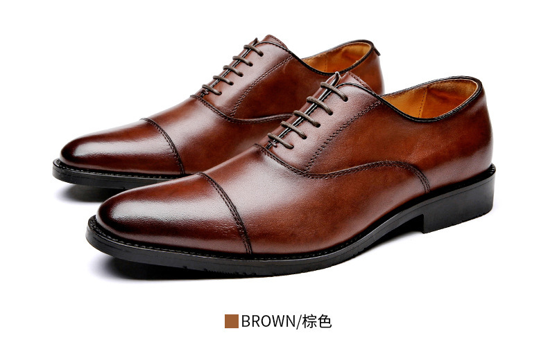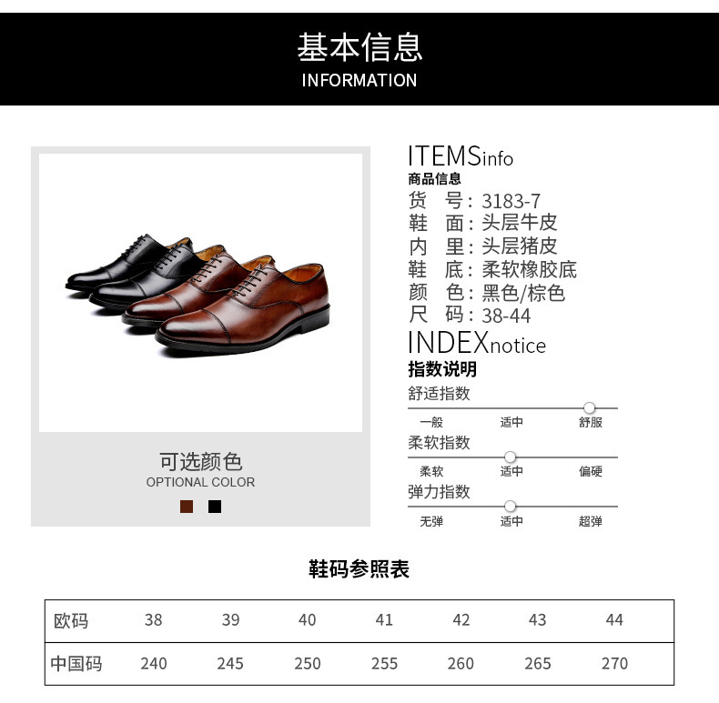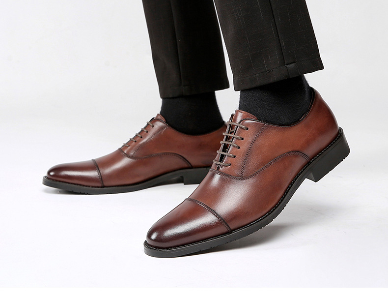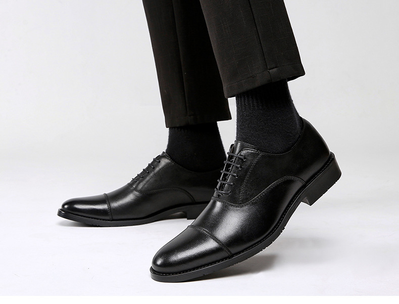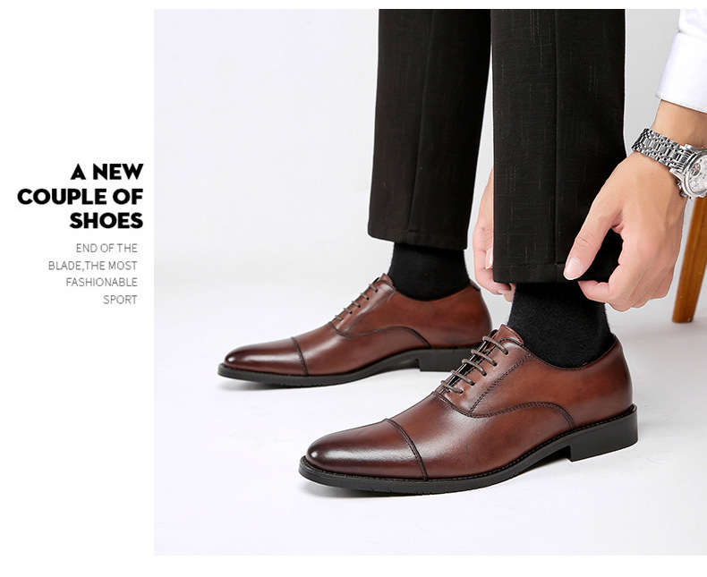 Giày da thật dành cho nam, kiểu dáng công sở lịch sự phù hợp cho môi trường làm việc. Sản phẩm được làm thủ công từ chất liệu da bò tự nhiên, mang lại độ bền và khả năng thoáng khí tốt. Thiết kế mũi giày ghép nối ba phần tạo điểm nhấn tinh tế, phong cách Anh Quốc cổ điển. Dễ dàng phối cùng trang phục công sở, bảo quản bằng cách vệ sinh nhẹ và bôi kem da định kỳ. | Tên sản phẩm: Giày Da Nam Chất Liệu Da Bò Thoáng Khí Hàng Mùa Xuân Thu Đông - Giày Dép Nam | Mã sản phẩm: A1705 - Giá: 1.490.000đ | Mã nhà sản xuất: WEDSH-G04Hình ảnh sản phẩm