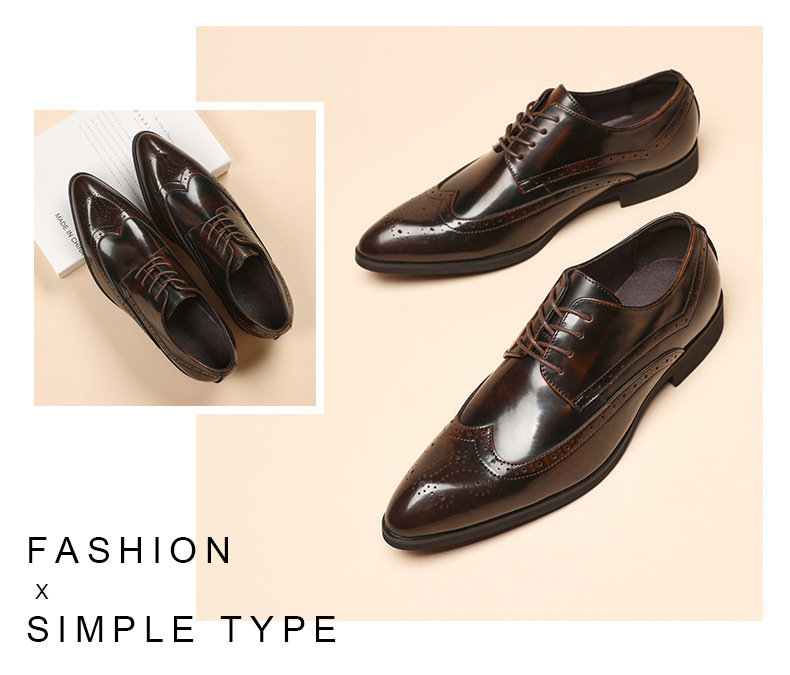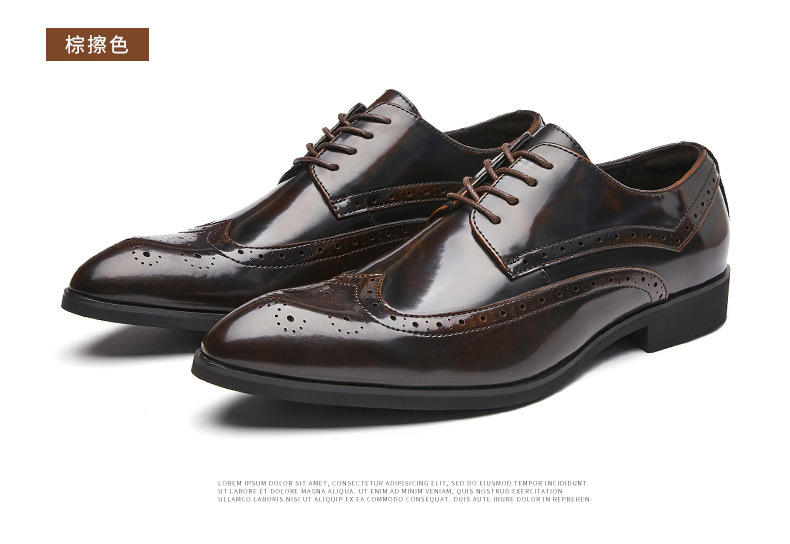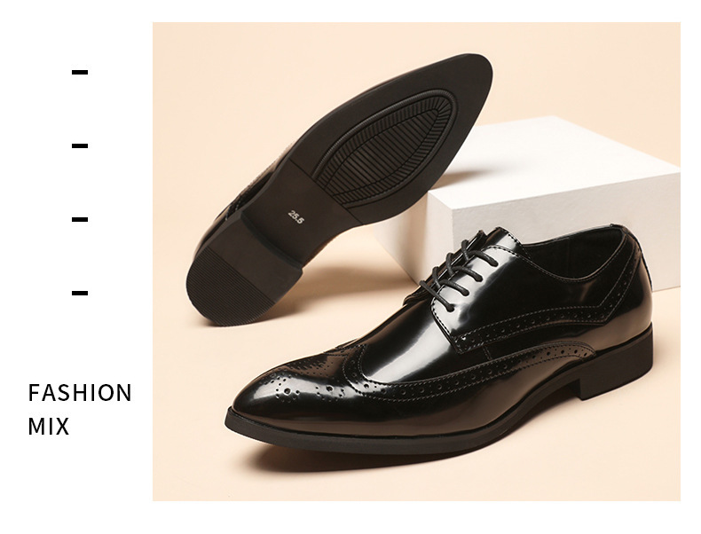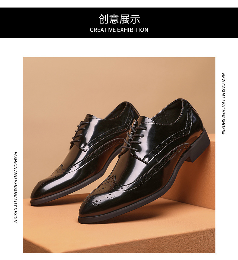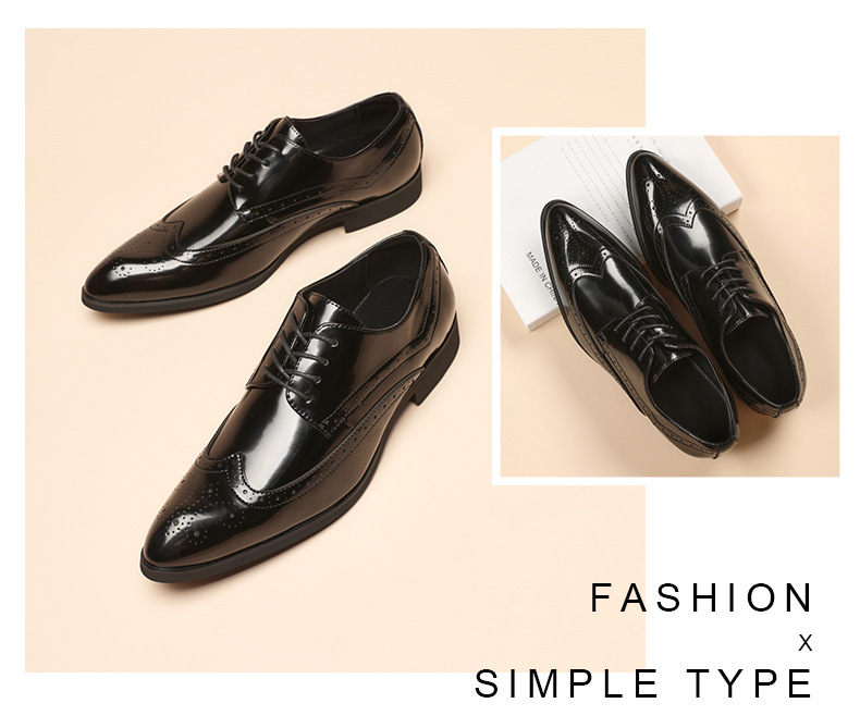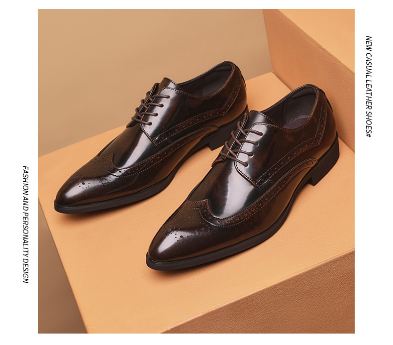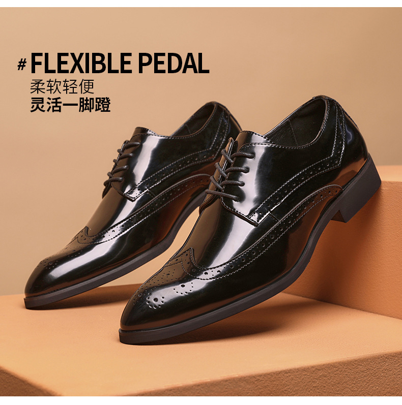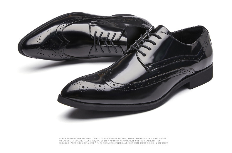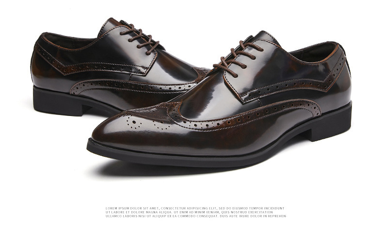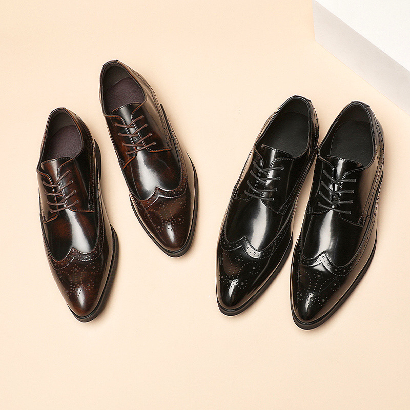 Giày da nam kiểu dáng cổ điển, phù hợp cho công sở và những dịp cần trang phục chỉn chu. Sản phẩm có mũi nhọn, bề mặt da bóng với các đường nét chạm khắc tinh tế. Đế giày được làm mềm mại, giúp bước chân thoải mái và dễ chịu cả ngày dài. Bạn có thể kết hợp cùng bộ vest hoặc quần âu để tạo phong cách lịch sự. | Tên sản phẩm: Giày Da Nam Mũi Nhọn Đế Mềm Họa Tiết Hoa - Giày Dép Nam | Mã sản phẩm: A1716 - Giá: 980.000đ | Mã nhà sản xuất: WEDSH-G03Hình ảnh sản phẩm