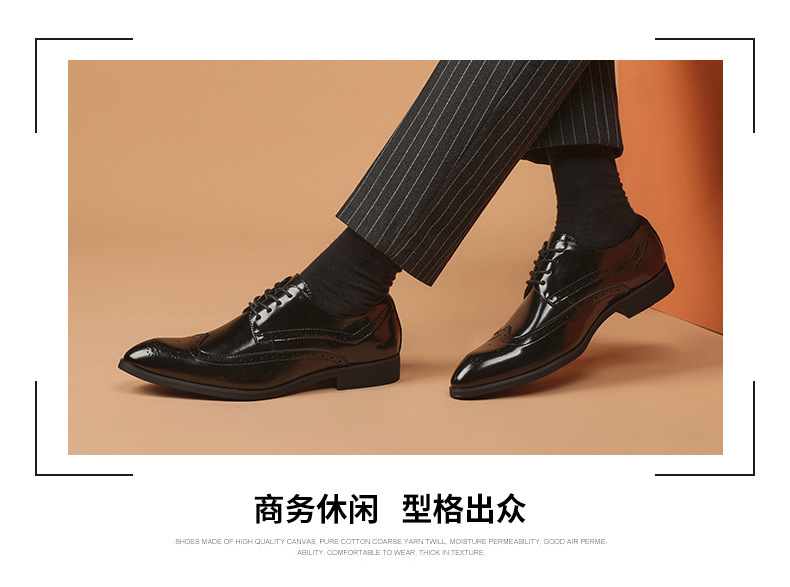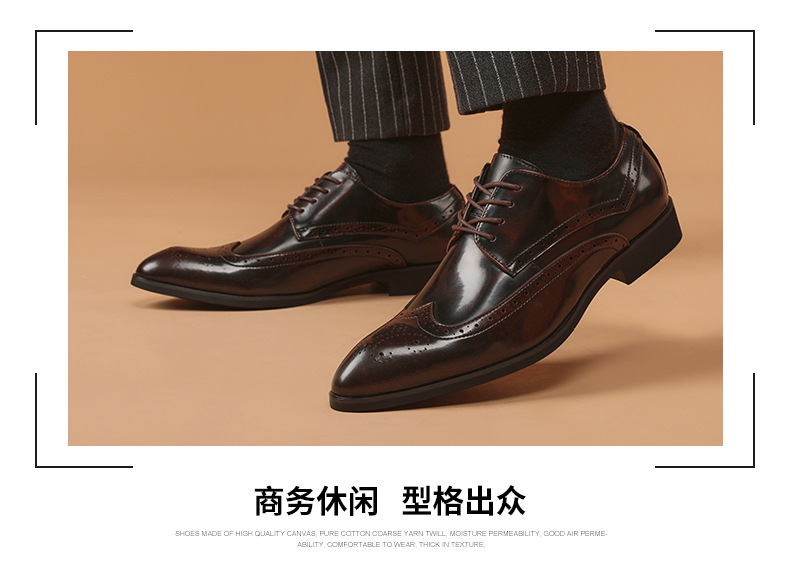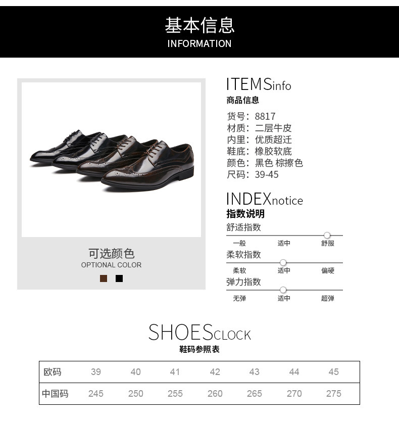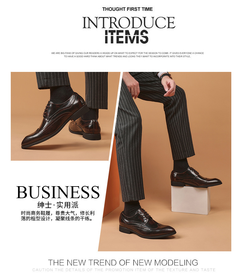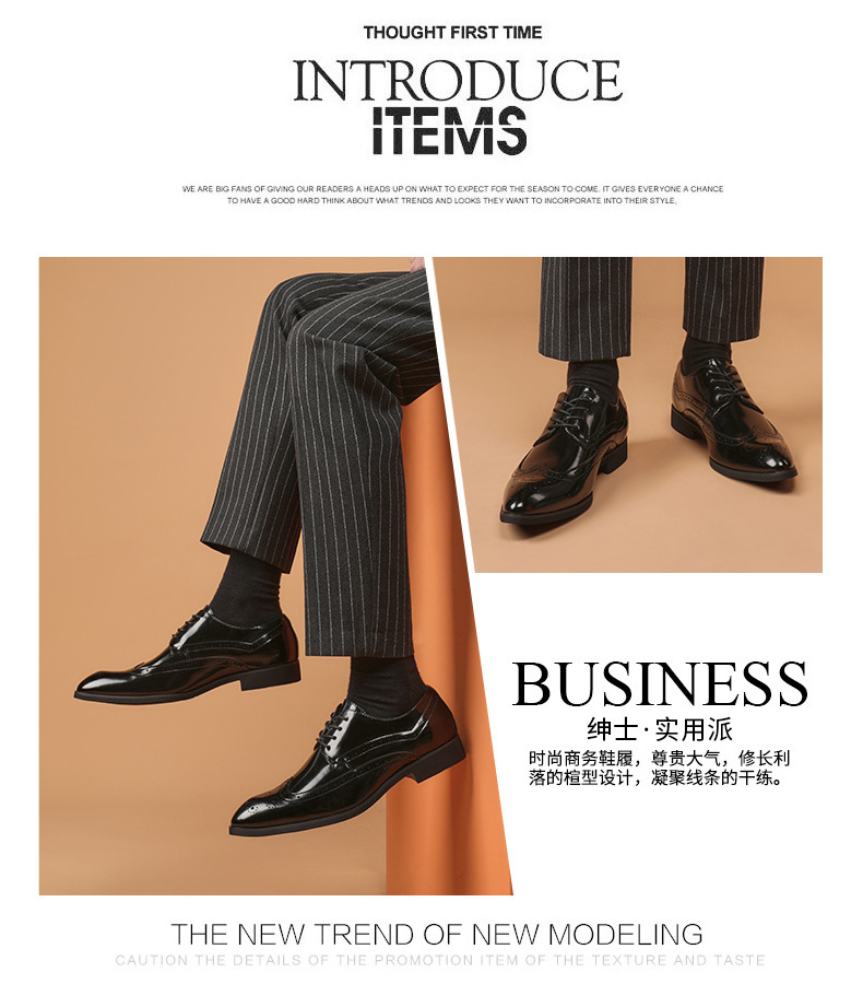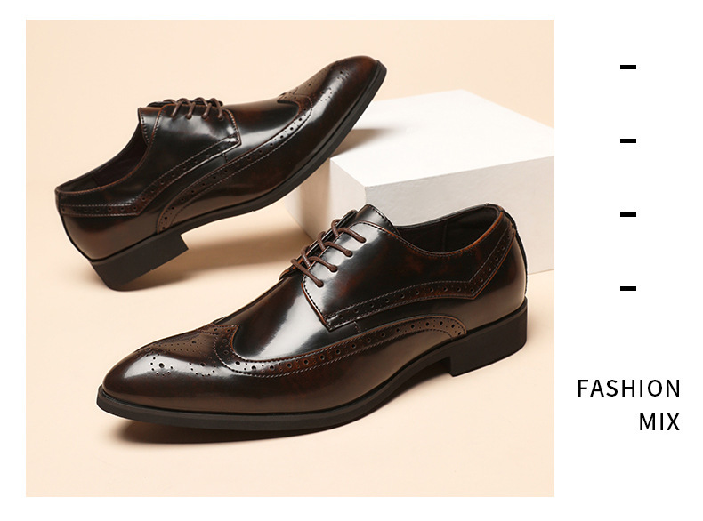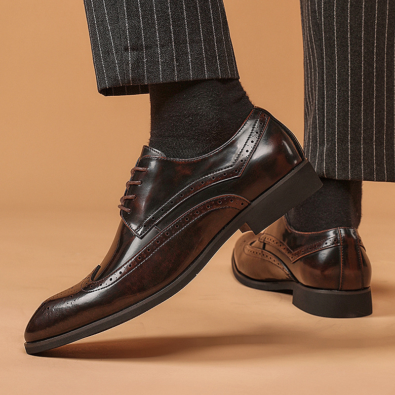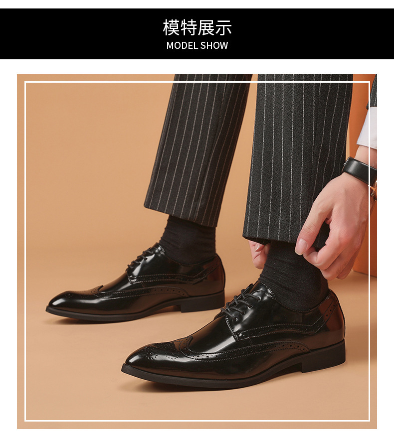 Giày da nam kiểu dáng cổ điển, phù hợp cho công sở và những dịp cần trang phục chỉn chu. Sản phẩm có mũi nhọn, bề mặt da bóng với các đường nét chạm khắc tinh tế. Đế giày được làm mềm mại, giúp bước chân thoải mái và dễ chịu cả ngày dài. Bạn có thể kết hợp cùng bộ vest hoặc quần âu để tạo phong cách lịch sự. | Tên sản phẩm: Giày Da Nam Mũi Nhọn Đế Mềm Họa Tiết Hoa - Giày Dép Nam | Mã sản phẩm: A1716 - Giá: 980.000đ | Mã nhà sản xuất: WEDSH-G03Hình ảnh sản phẩm