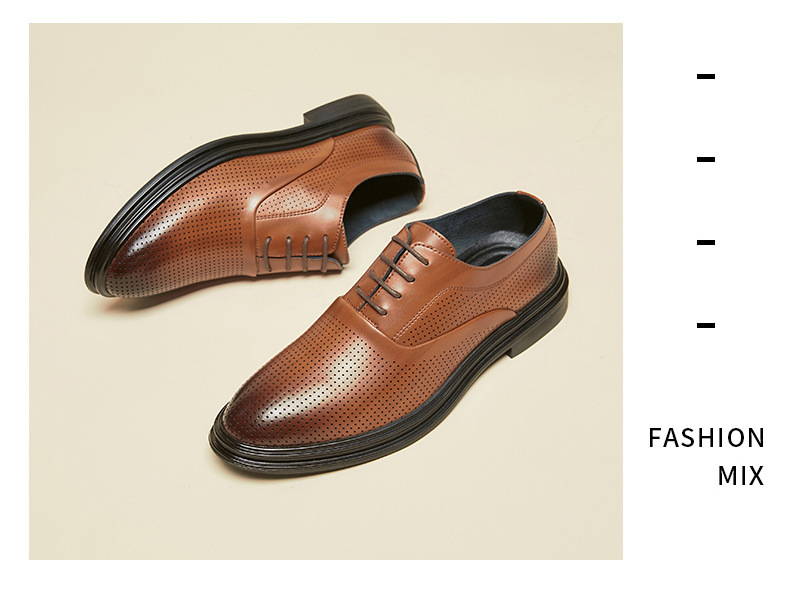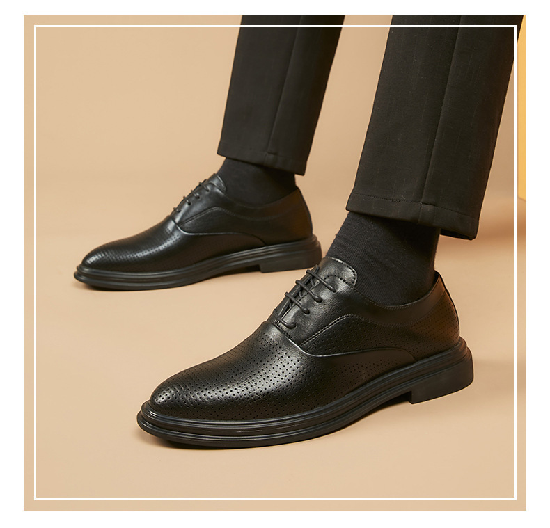 Giày da nam thiết kế những lỗ nhỏ li ti giúp không khí lưu thông tốt, mang lại cảm giác thoáng mát suốt ngày dài. Kiểu dáng lịch sự phù hợp đi làm, dự tiệc hoặc dạo phố cuối tuần. Sản phẩm làm từ chất liệu da thật, bền đẹp theo thời gian. Chỉ cần lau nhẹ bằng khăn mềm và bảo quản nơi khô ráo là giày luôn giữ được dáng vẻ tươm tất. | Tên sản phẩm: Giày Da Nam Chất Liệu Da Bò Thoáng Khí Hàng Mùa Hè Dùng Trong Lễ Cưới Ngày Cưới - Giày Dép Nam | Mã sản phẩm: A1724 - Giá: 830.000đ | Mã nhà sản xuất: WEDSH-G03Hình ảnh sản phẩm