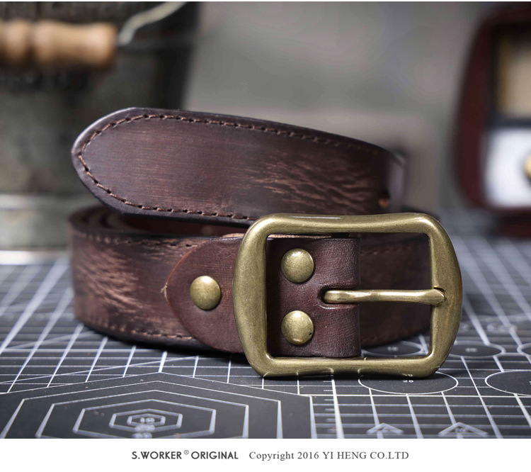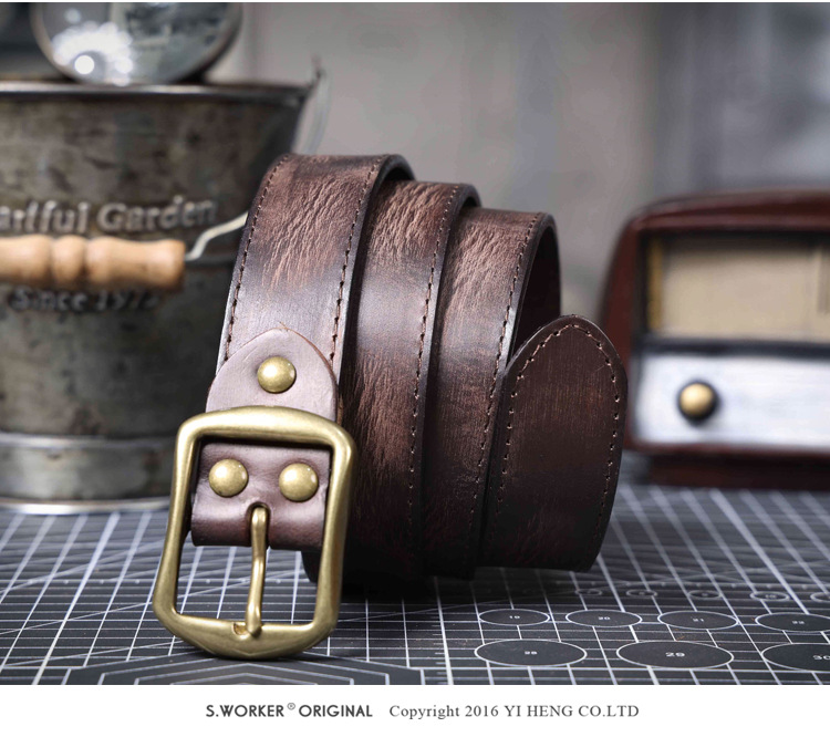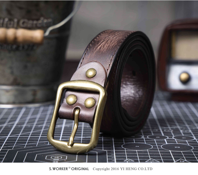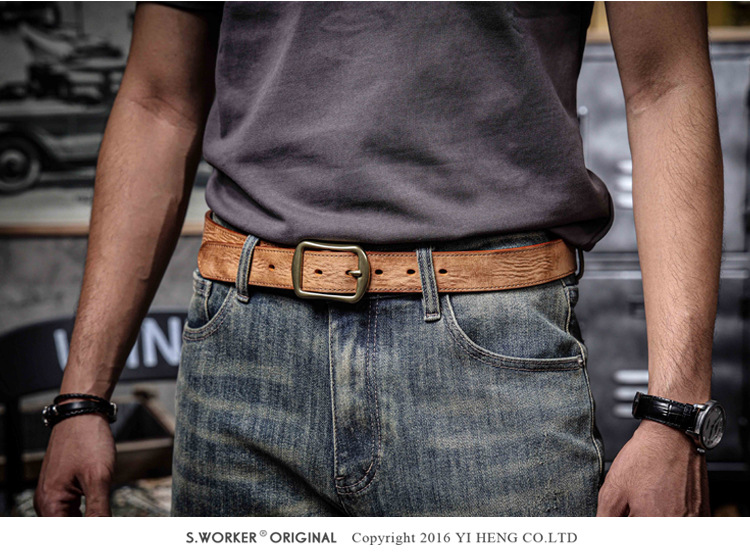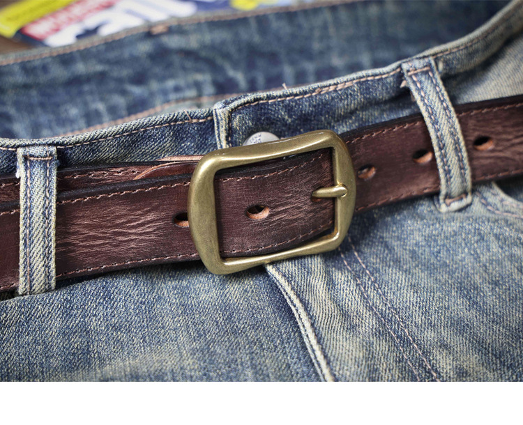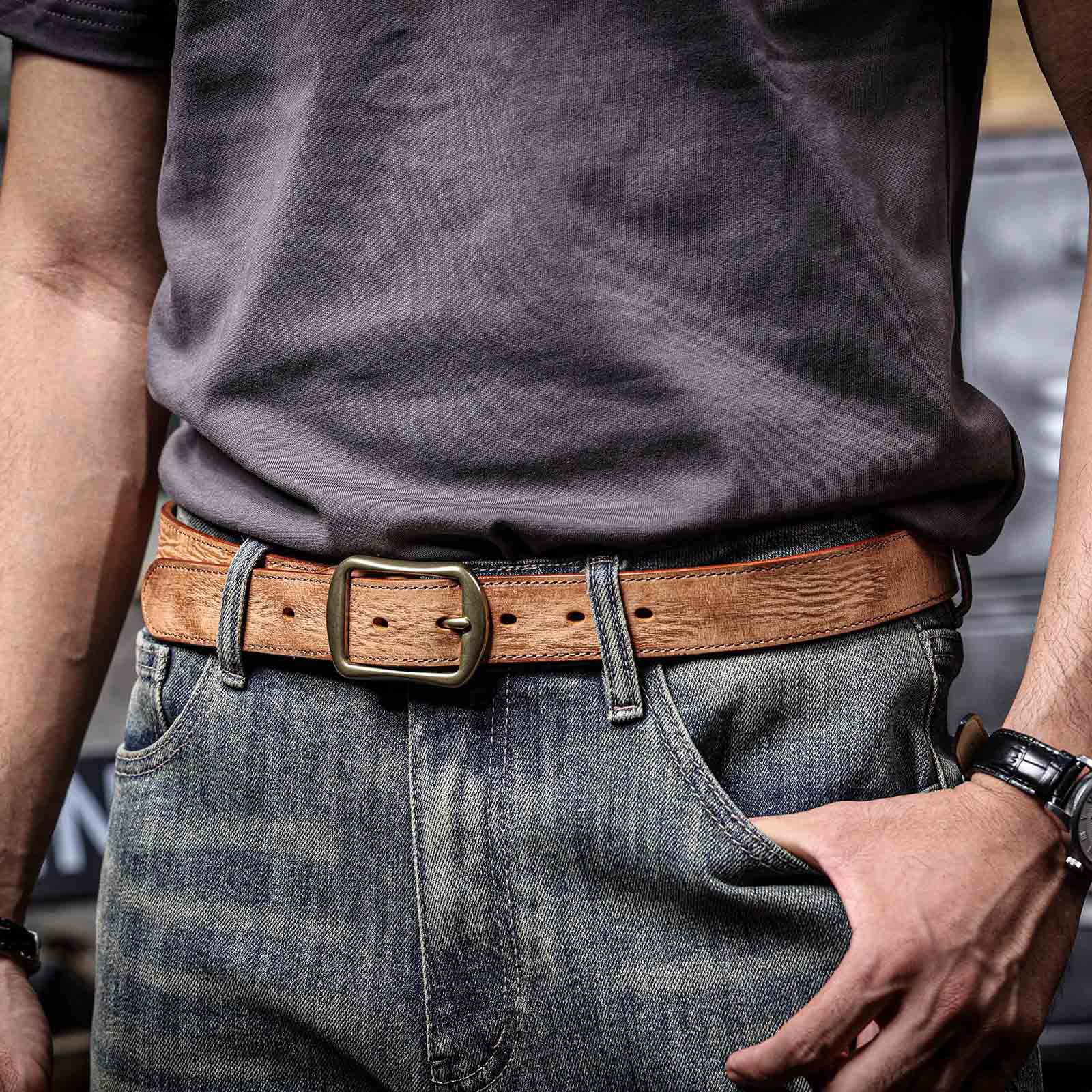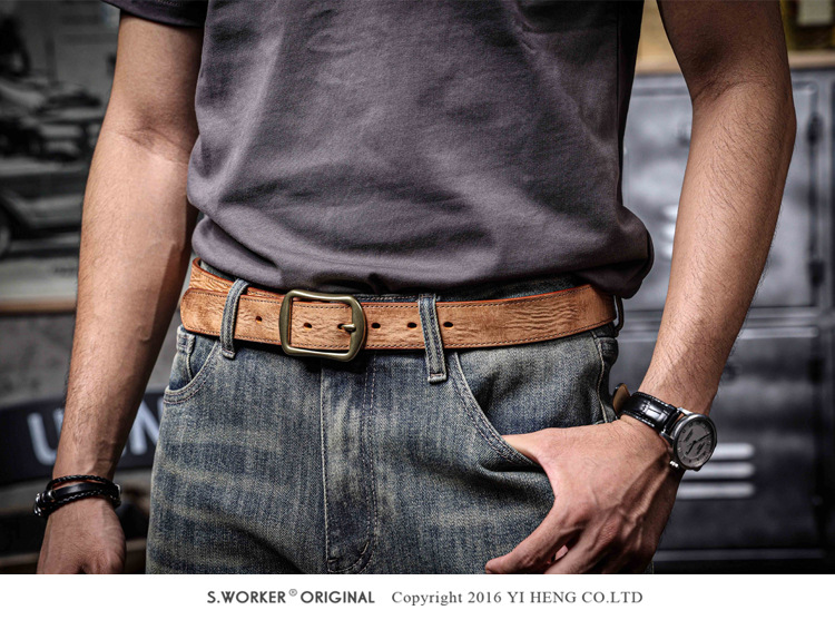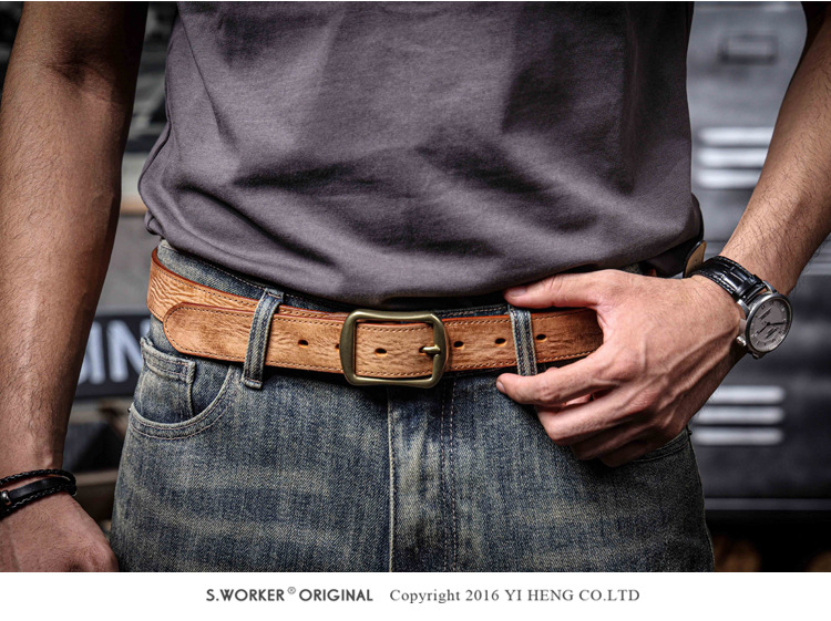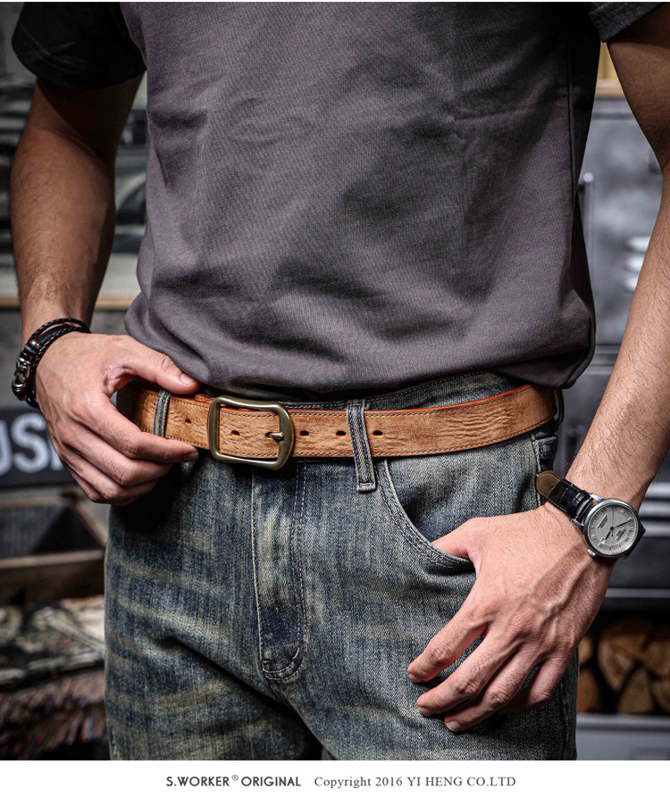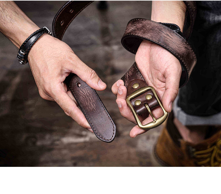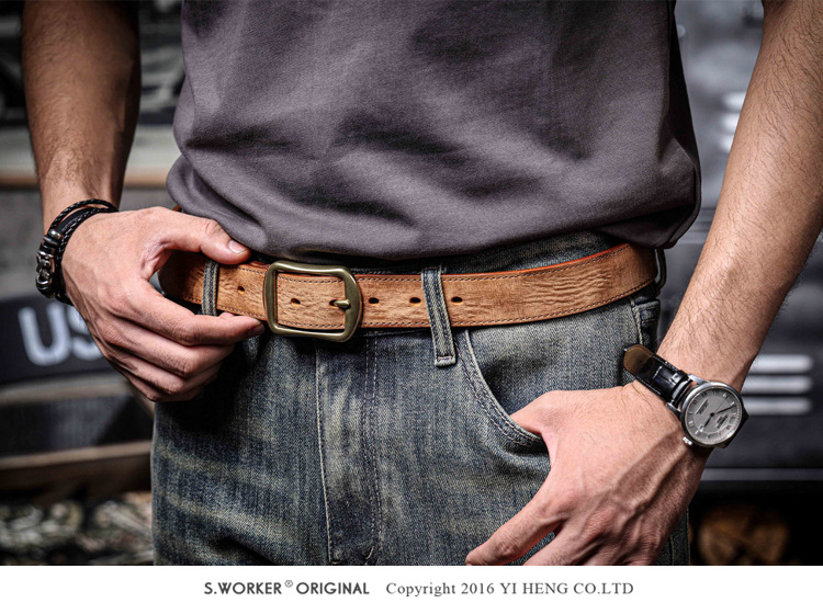 Thắt lưng da bò nguyên miếng dành cho nam, lấy cảm hứng từ phong cách cổ điển kiểu Mỹ. Sản phẩm được làm thủ công tỉ mỉ từ chất liệu da thật tự nhiên, tạo nên những đường vân nhăn mềm mại và độ bền vượt trội. Khóa cài bằng đồng nguyên khối kiểu ghim xếp mang đến vẻ ngoại hình cá tính và chắc chắn. Cách dùng đơn giản: luồn dây qua khóa, điều chỉnh độ dài vừa vặn rồi cố định ghim vào lỗ phù hợp trên thắt lưng. | Tên sản phẩm: Dây Lưng Nam Chất Liệu Da Bò Phục Cổ Cổ Điển - Đồng Hồ Phụ Kiện Nam | Mã sản phẩm: A1801 - Giá: 720.000đ | Mã nhà sản xuất: SHDND-G02Hình ảnh sản phẩm
