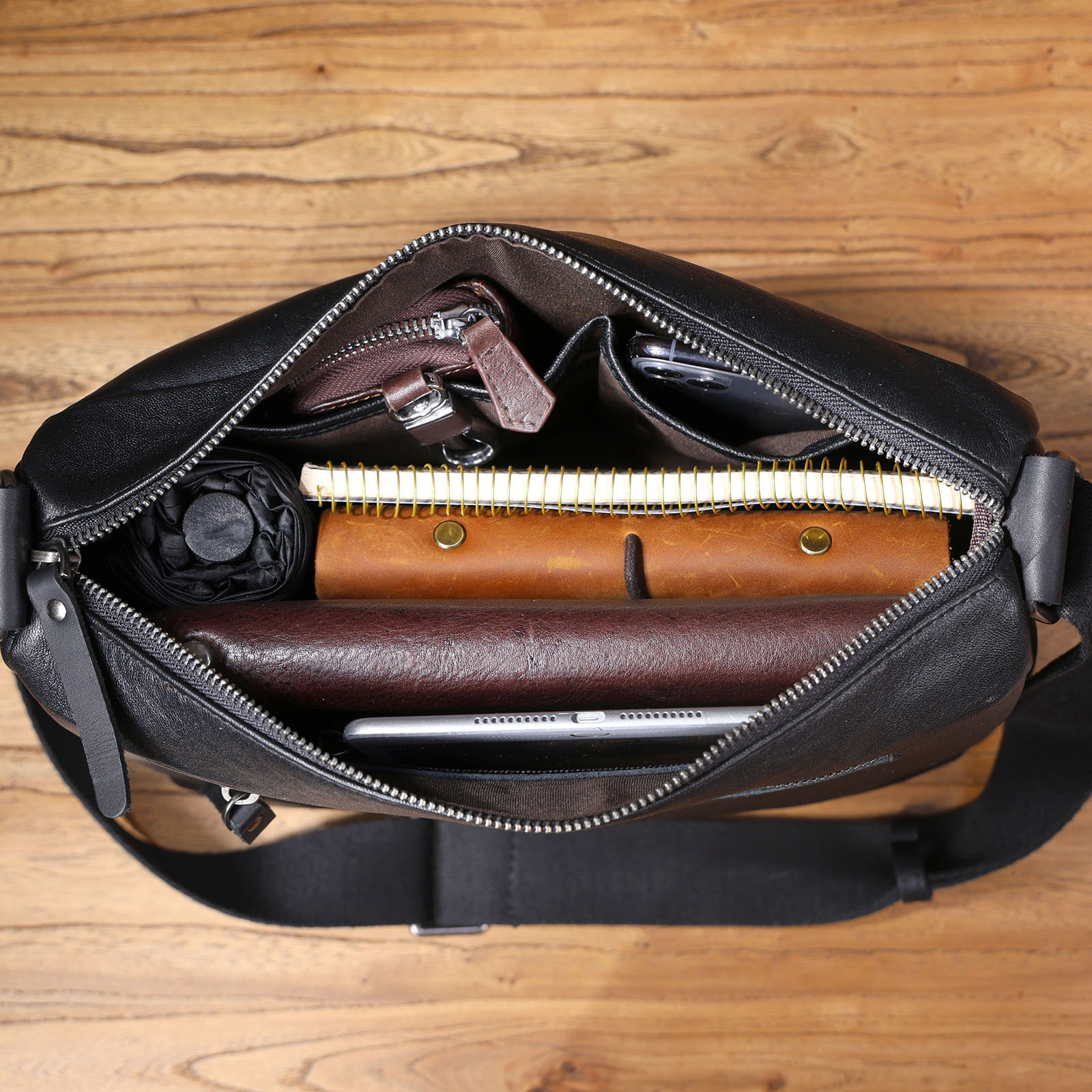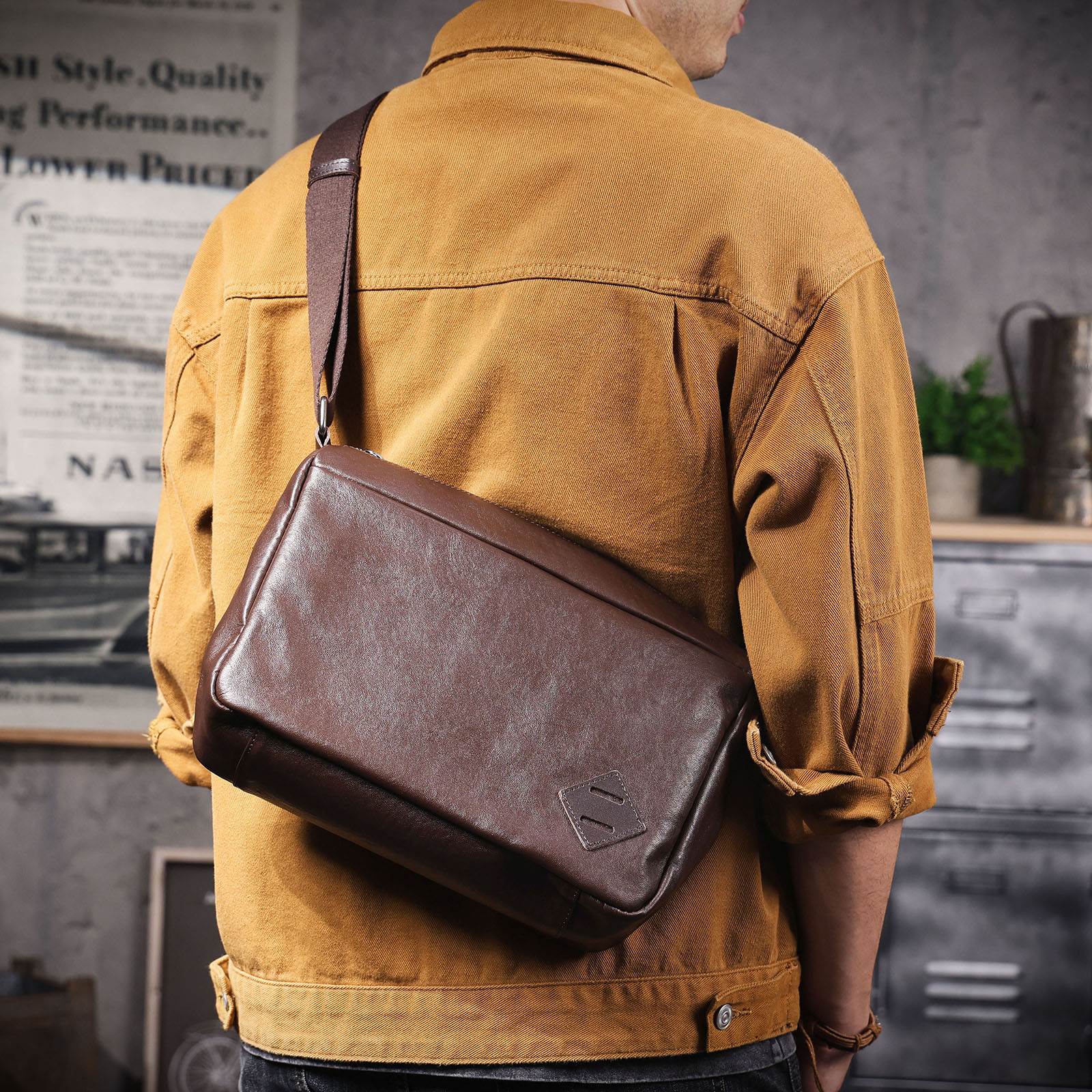 Chiếc túi đeo chéo dành cho nam giới này được làm hoàn toàn từ chất liệu da thật tự nhiên, bền đẹp theo thời gian. Kiểu dáng đơn giản, phù hợp cho việc đi làm hoặc dạo phố hằng ngày. Túi có ngăn rộng đựng vừa máy tính bảng, các ngăn nhỏ tiện lợi cho điện thoại và ví. Dây đeo có thể điều chỉnh linh hoạt, mang trên v một cách thoải mái. Chỉ cần xỏ dây qua v và sắp xếp đồ dùng gọn gàng là bạn đã sẵn sàng ra ngoài. | Tên sản phẩm: Túi Xách Nam Chất Liệu Da Bò - Túi Xách Ví Nam | Mã sản phẩm: A1830 - Giá: 1.300.000đ | Mã nhà sản xuất: SHDND-G04Hình ảnh sản phẩm